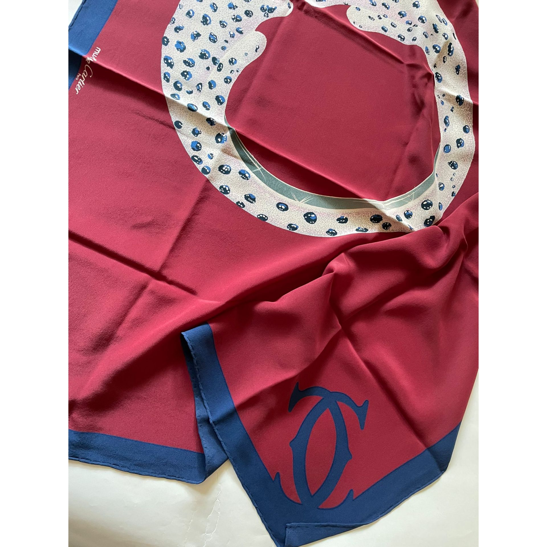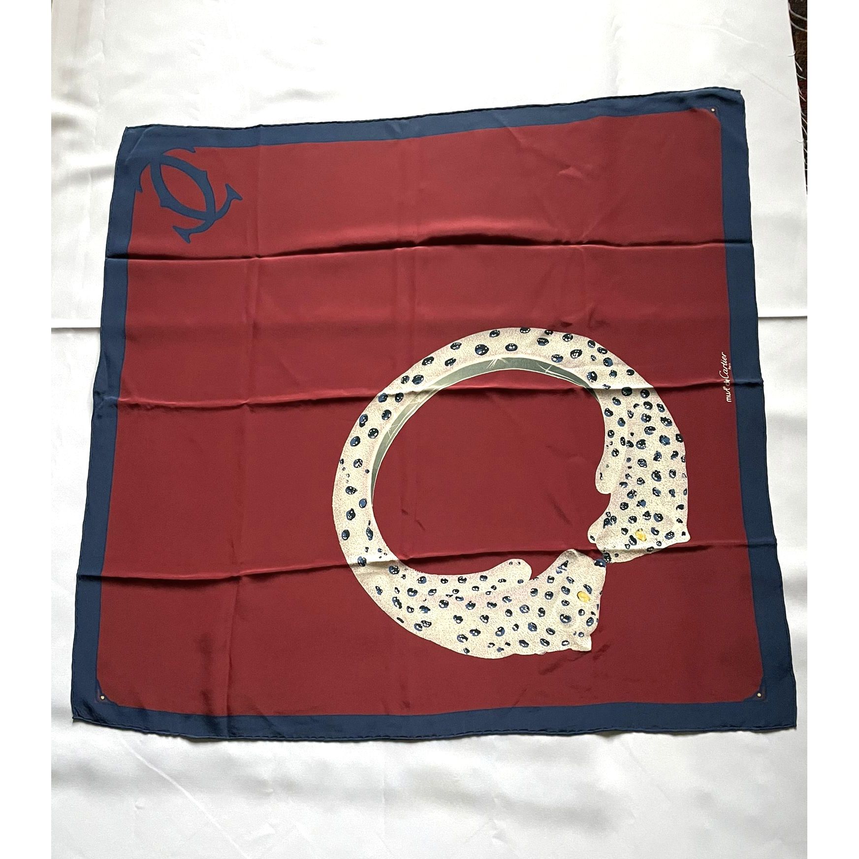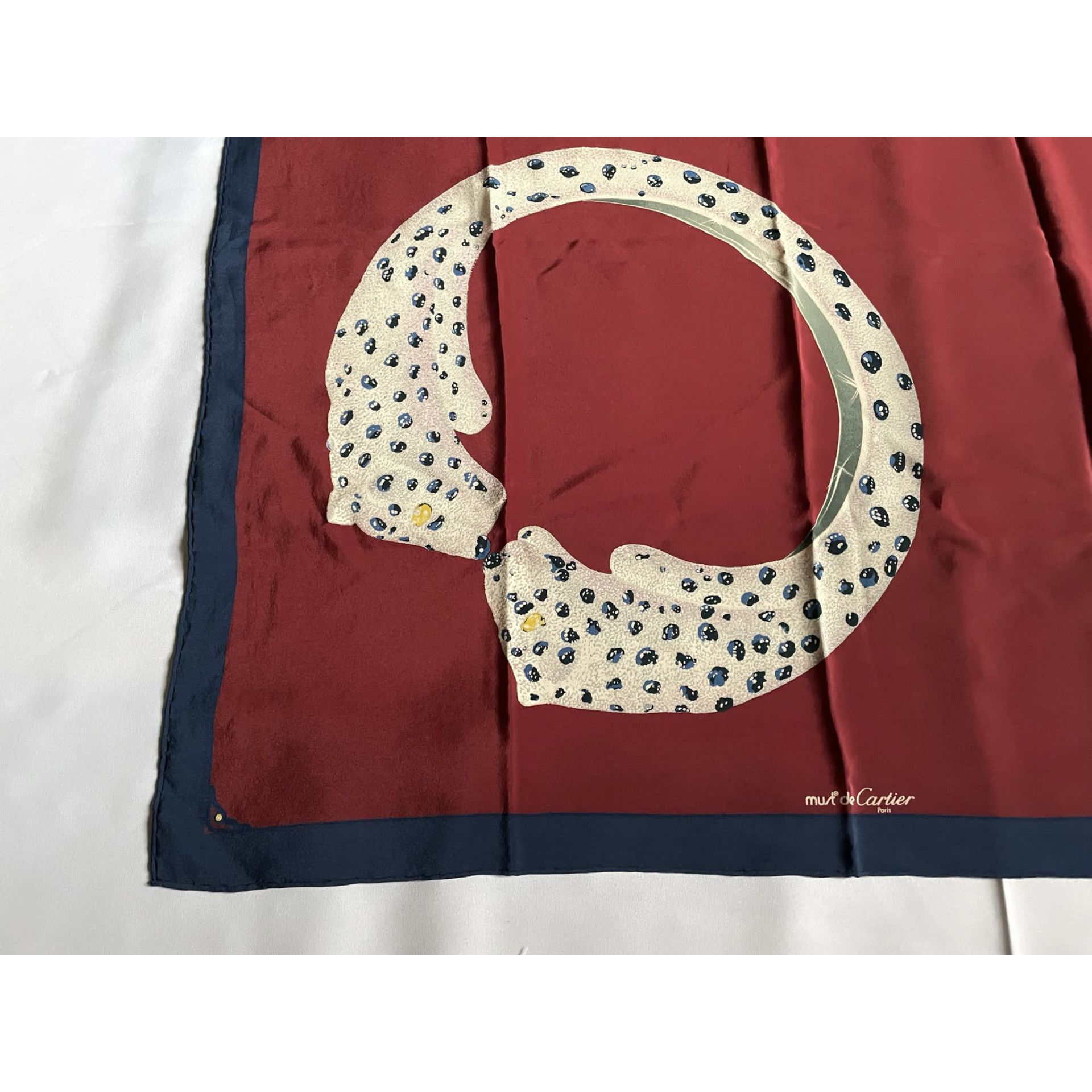Apaszka jedwabna Cartier, kolor bordowy i granatowy , w idelanym stanie , wymiary 80 cm / 80 cm
