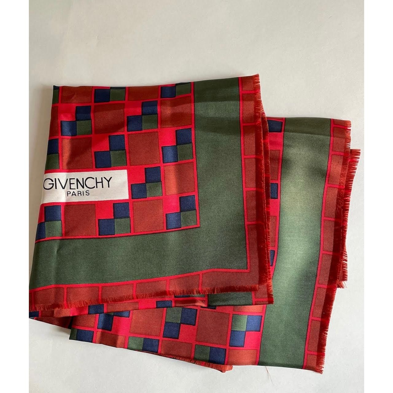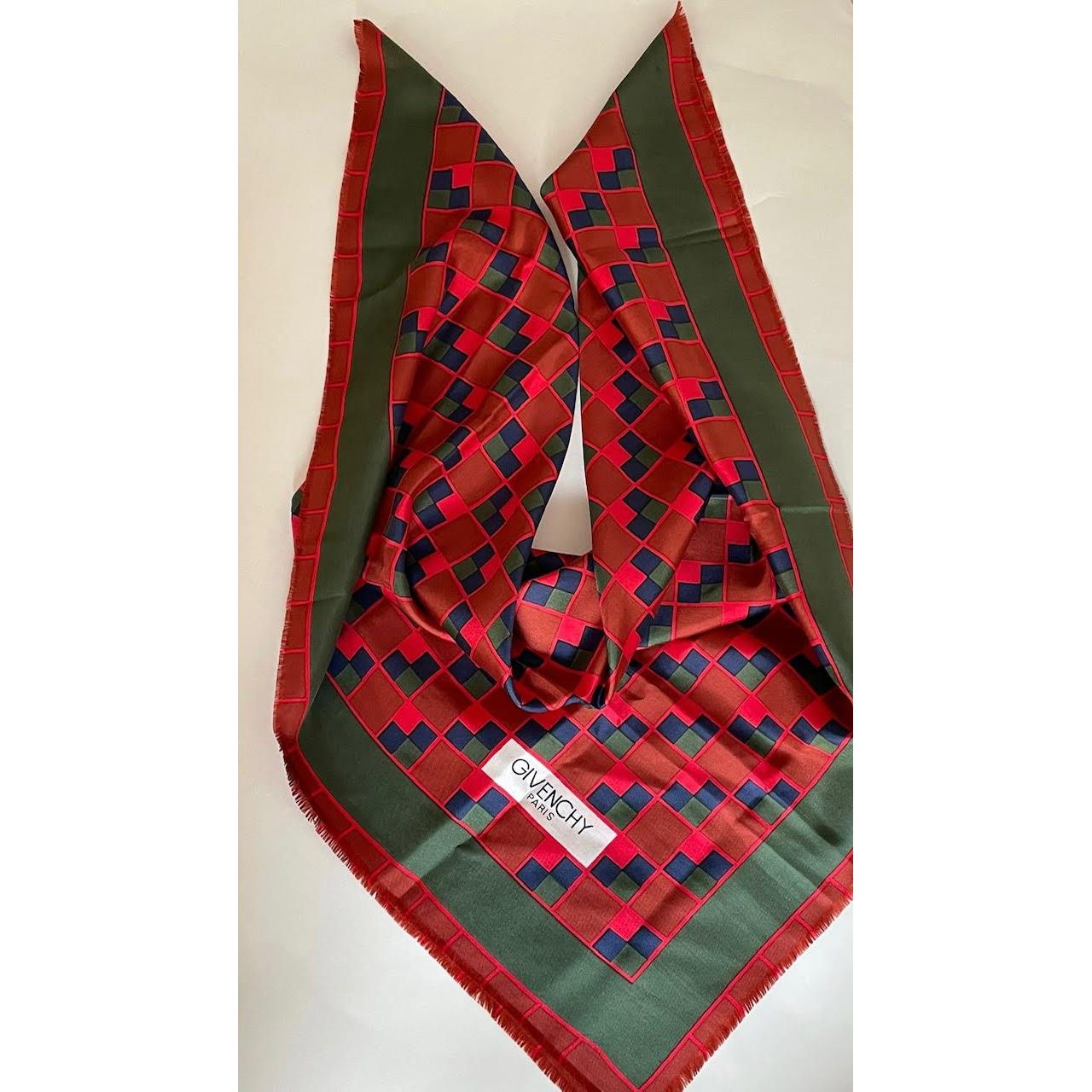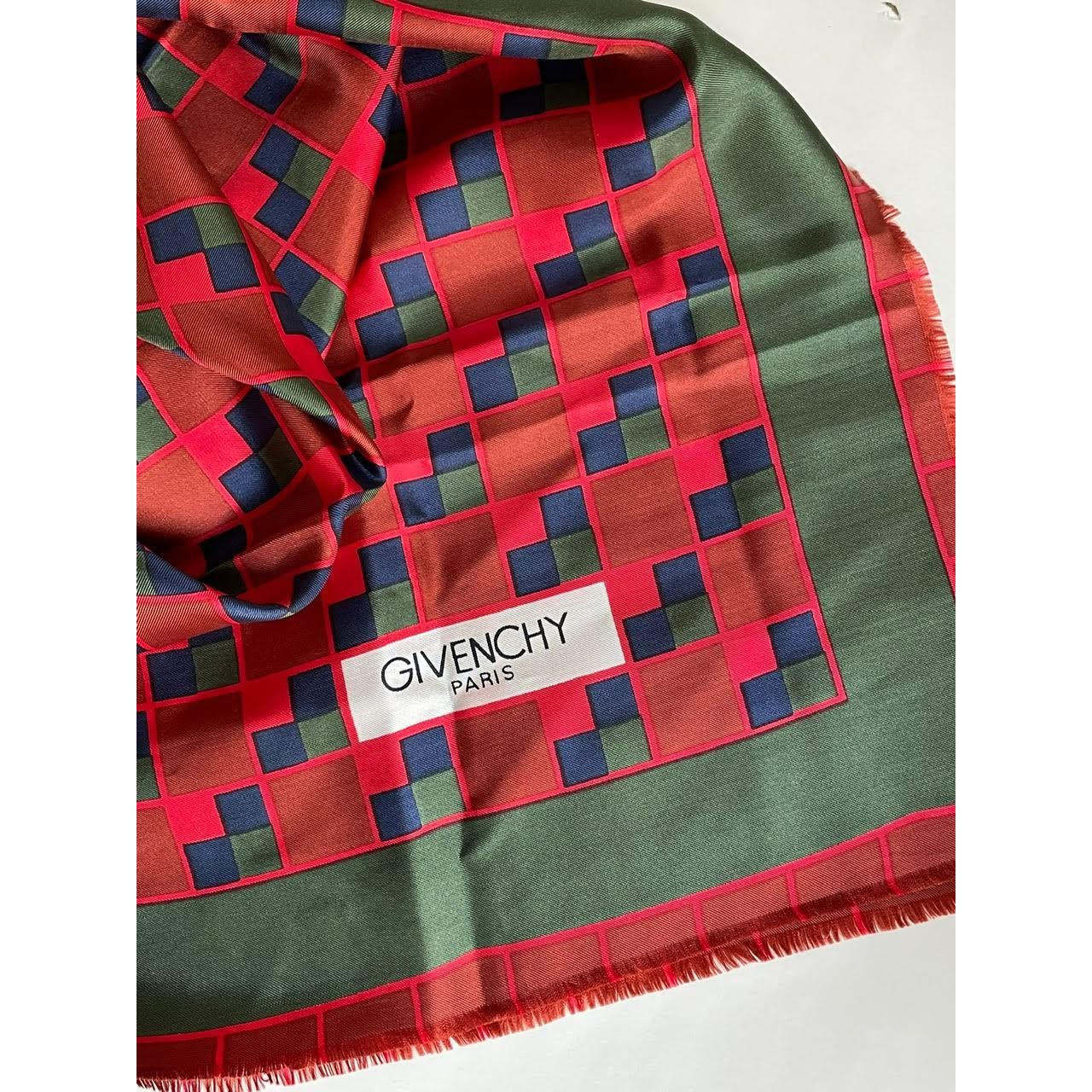 Apaszka Givenchy jedwabna , czerwone i zielone kwadraty, 78 cm / 78 cm. nowa