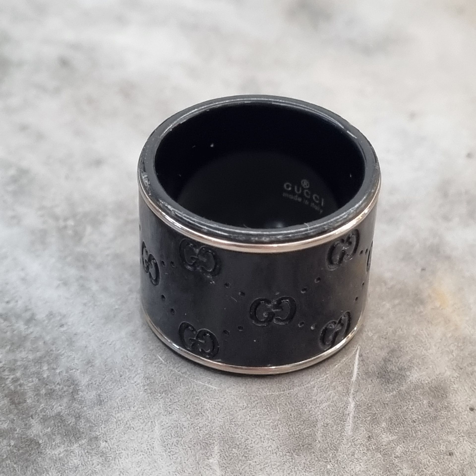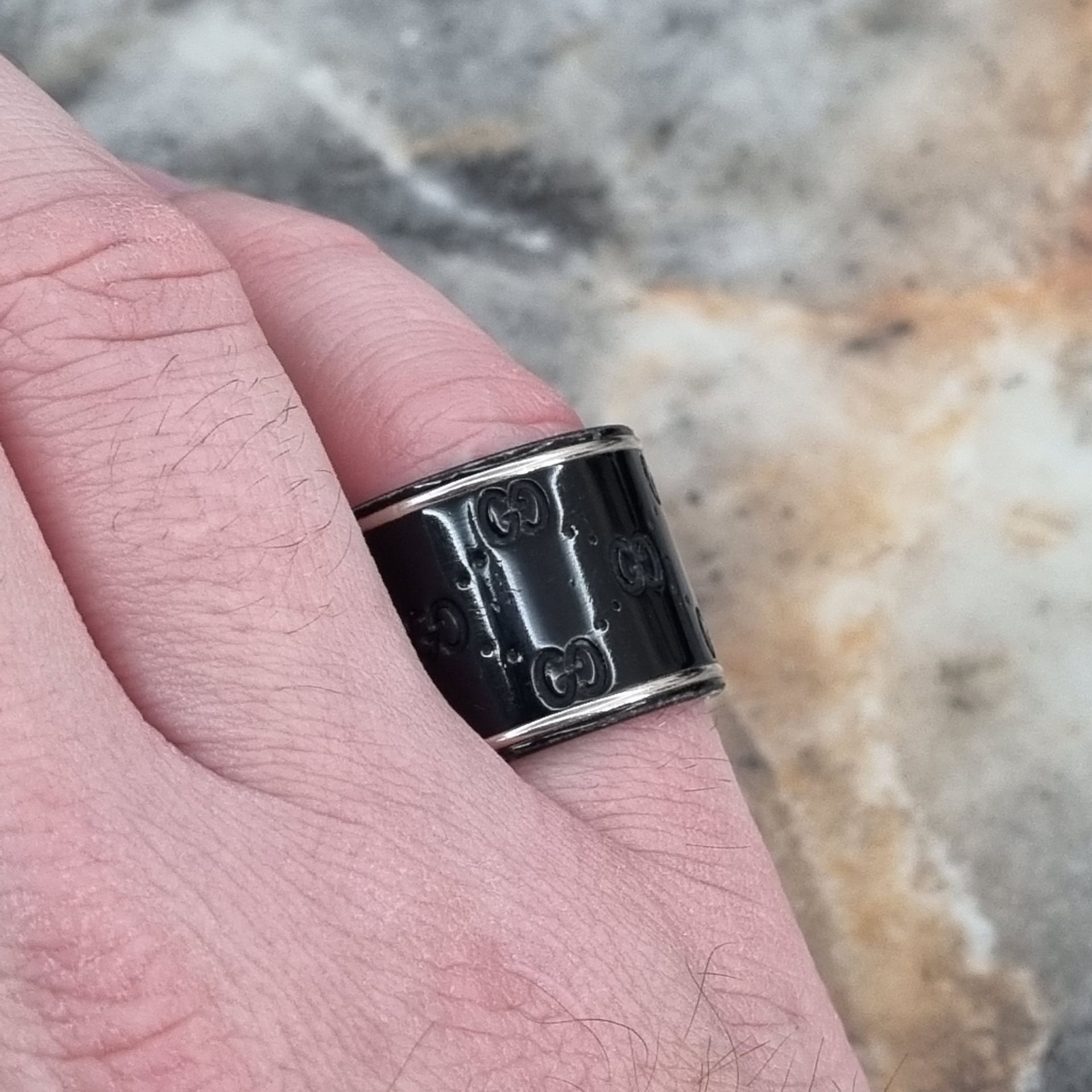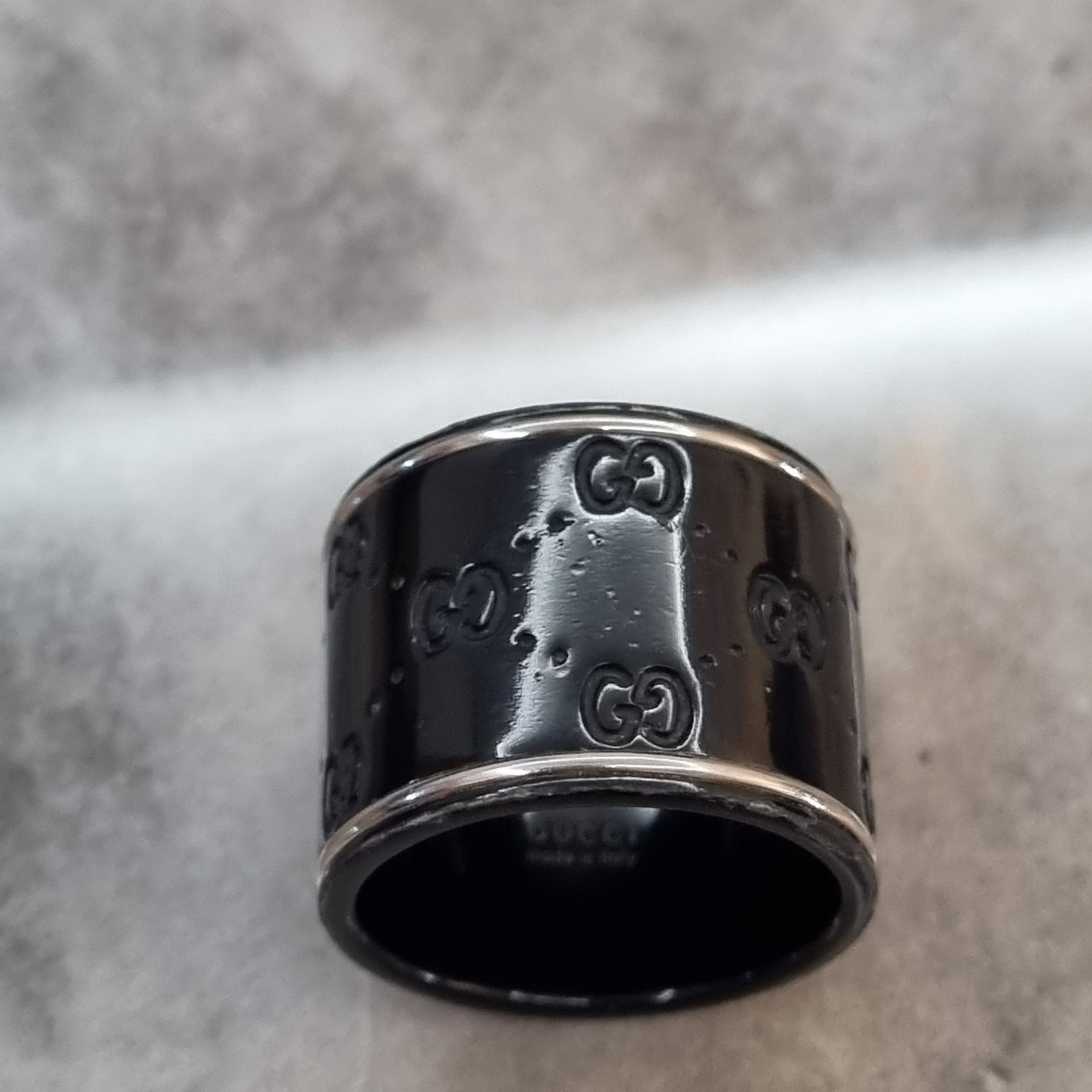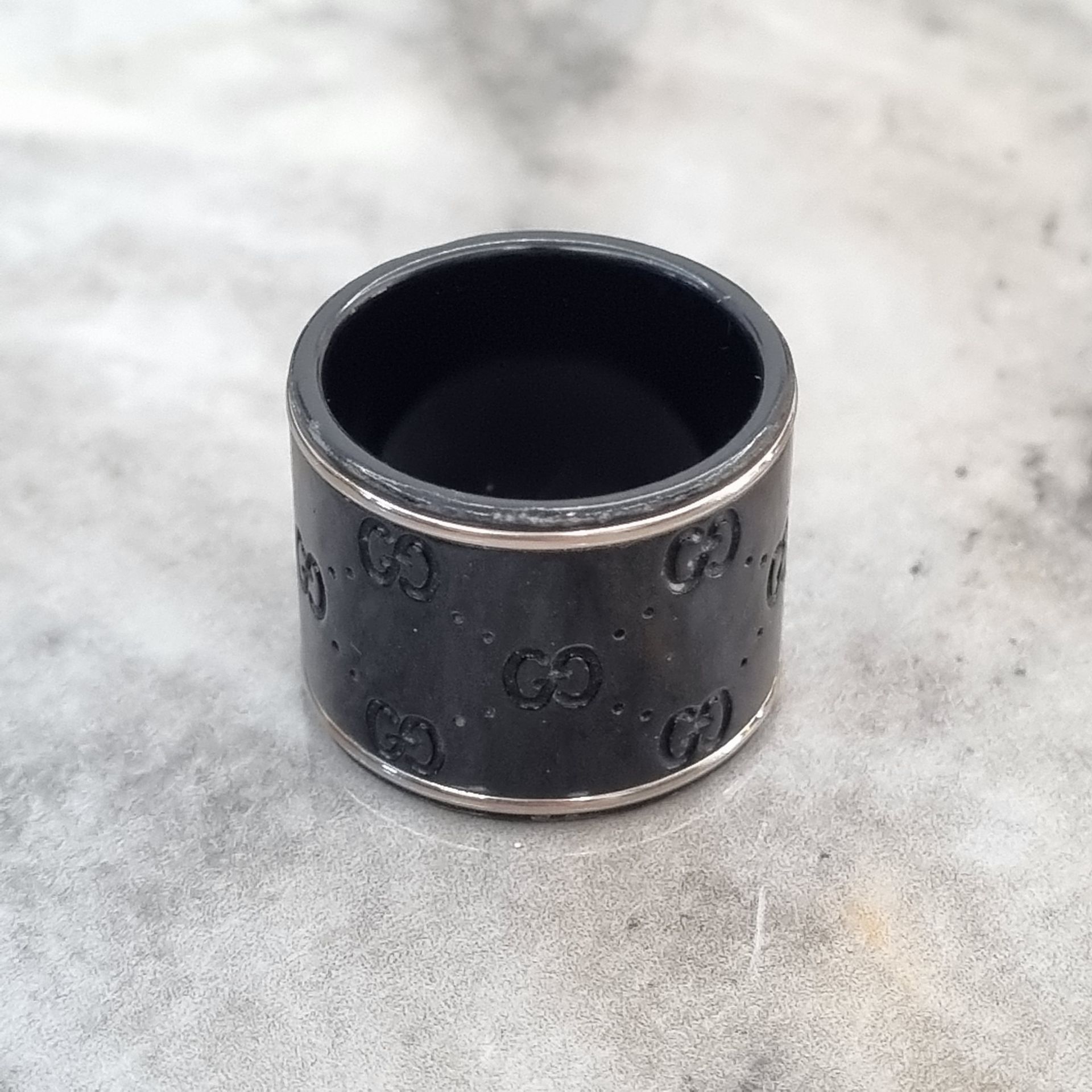 Ceramiczny pierścień sygnet ceramiczny Gucci icon. Czarny monogram. Rozmiar 18. Proszę o przemyślane zakupy, ponieważ nie przyjmuje zwrotów.