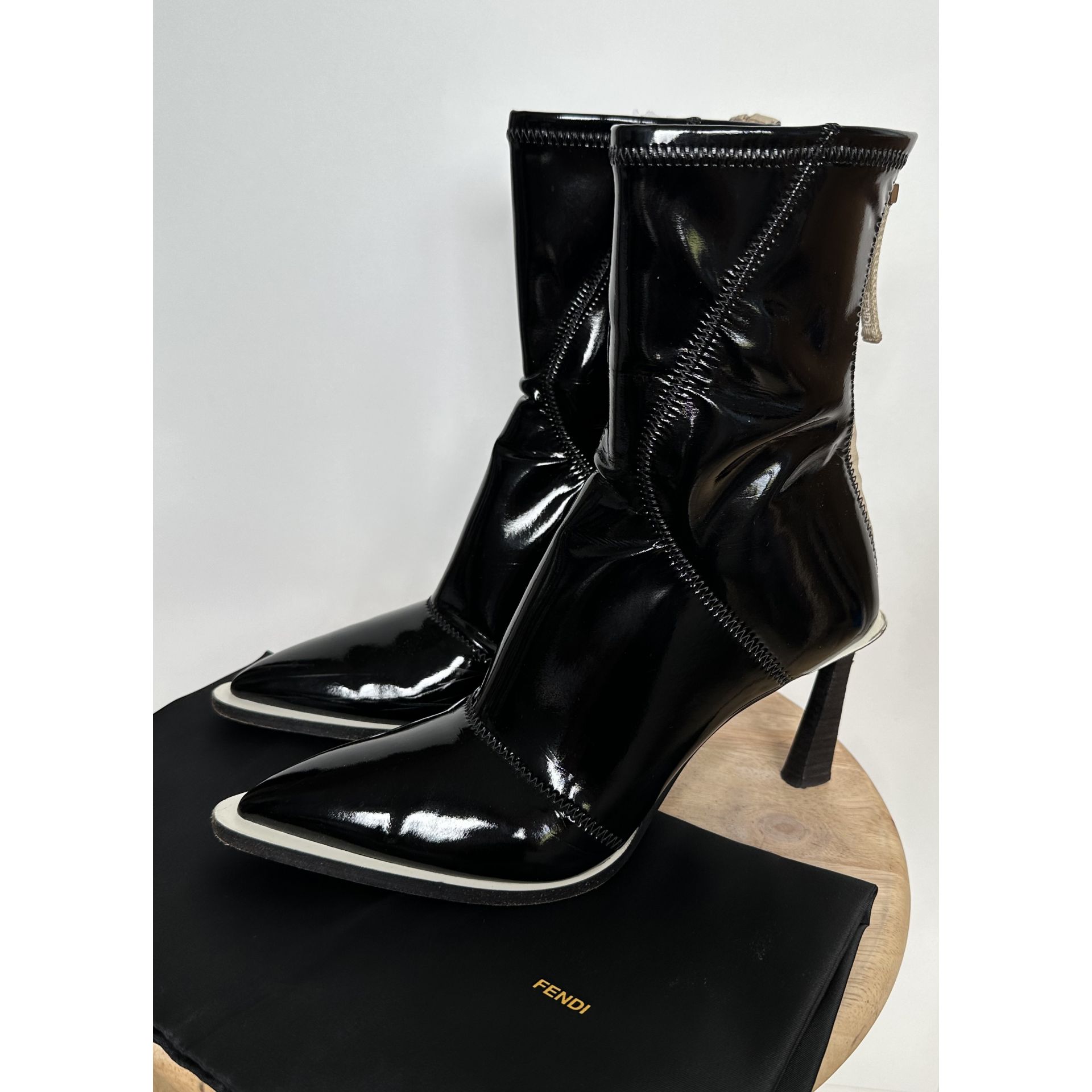 Fendi lakierowane botki do kostki ze spiczastym noskiem, z woreczkiem ochronnym