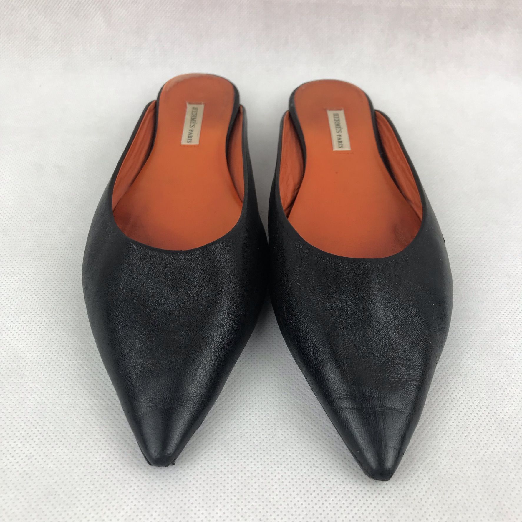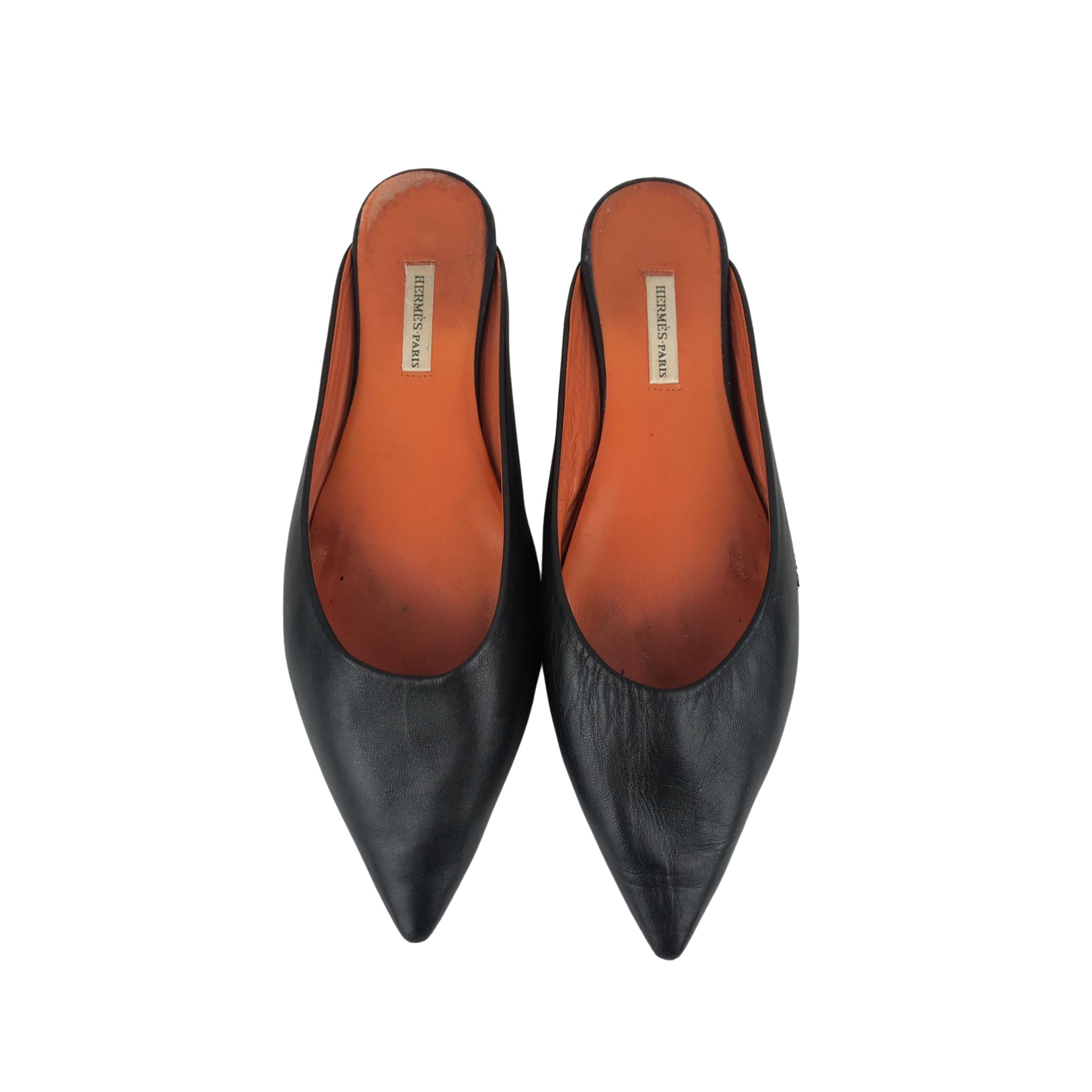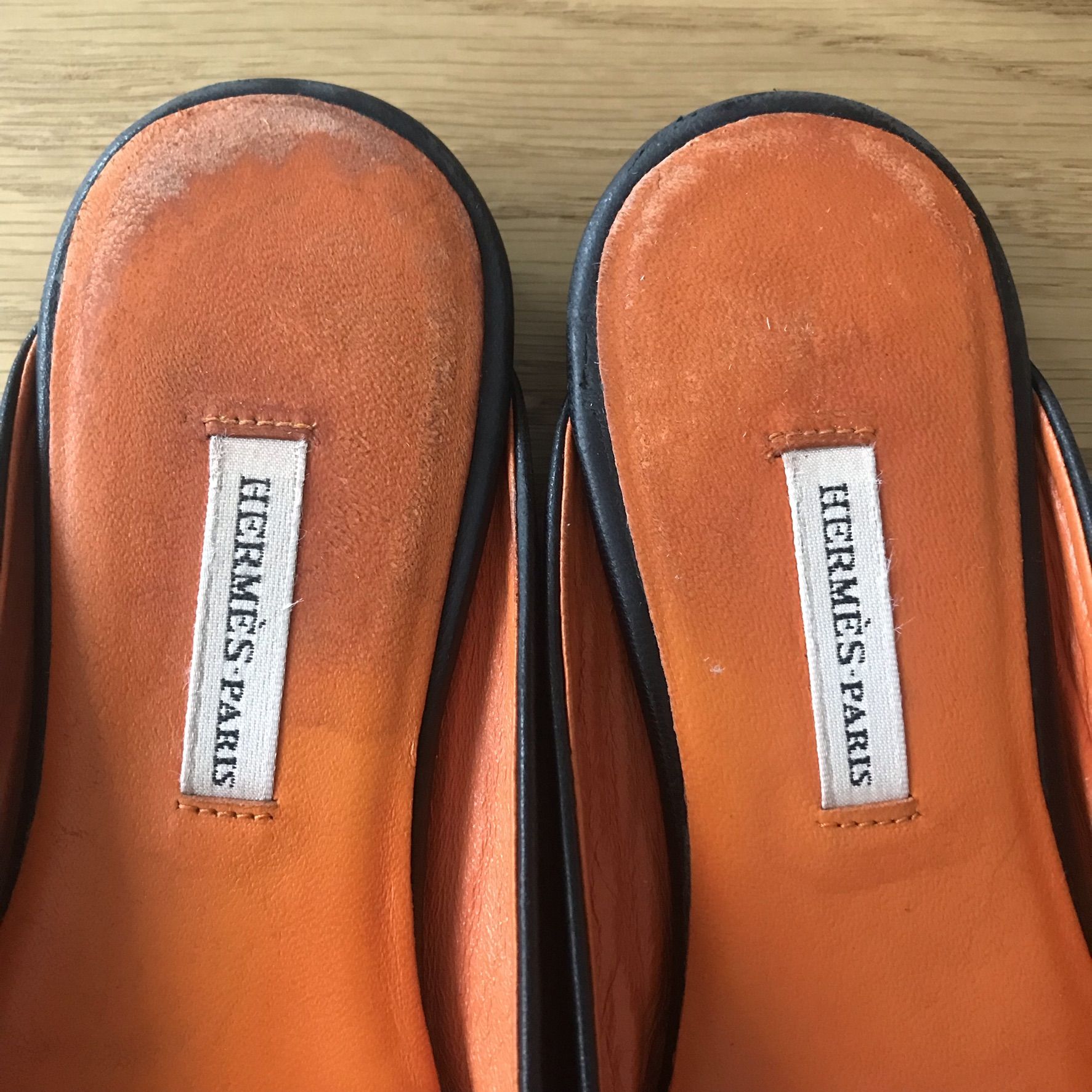 Klapki Hermes wykonane z miękkiej skóry. Podeszwy były niedawno wymieniane. Zadrapania na skórze, Rozmiar 38