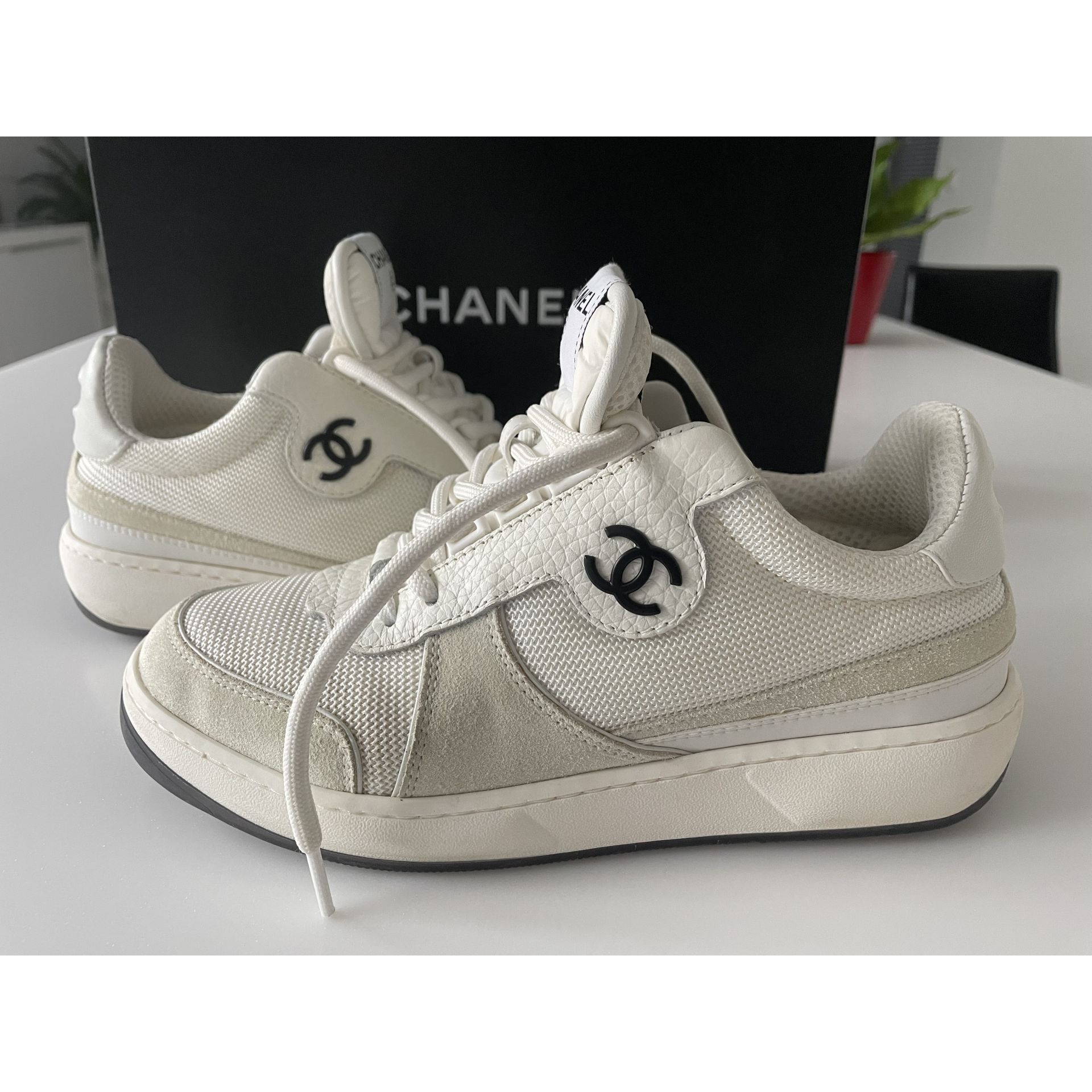 SNEAKERSY CHANEL MODEL G38803 - ROK 2021 - KOLOR ZŁAMANA ŚMIETANKOWA BIEL - CHARNE LOGO Z PRZODU. SUPER SPORTOWY FASON - LEKKIE I WYGODNE - ROZMIAR 36 - DŁUGOŚĆ WKŁADKI 23,5. STAN BARDZO DOBRY. W KOMPLECIE Z PUDEŁKIEM I WORKAMI OCHRONNYMI. PROSZĘ O PRZEMYŚLANE ZAKUPY GDYŻ NIE PRZYJMUJĘ ZWROTÓW.