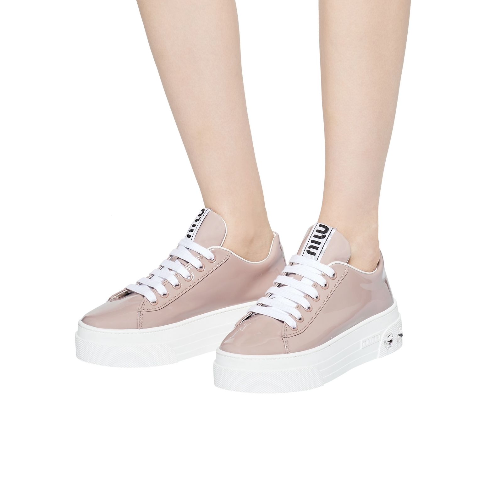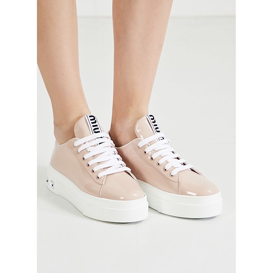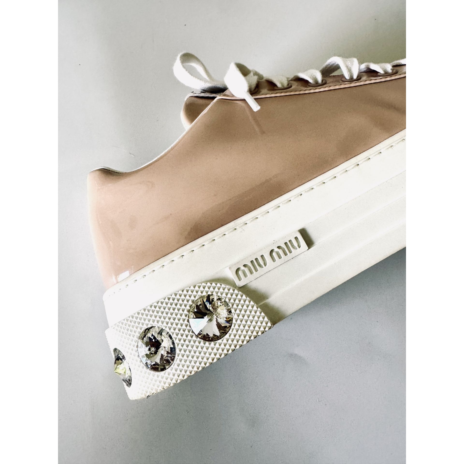 MIU MIU Crystal Embellished Patent Leather Sneakers - sneakersy, trampki