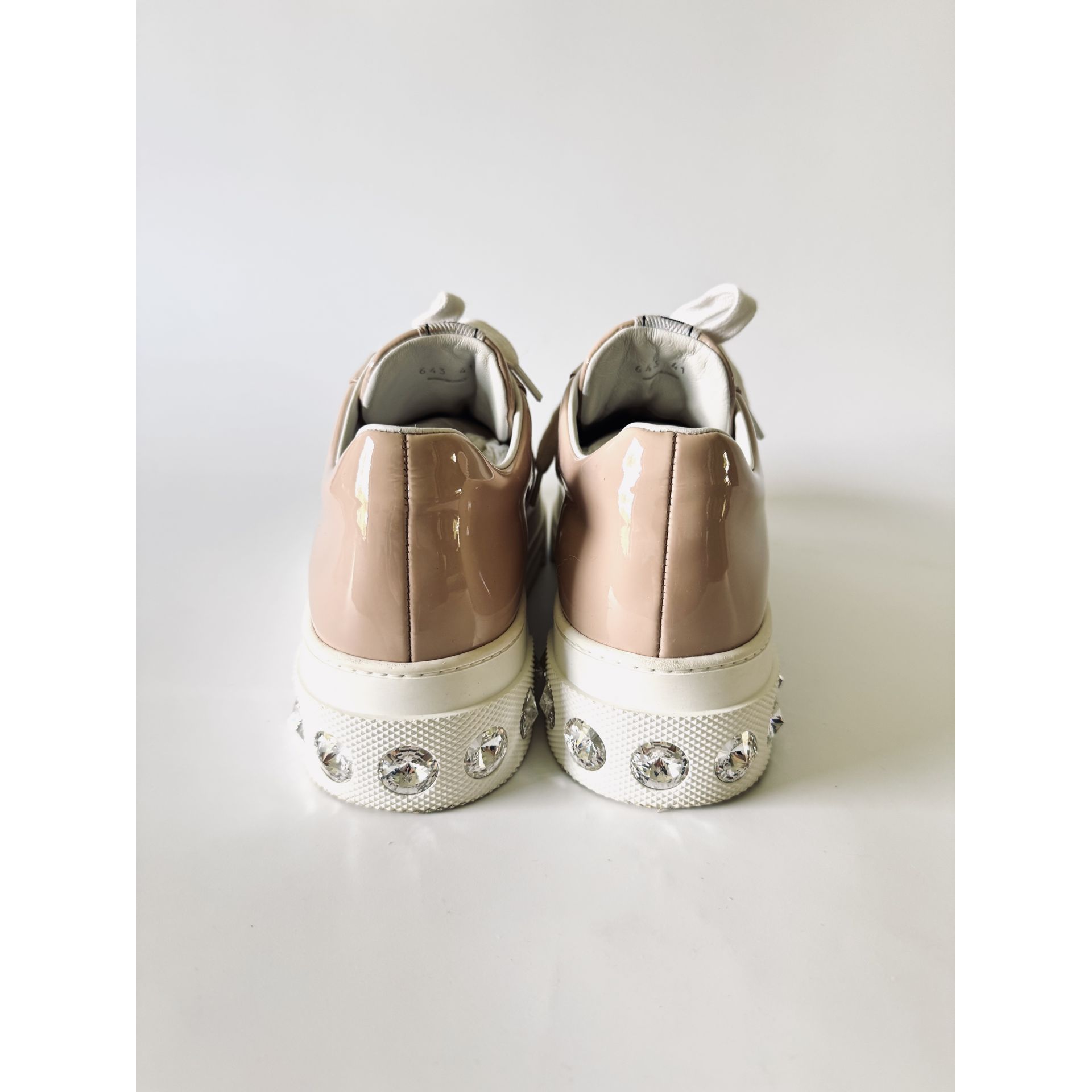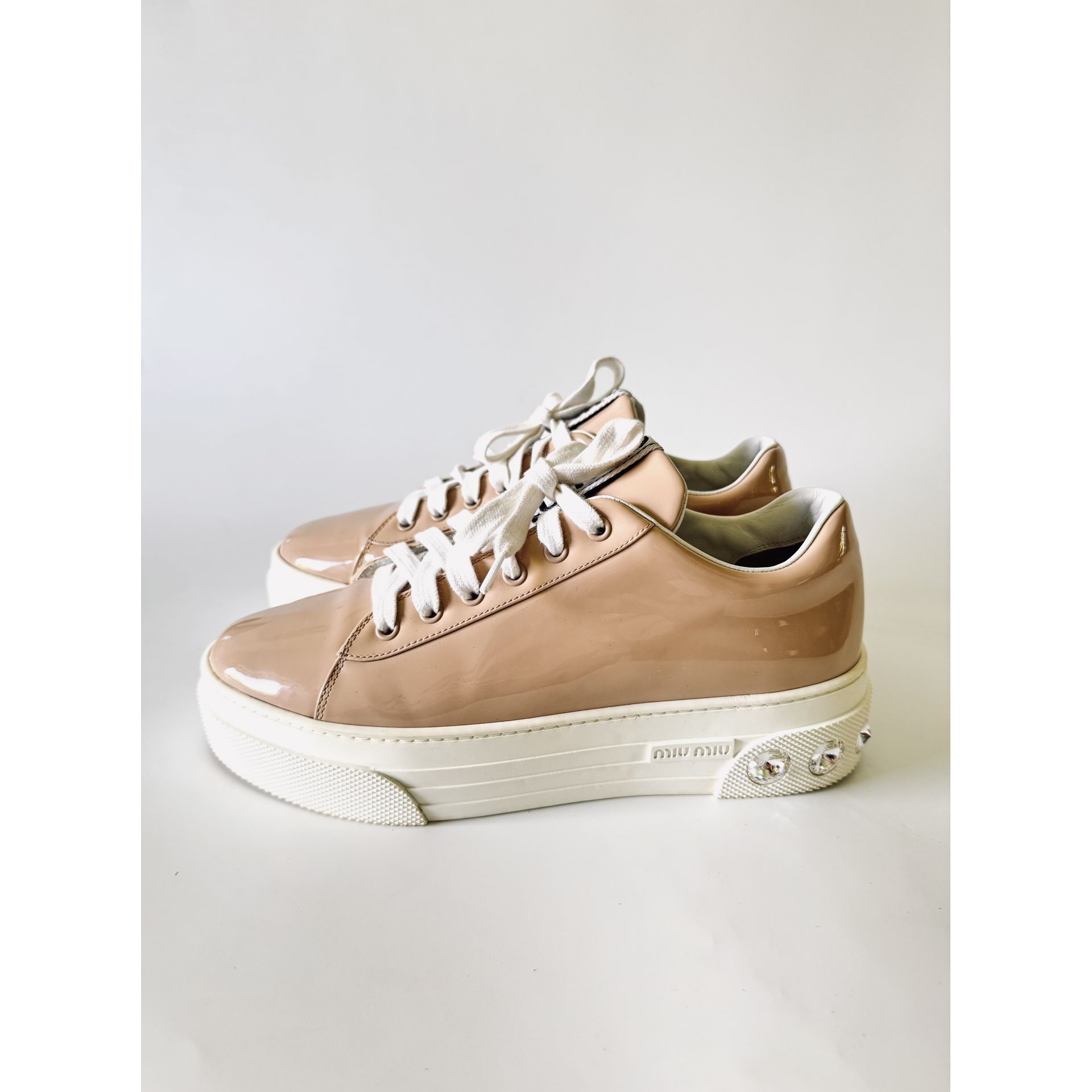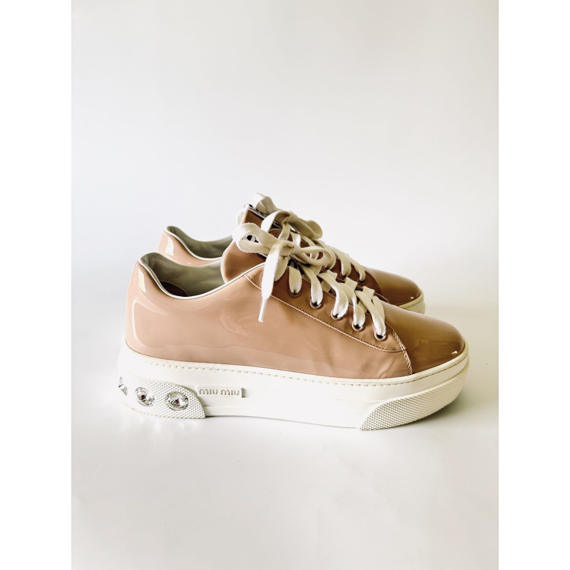 MIU MIU Crystal Embellished Patent Leather Sneakers - sneakersy, trampki