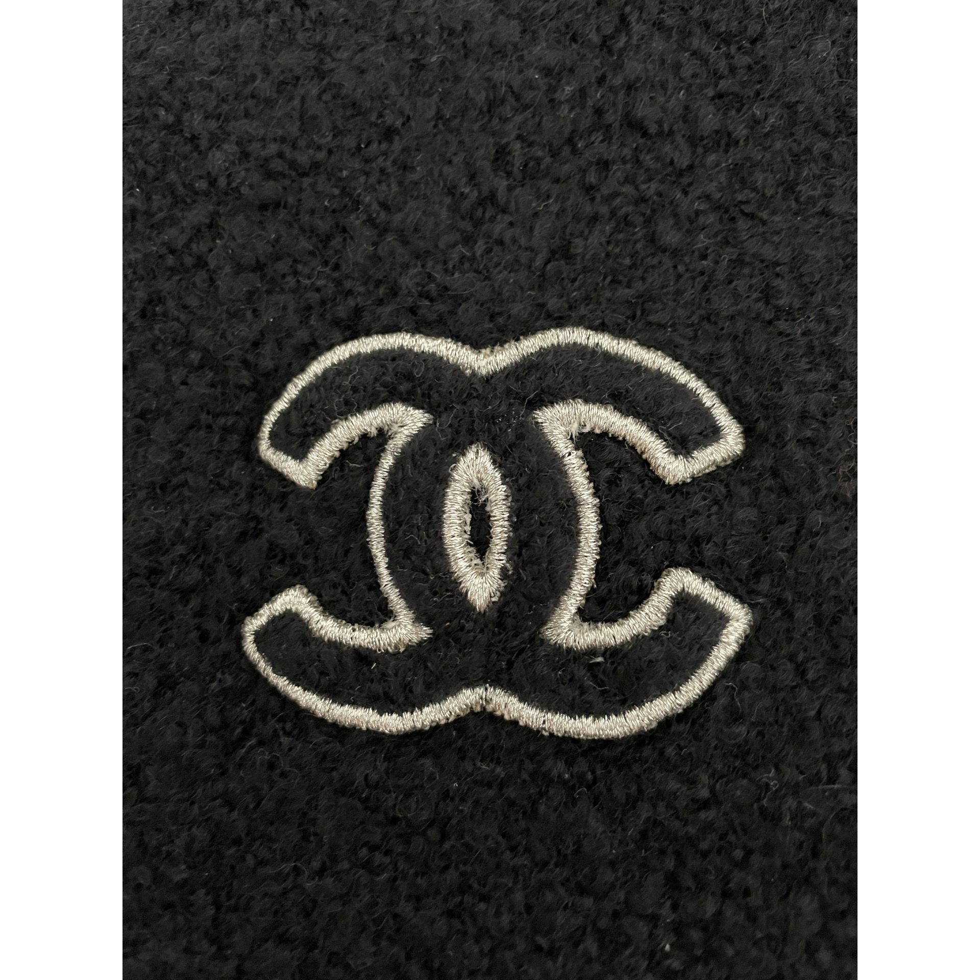 CZAPKA CHANEL - CUDOWNIE LEKKA Z KASZMIRU I JEDWABIU W KOLORZE CZARNYM Z LOGO OBSZYTYM SREBRNĄ NITKĄ. STAN IDEALNY - W KOMPLECIE Z PUDEŁKIEM. PROSZĘ O PRZEMYŚLANE ZAKUPY, GDYŻ NIE PRZYJMUJĘ ZWROTÓW.
