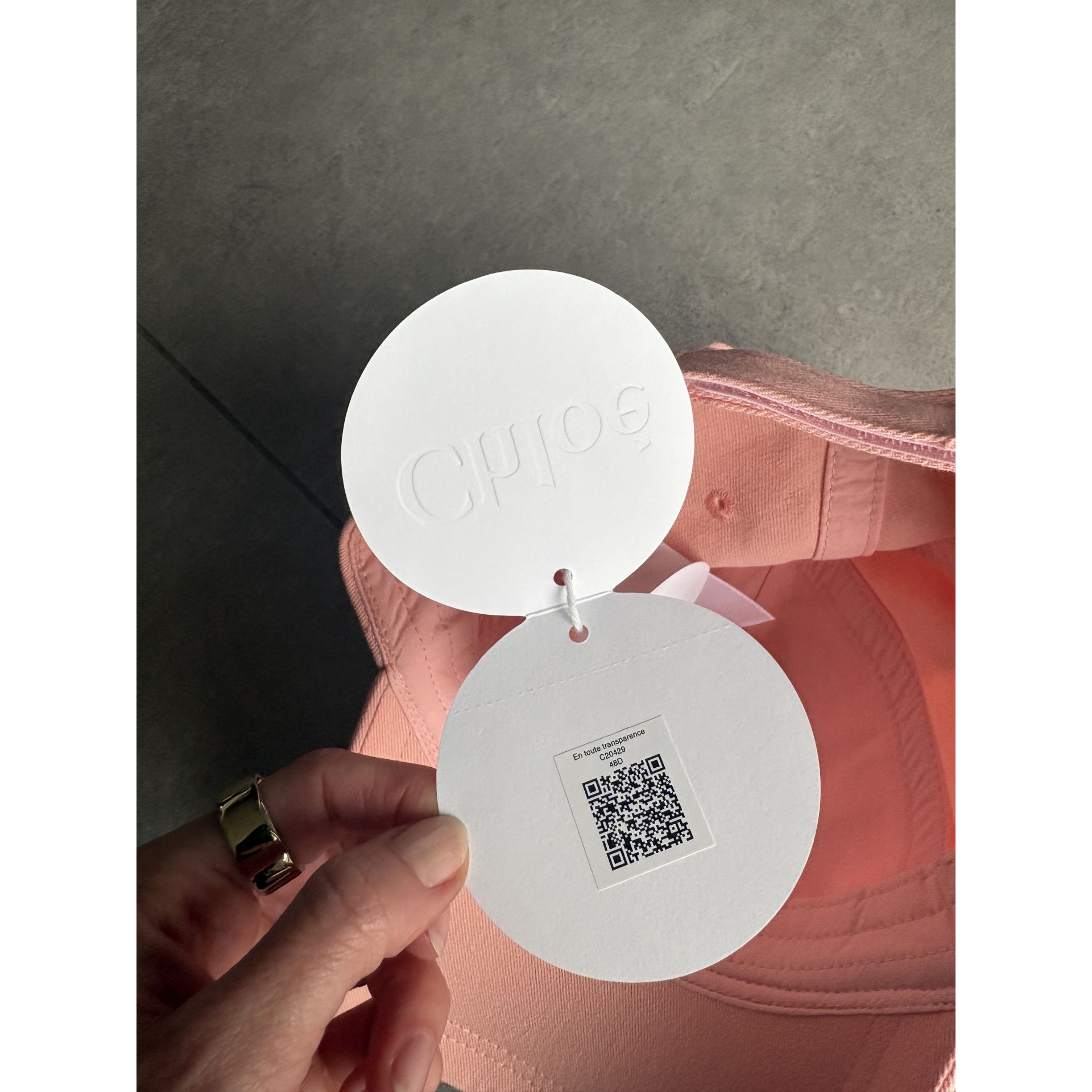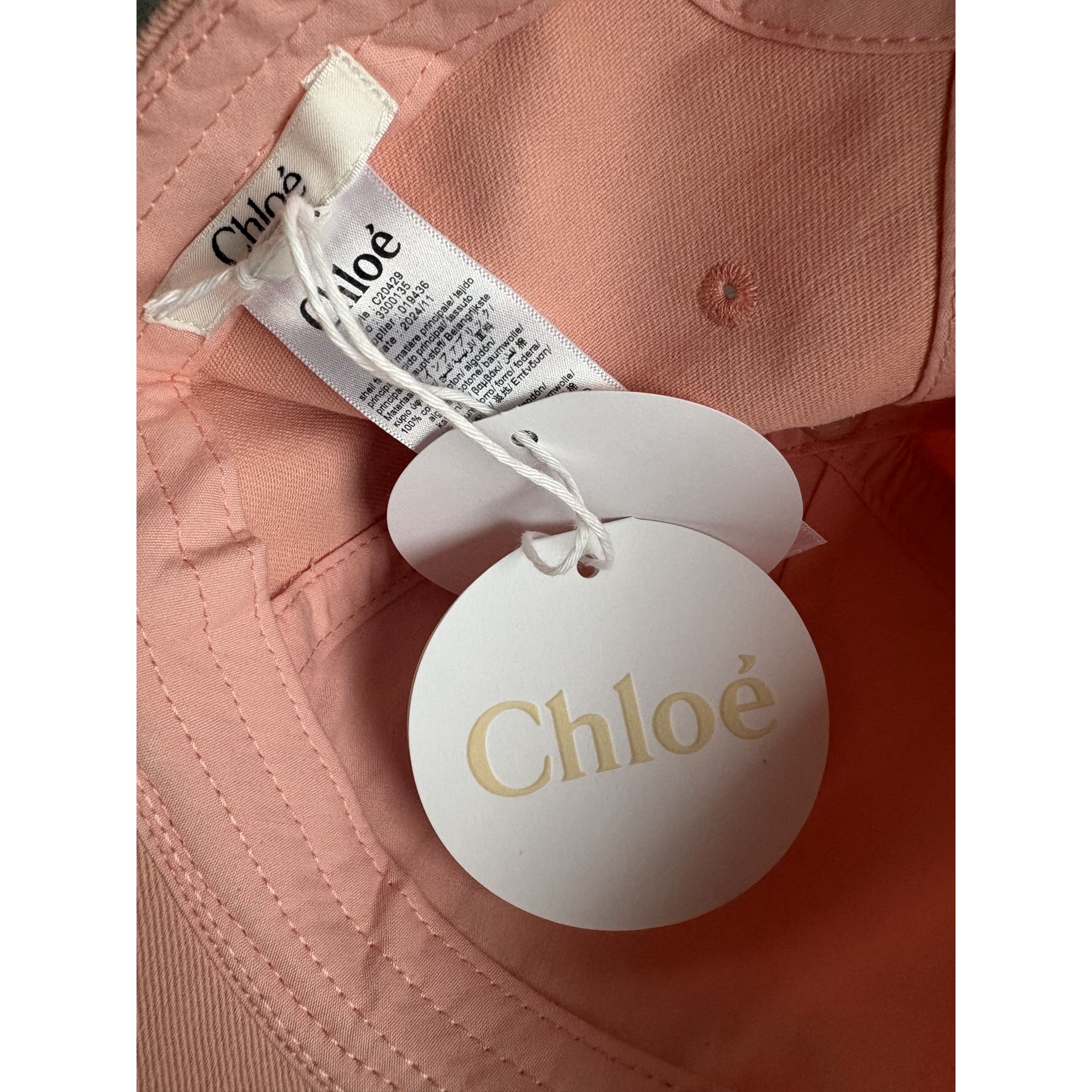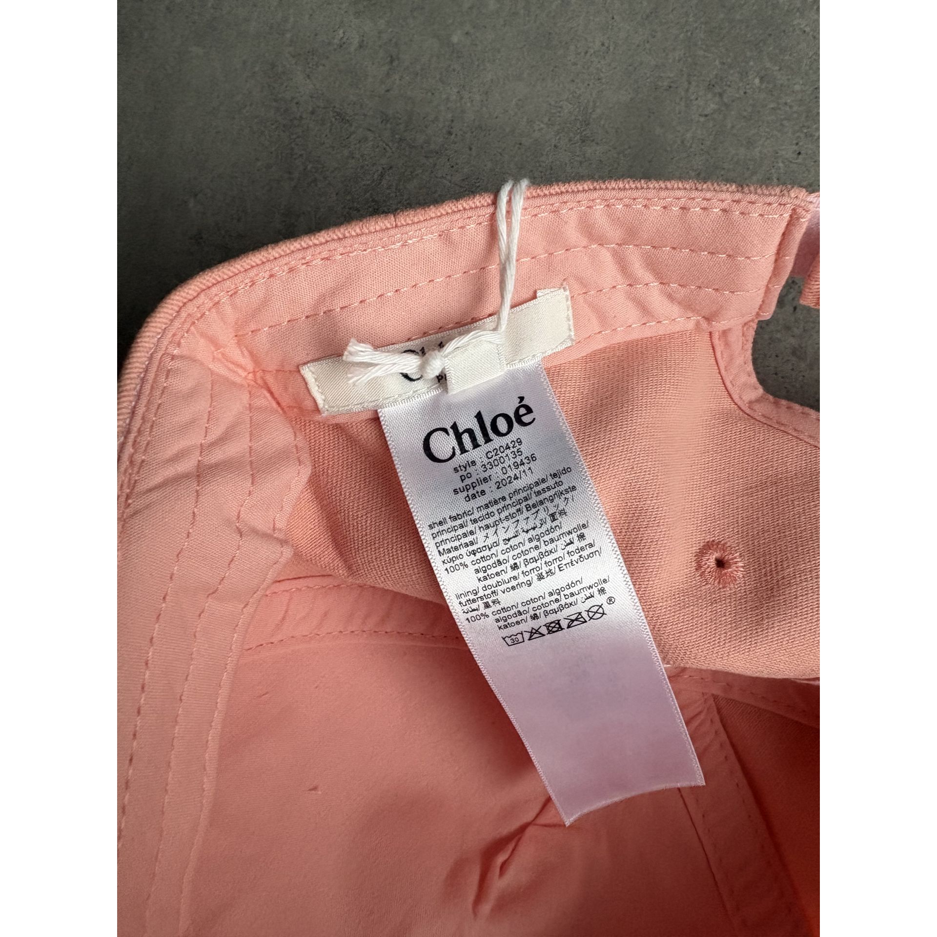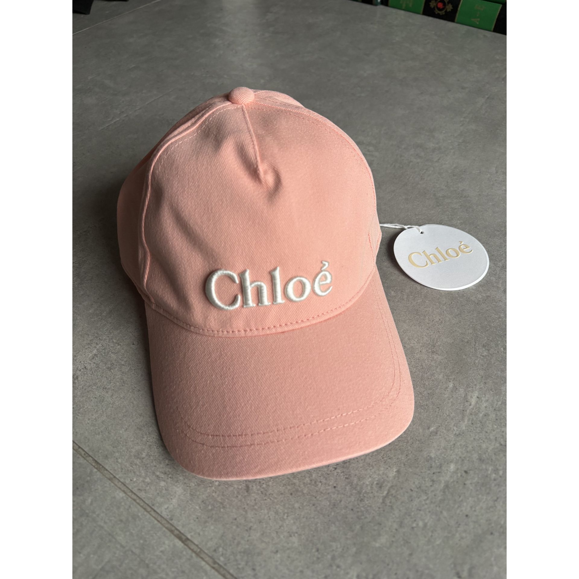 Nowa czapka Chloé (z metkami) w rozmiarze 56. Wykonana z bawełny w kolorze pastelowego różu z białym haftowanym logo. Z tyłu regulowane zapięcie na rzep.