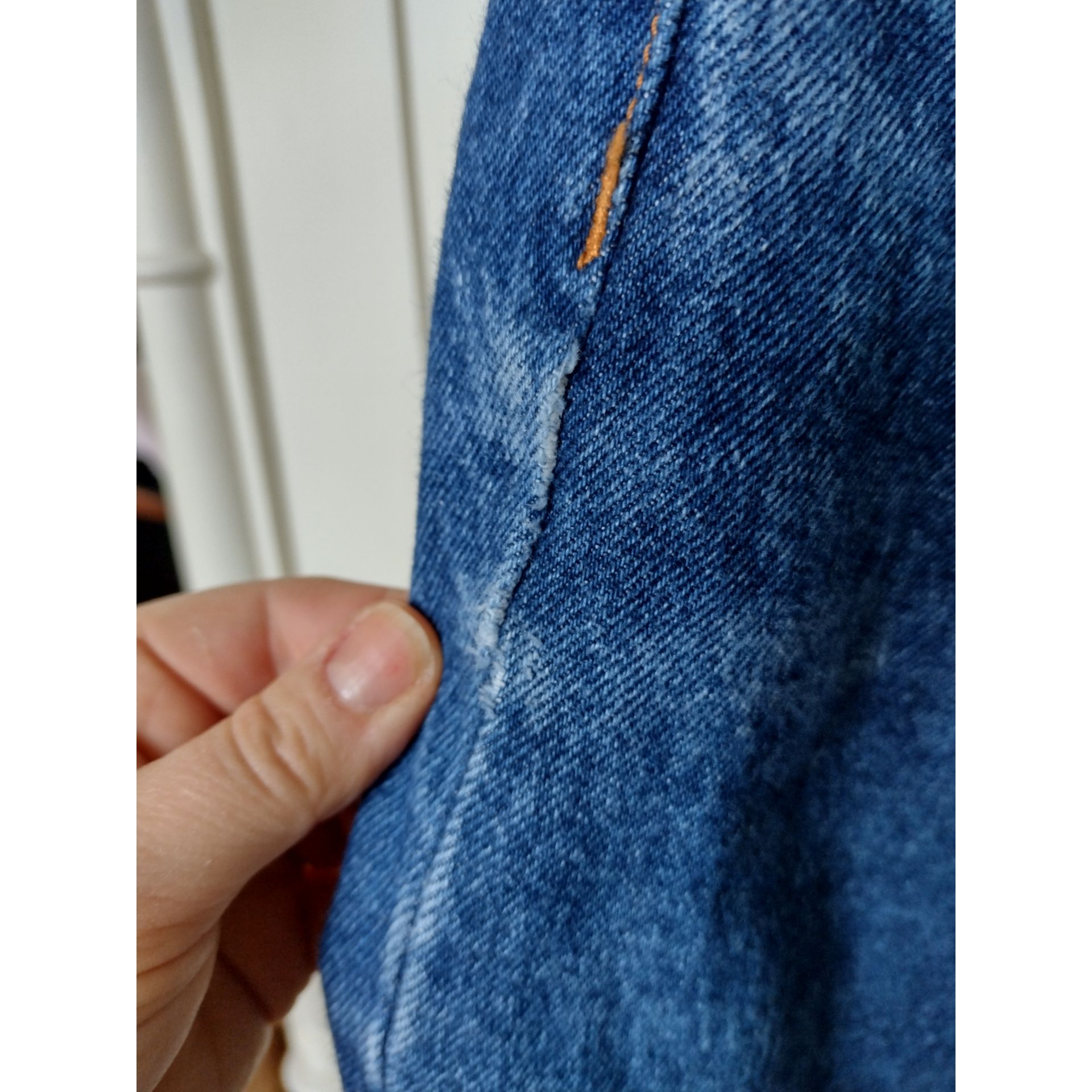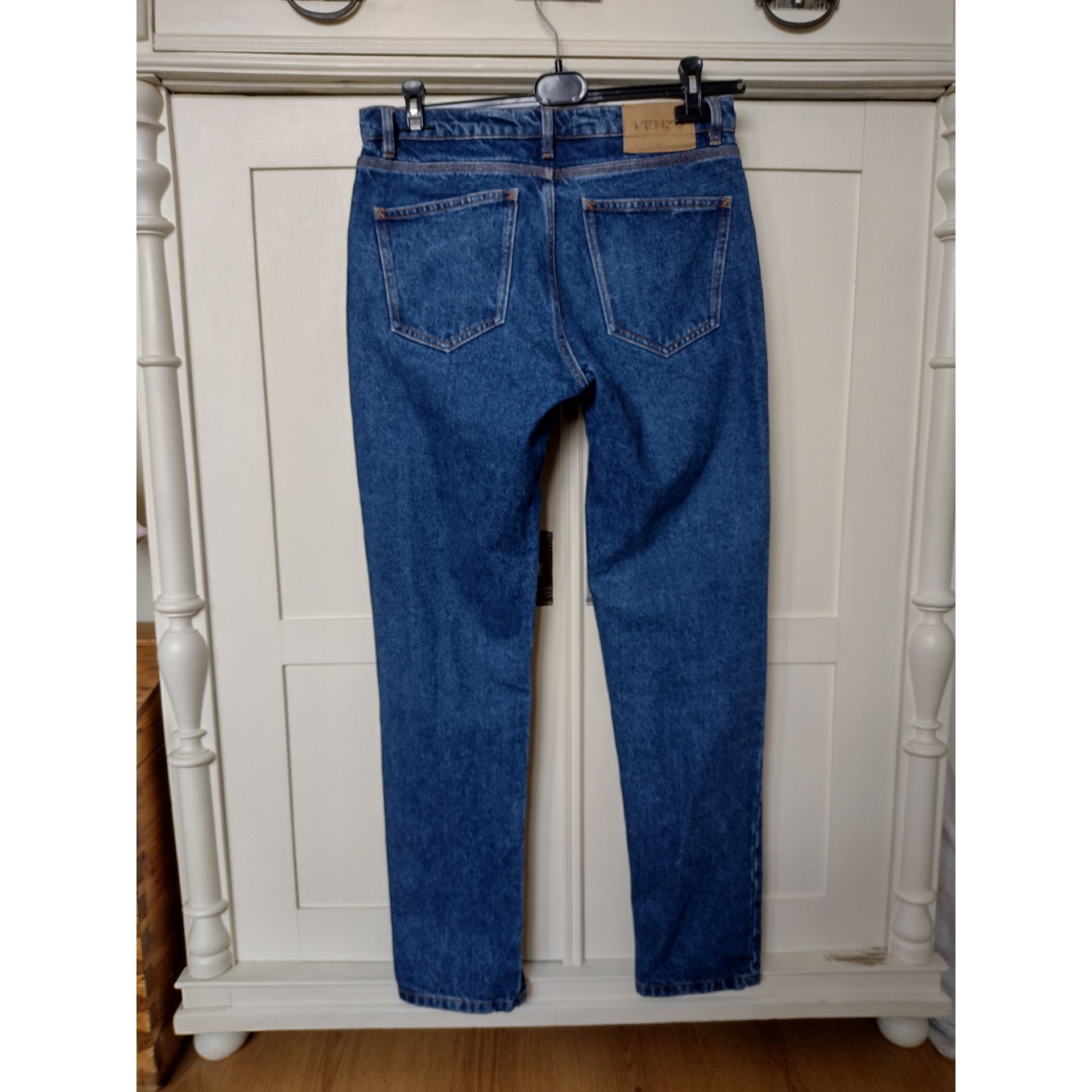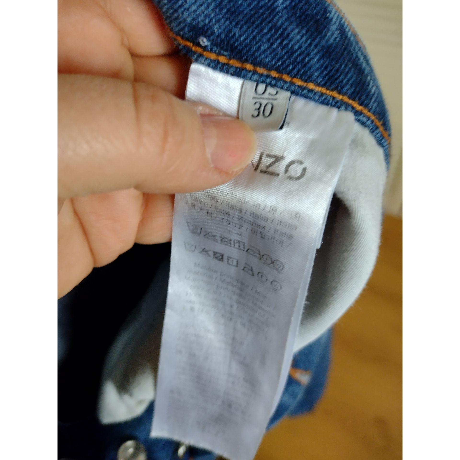 Spodnie jeans Kenzo, kolor niebieski, lekkie przetarcie na boku na prawej nogawce rozmiar 30 długość 104 cm pas 76 cm stan 27 cm biodra 95 cm