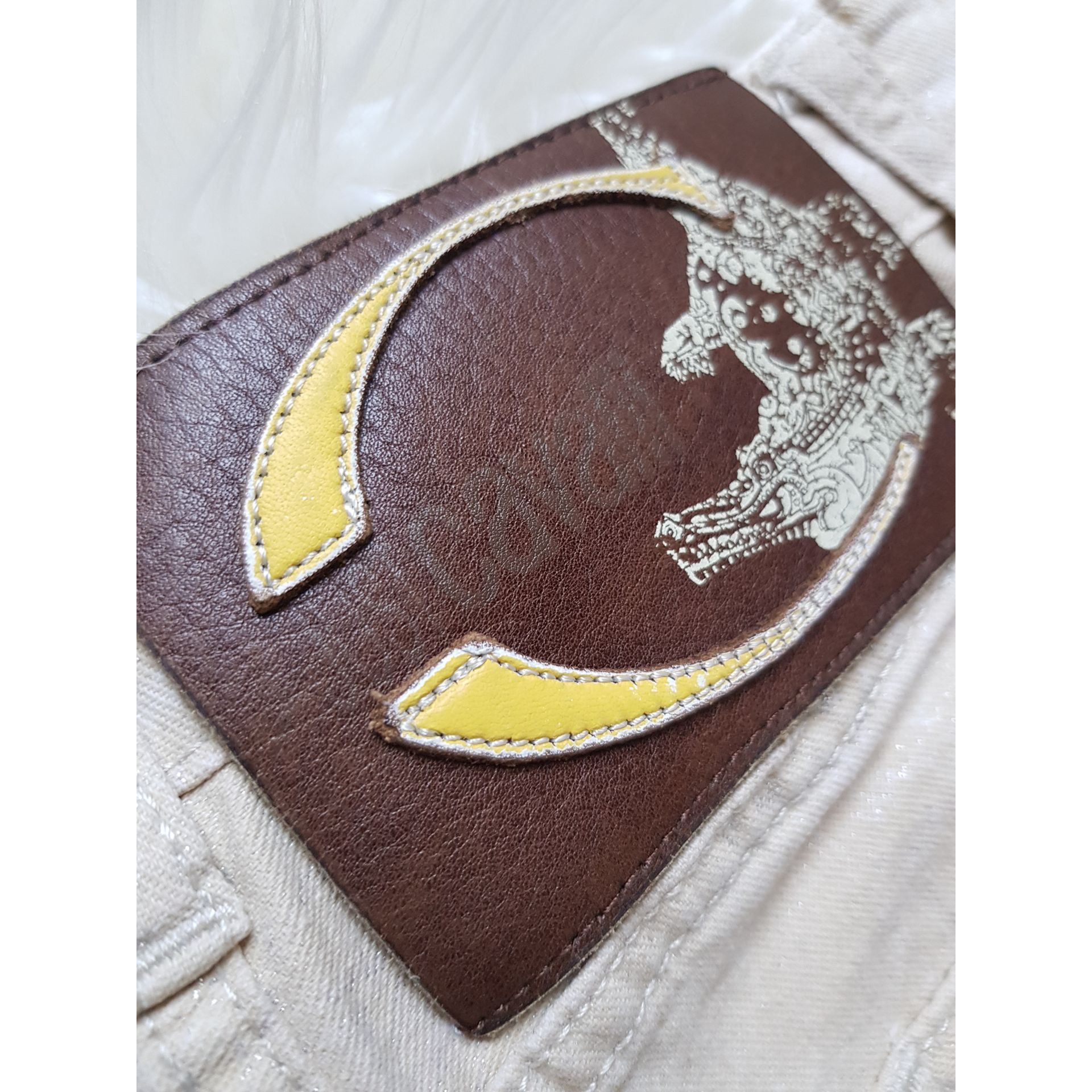 Beżowe w zwierzęcy brokatowy wzór krokodyla . Wzór widać zależnie od padania światła . Stan bardzo dobry