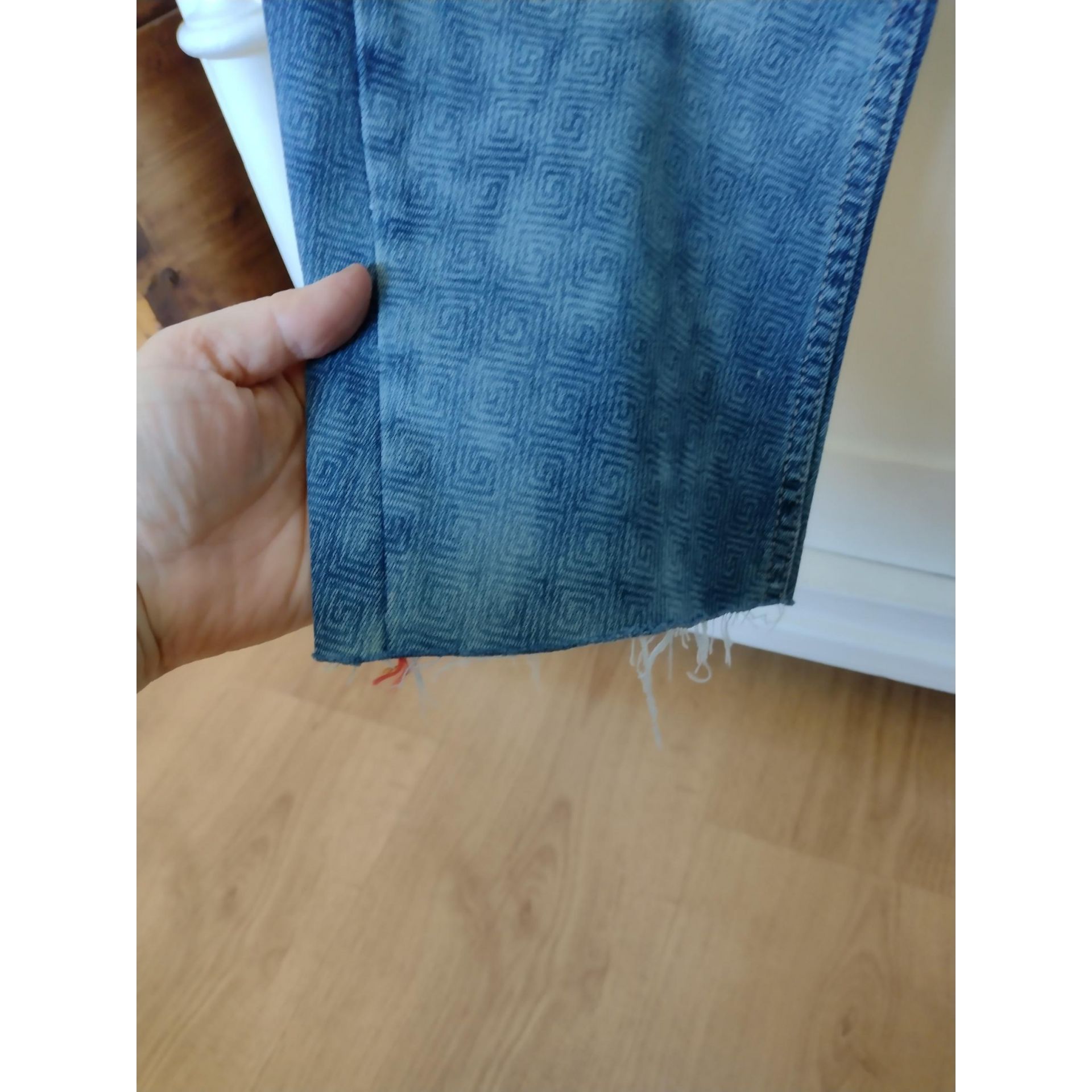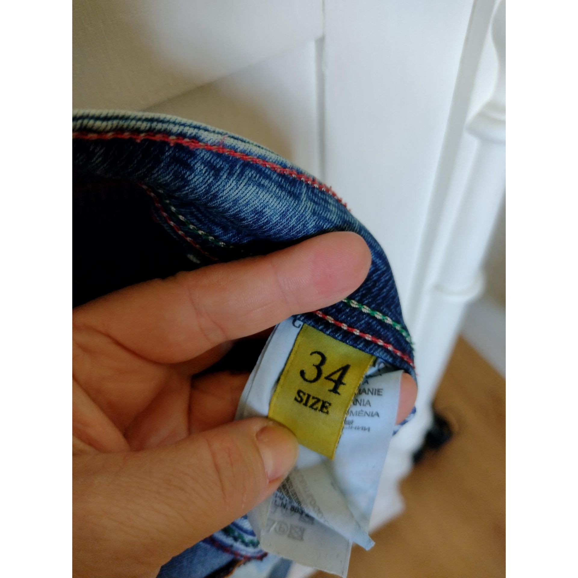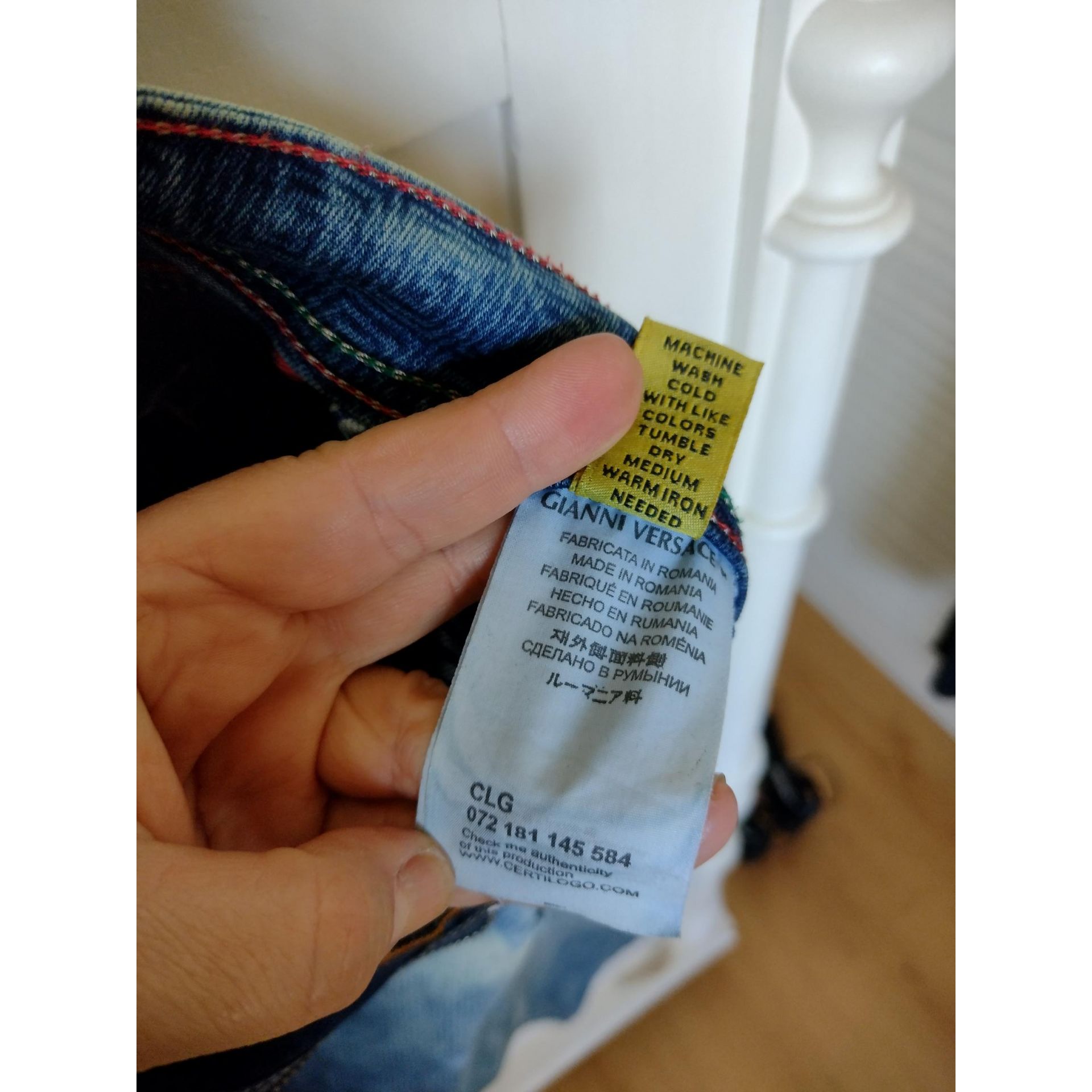 Jeansy luksusowej marki Versace Jeans, kolor niebieski z łatami i przeszyciami, logowane nity, zamek i etykiety, stan bardzo dobry rozmiar L długośc 91 cm pas 89 cm biodra 91 cm. Proszę o przemyślane zakupy, ponieważ nie przyjmuje zwrotów.