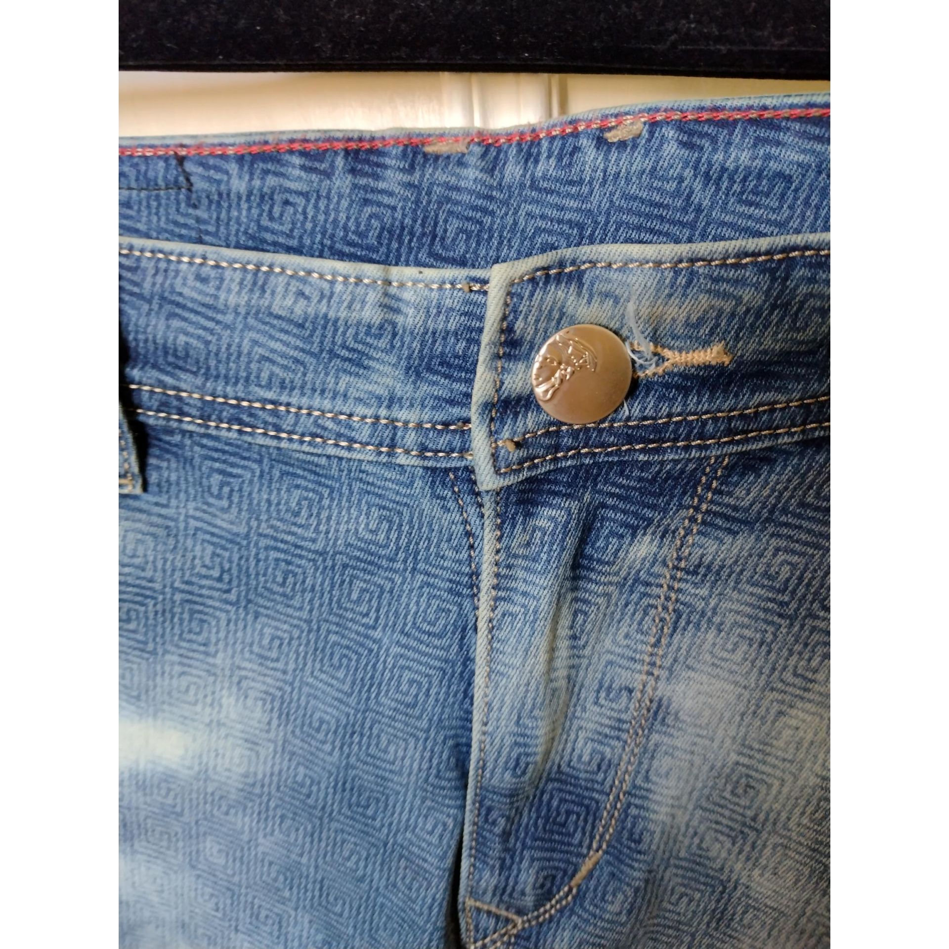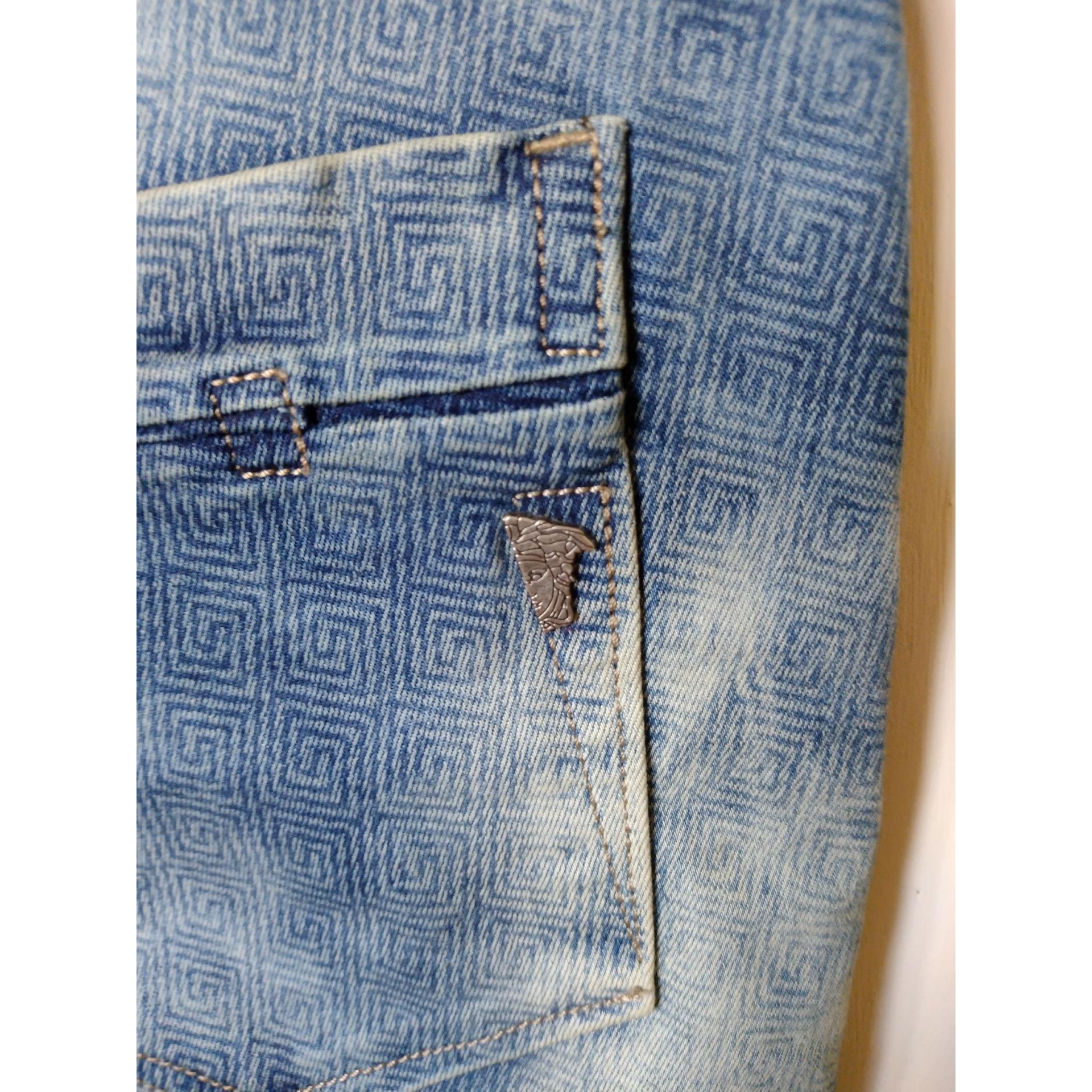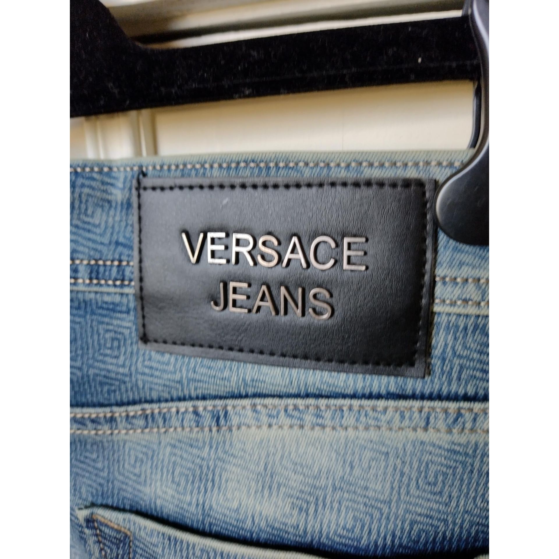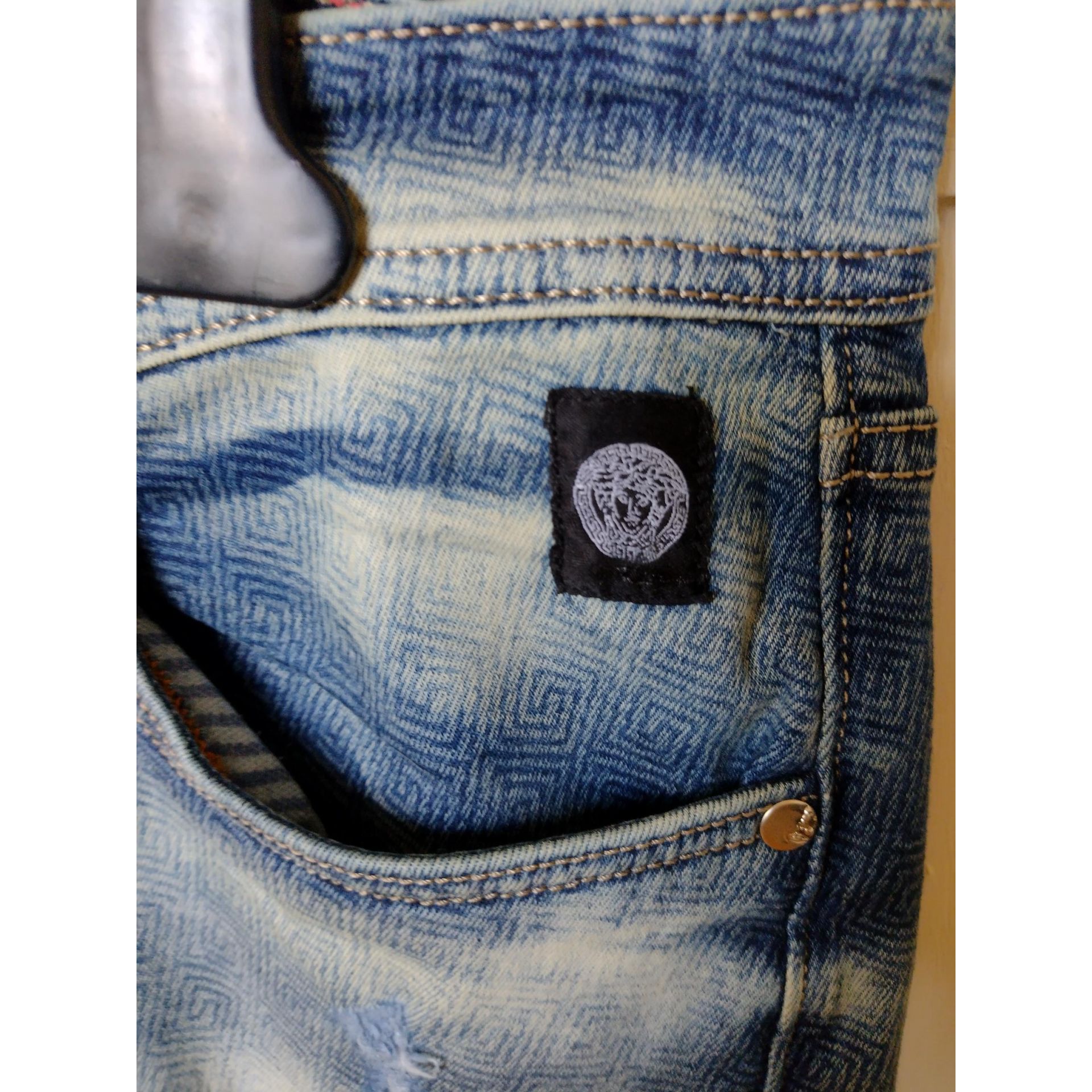 Jeansy luksusowej marki Versace Jeans, kolor niebieski z łatami i przeszyciami, logowane nity, zamek i etykiety, stan bardzo dobry rozmiar L długośc 91 cm pas 89 cm biodra 91 cm. Proszę o przemyślane zakupy, ponieważ nie przyjmuje zwrotów.