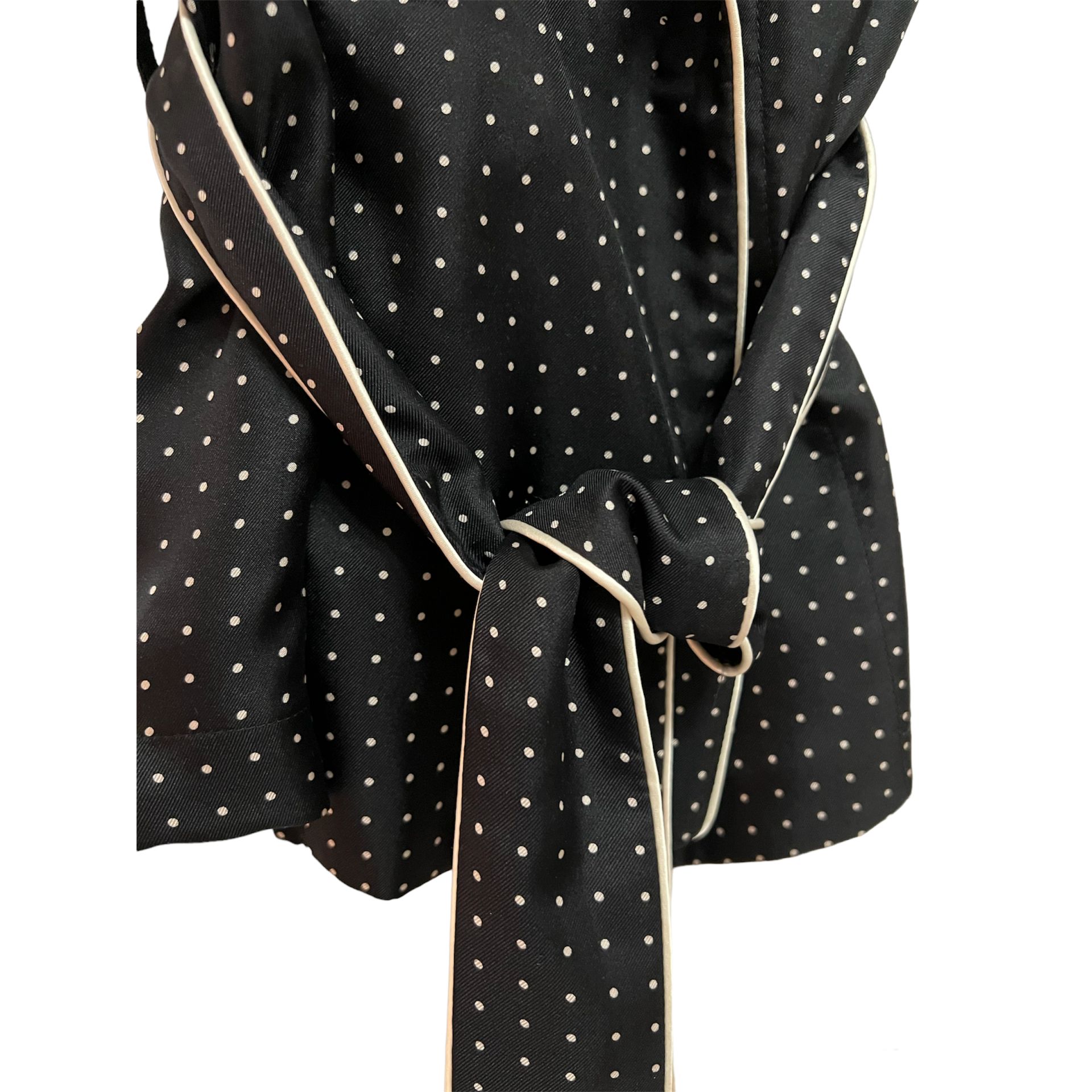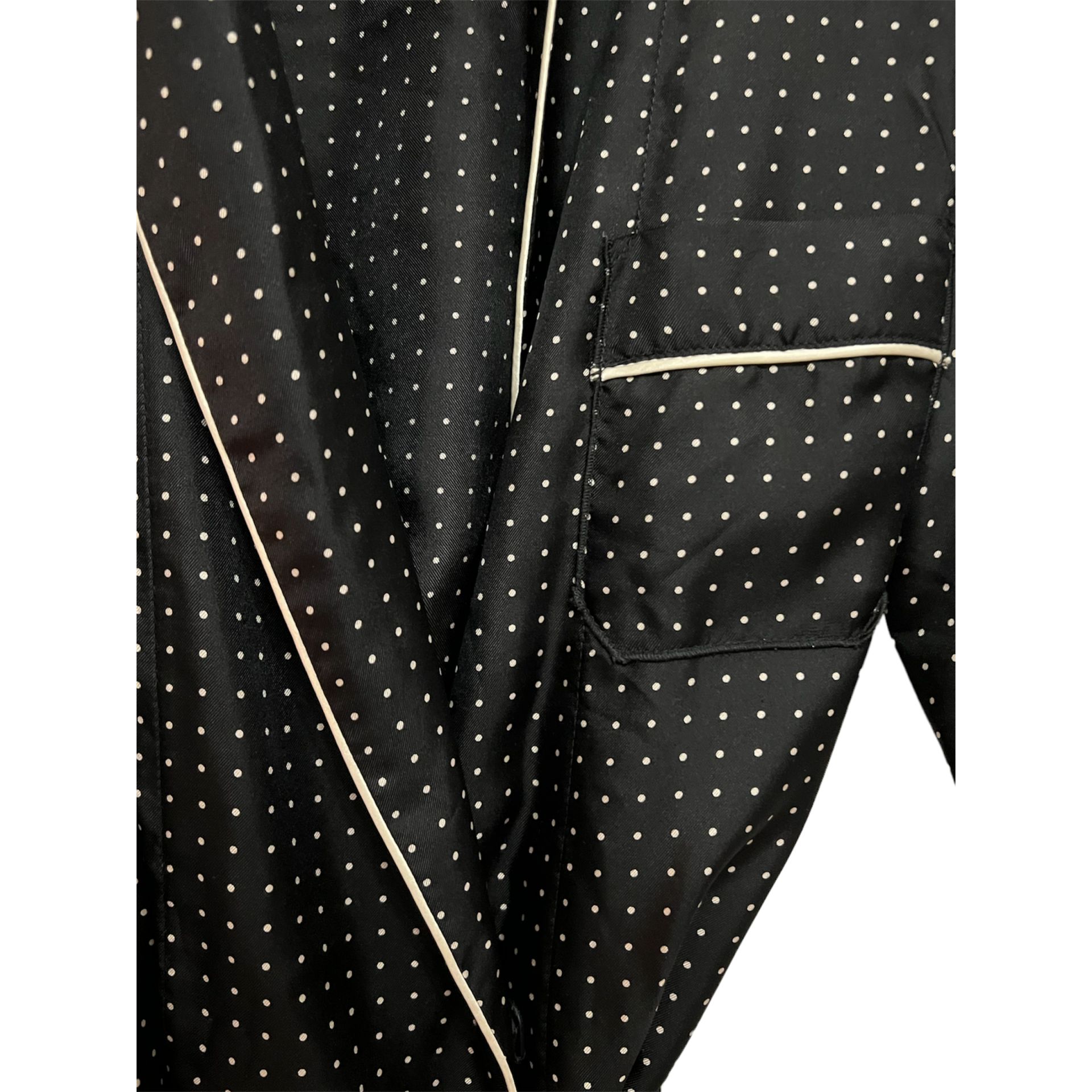 Koszula z kolekcji 2020 z jedna kieszonką zapinana jak kopertówka, i związywana w pasie. Nie jest to koszula do spania. Kolekcja była myśląca. Jest to jedwab 100% do noszenia na zewnątrz. Jest piękna, i cudnie się układa.