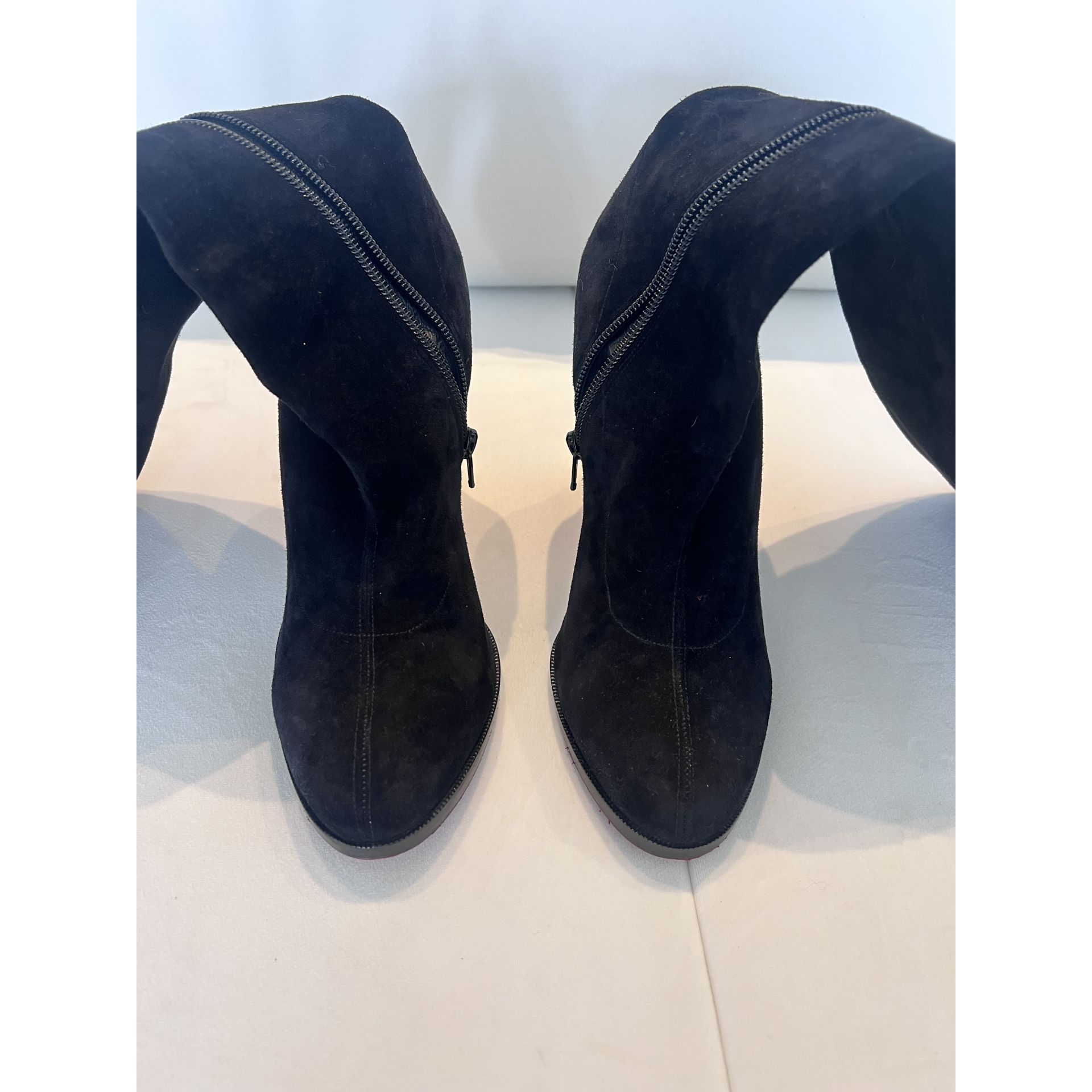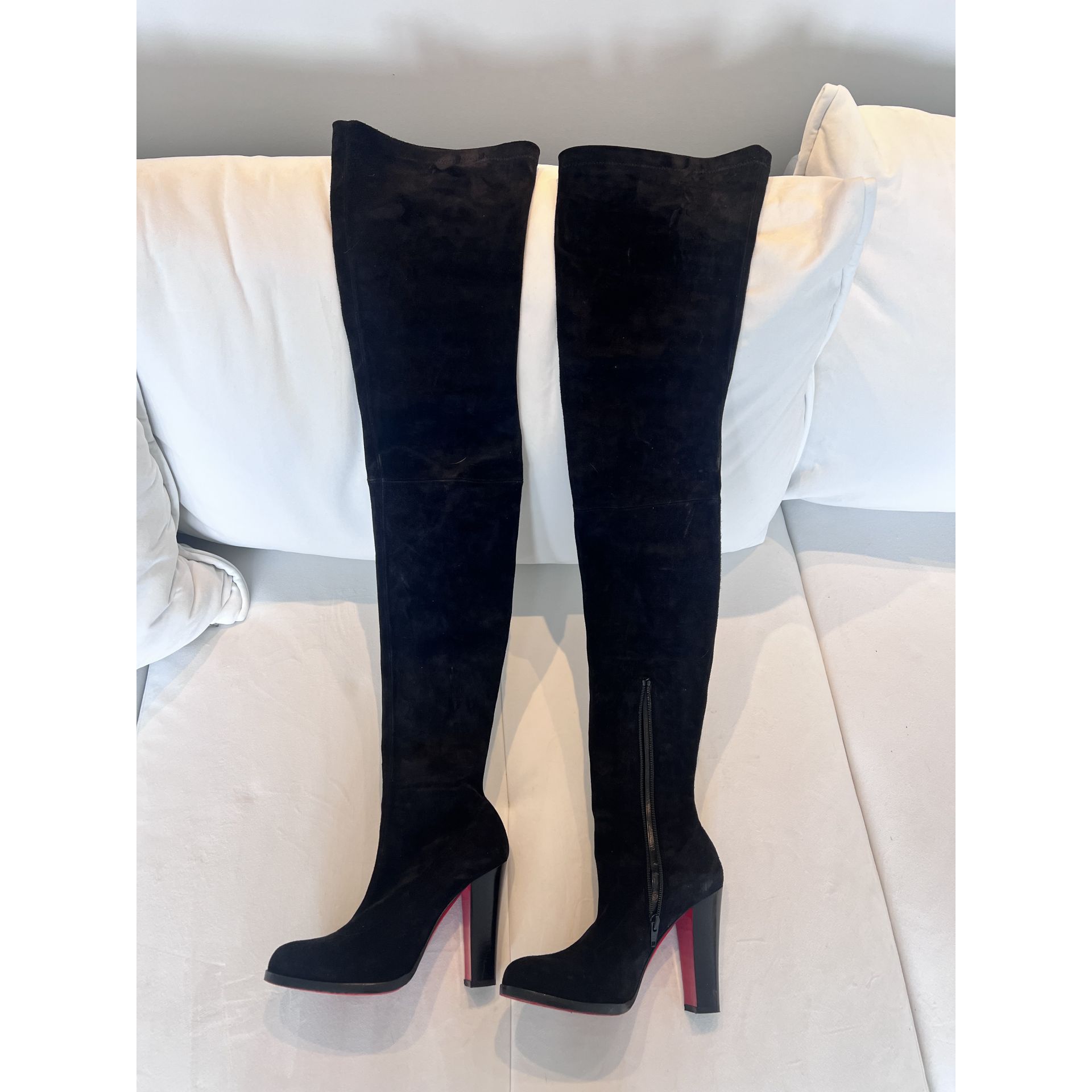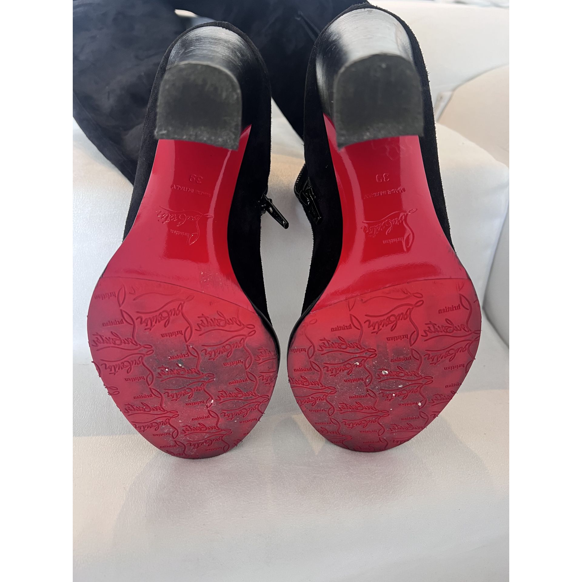 Sprzedam botki CL w rozmiarze 39. Zamsz, sięgają do połowy uda. Mega wygodne. Stan świetny.