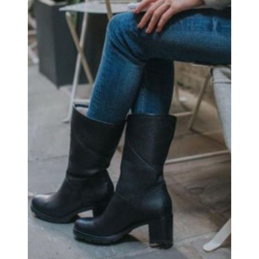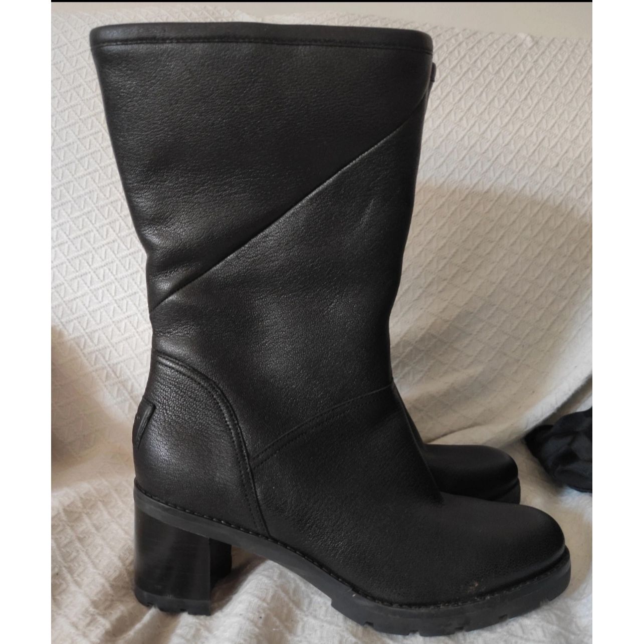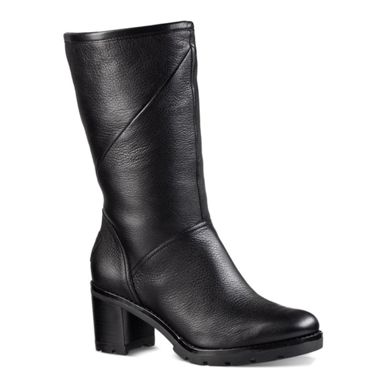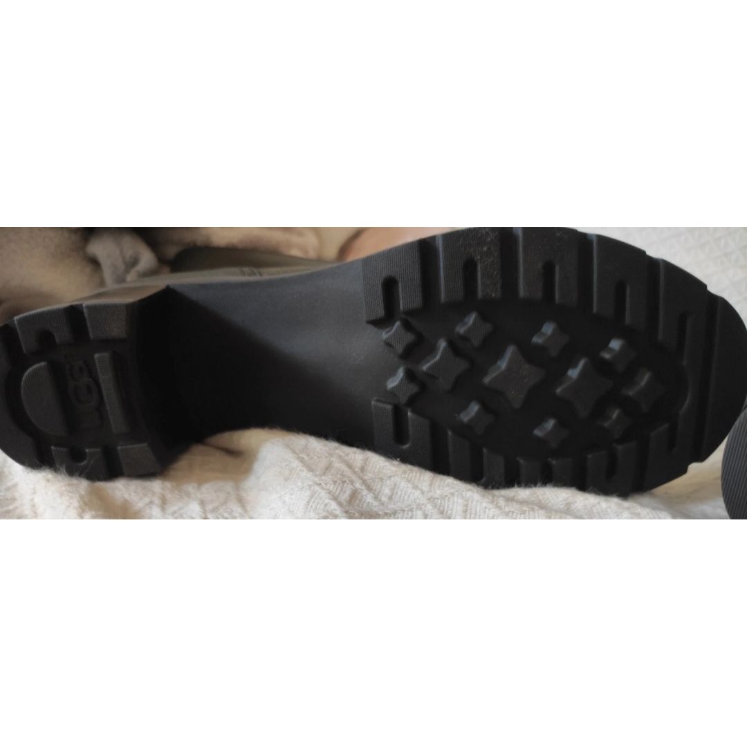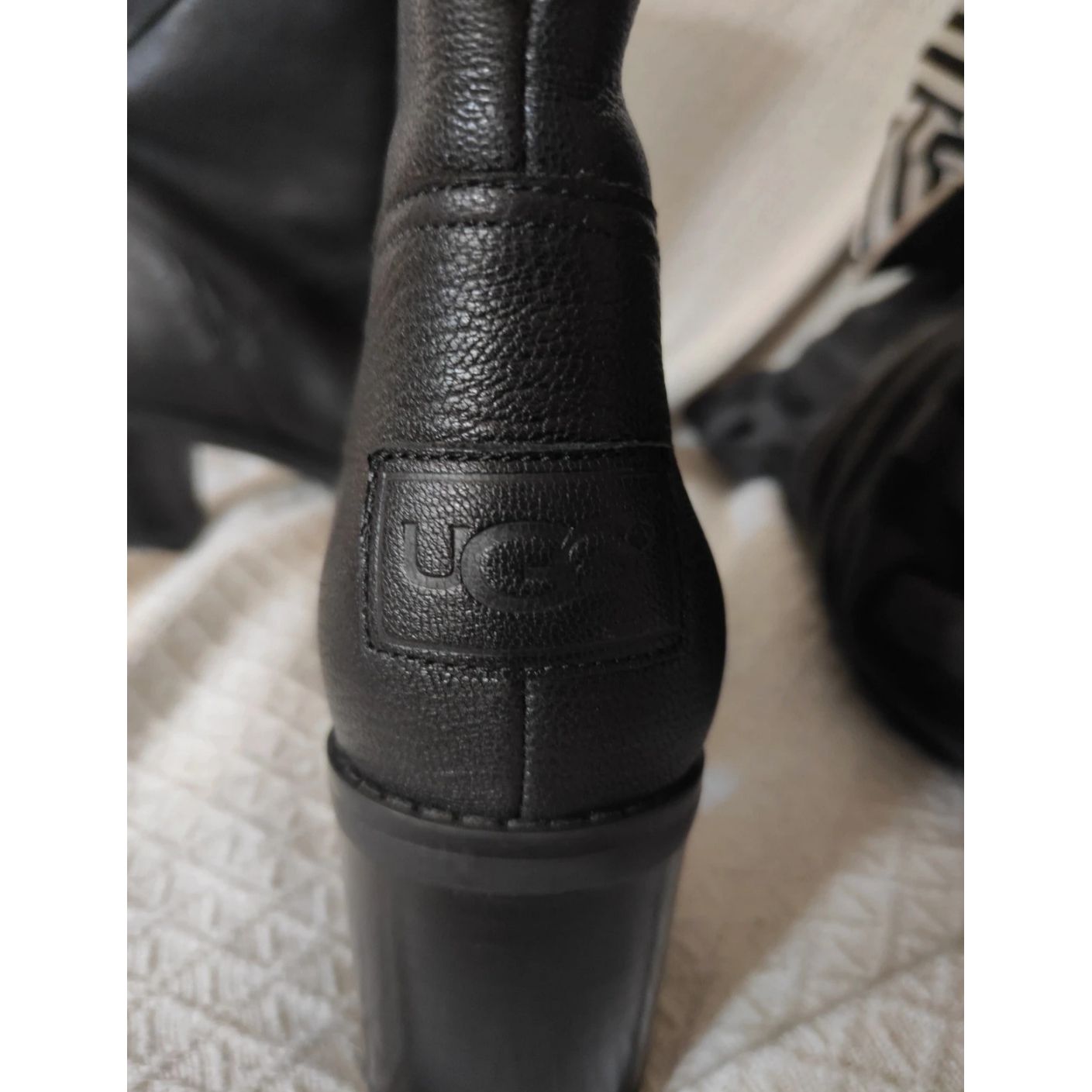 Kozaki marki UGG model Jessia, skórzane na małym obcasie, w środku krótkie futerko owcze. Tył pięty oraz podeszwa logowane. Podeszwa ba traktorze. Rozmiar z metki 40. Obcas wysokość 5.5 cm. Nowe, tylko przymierzane.