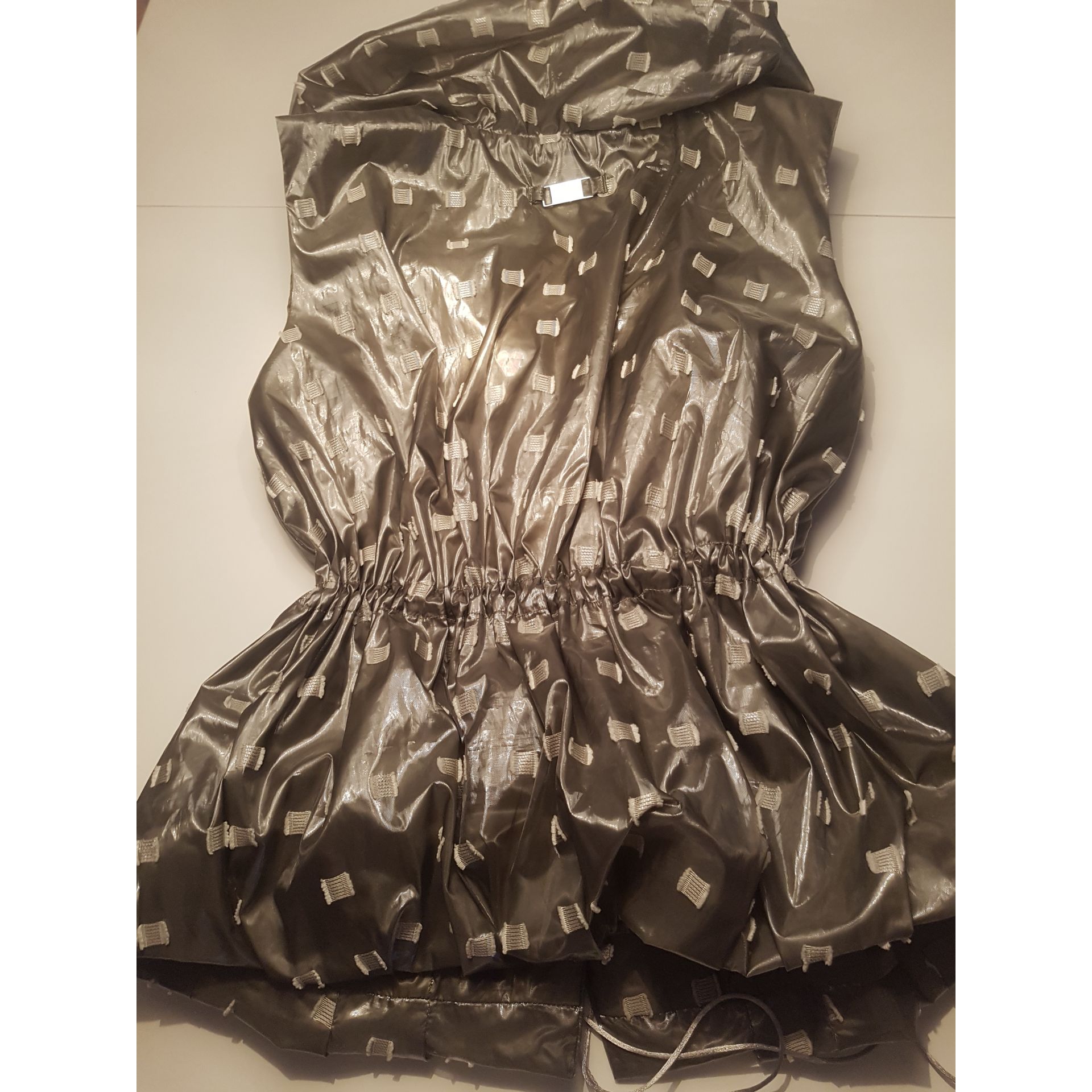 W rozmiarze 32(włoski rozmiar 38)Kamizelka była 2 razy założona.Jest ze ślicznego błyszczącego materiału ze srebrnymi dodatkami.Może być dla osób noszących rozmiar 34 a nawet 36 ponieważ kamizelka ma ściągacz w pasie.