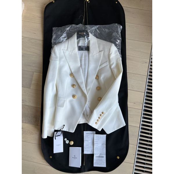 Stylowa marynarka-klasyk BALMAIN Paris, kupiona w Paryżu. Jeden raz założona, w idealnym stanie z pokrowcem, wieszakiem, dodatkowymi guzikami. Proszę o przemyślane zakupy, ponieważ nie przyjmuję zwrotów.
