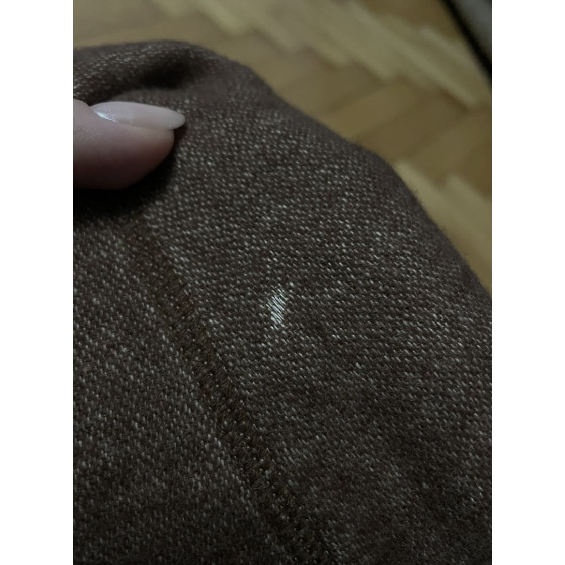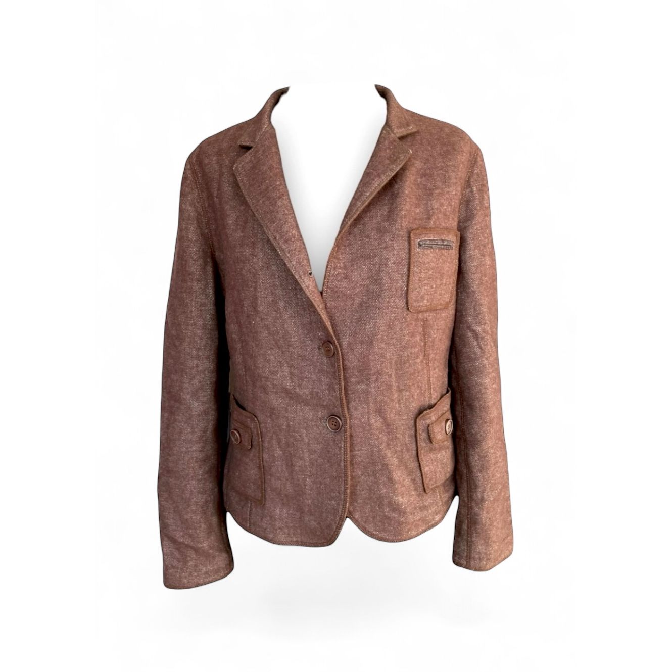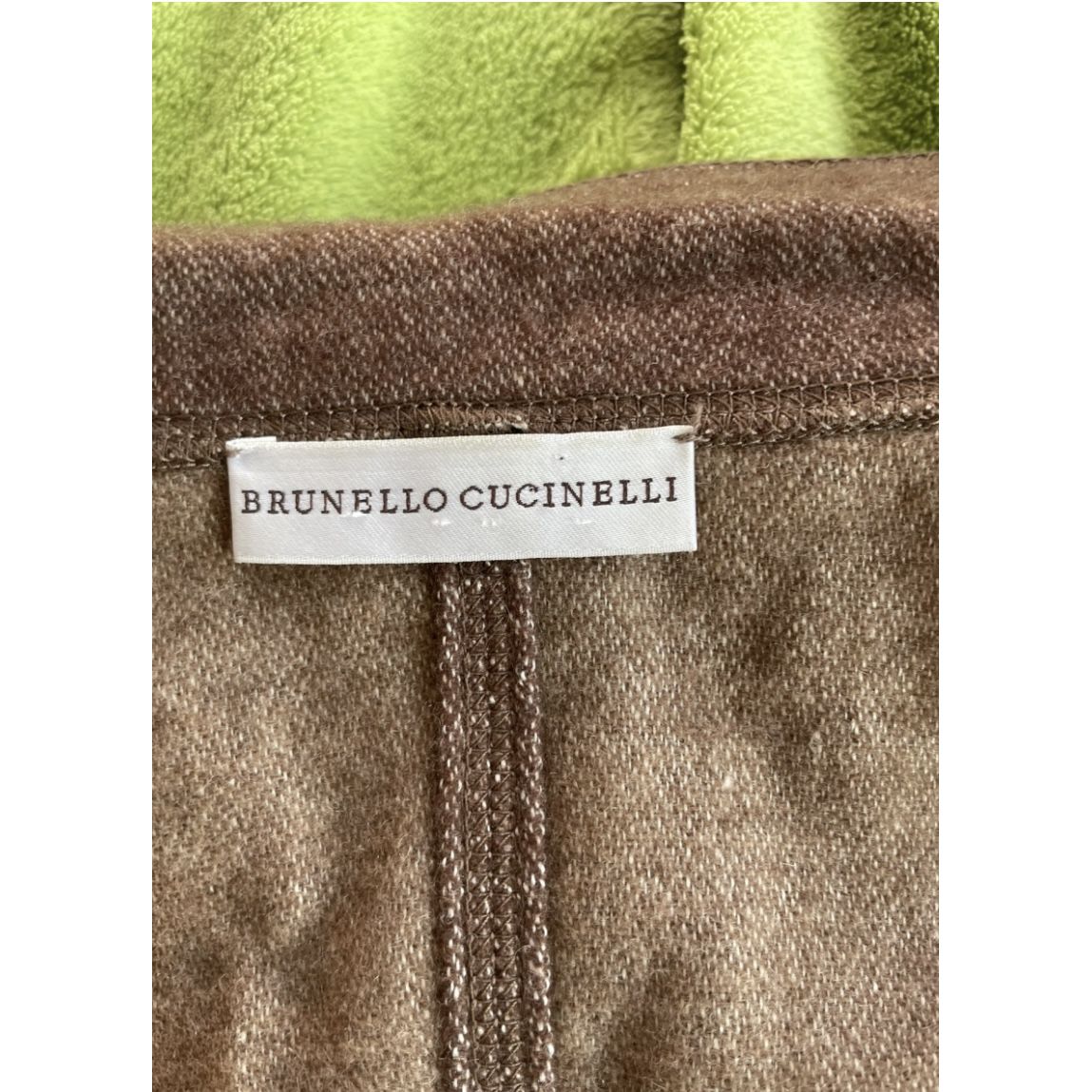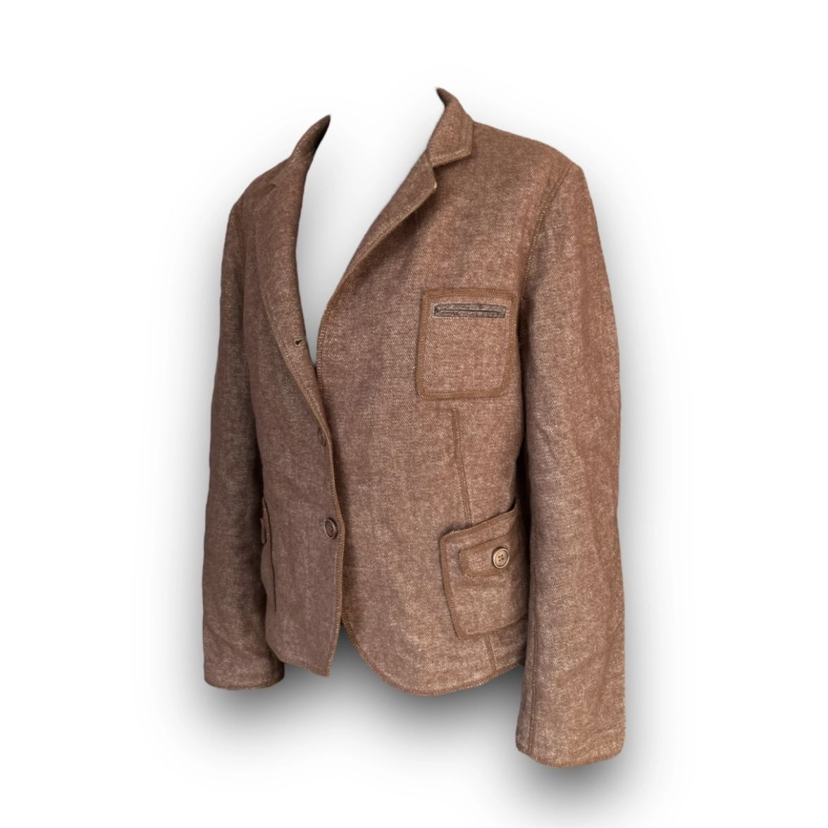 Marynarka damska Brunello Cucinelli w kolorze brązowym. Przedmiot w bardzo dobrym stanie, jedyna wada pokazan na ostatnim zdjęciu, jest wadą fabryczną od początku. Wymiar szerokości w ramionach jest wymiarem szerokości pod pachami! Dodatkowo w wiadomości prywatnej mogę wysłać szerokość w ramionach. Proszę o przemyślane zakupy, ponieważ nie przyjmuję zwrotów.