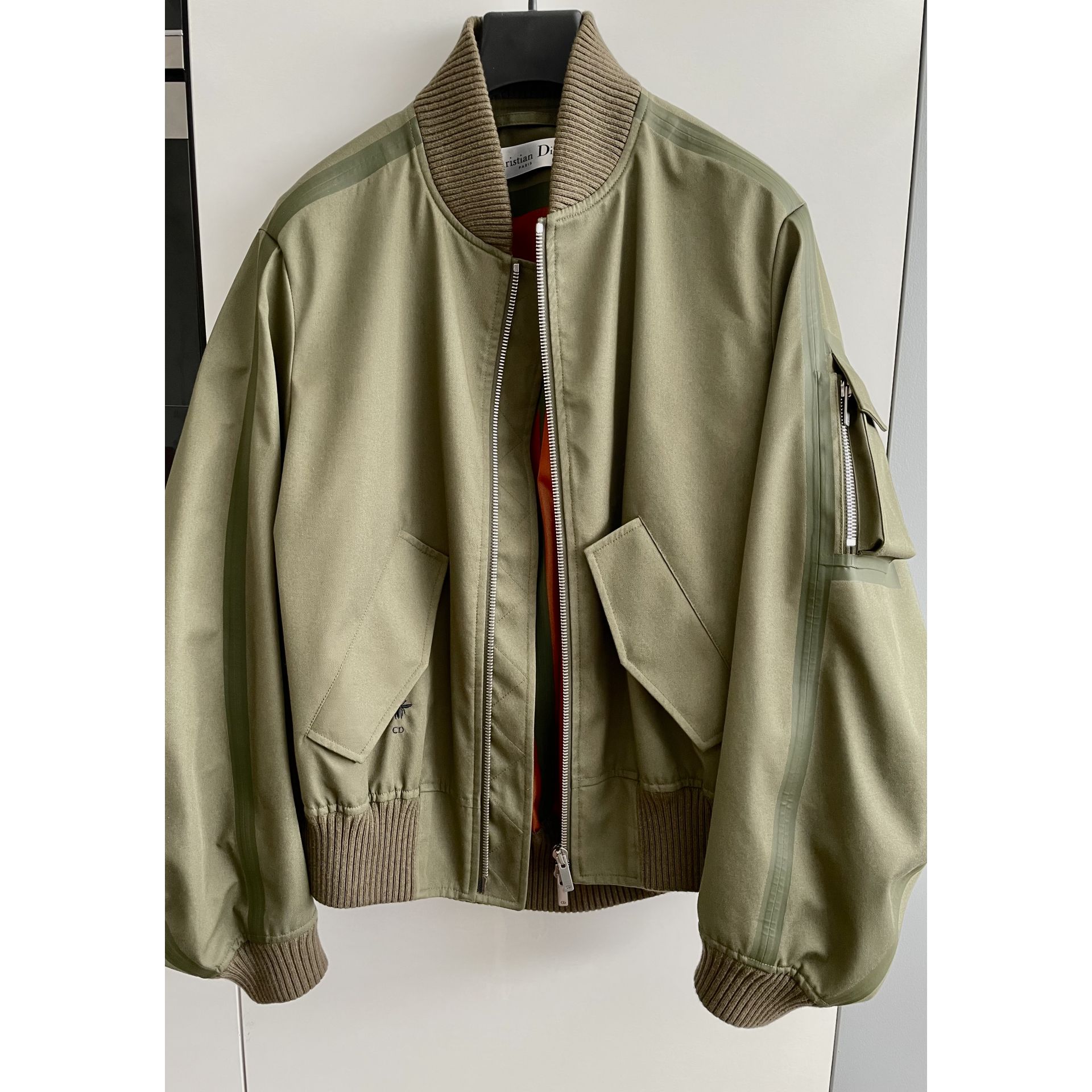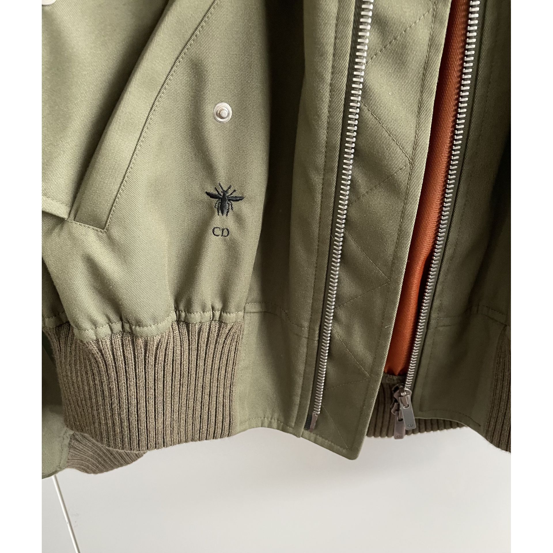 KURTKA BOMBER CHRISTIAN DIOR W ROZMIARZE S ALE JEST DOŚĆ OVERSIZE WIĘC NA M TEŻ PASUJE. KOLOR KHAKI WNĘTRZE POMARAŃCZOWE, MATERIAŁ POLIESTER I BAWEŁNA. ZASUWANA NA DWUSTRONNY ZAMEK, KIESZONKI, LOGO, PRZY SZYI I RĘKAWACH ŚCIĄGACZ. STAN IDEALNY. PROSZE O PRZEMYŚLANE ZAKUPY, GDYŻ NIE PRZYJMUJĘ ZWROTÓW.