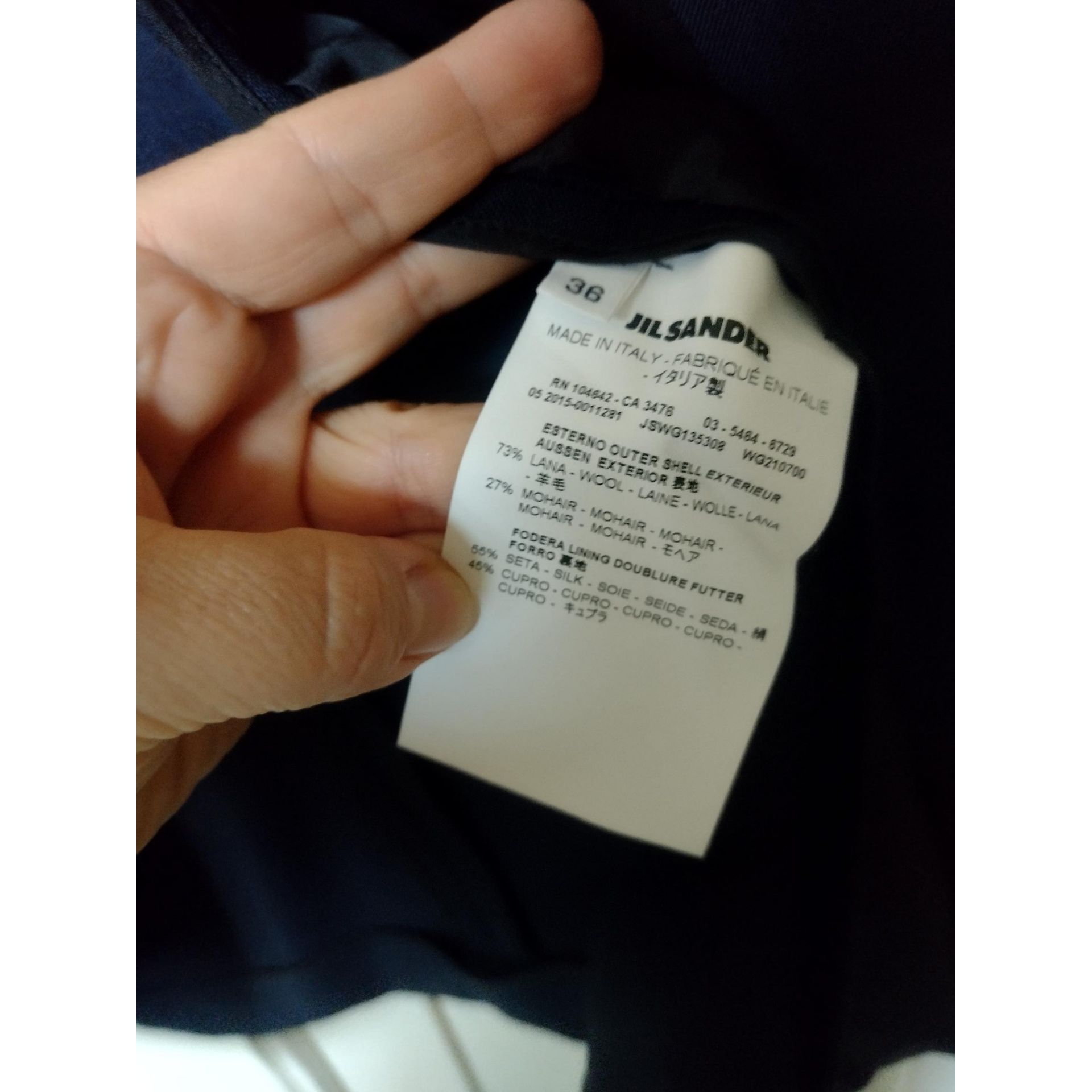 Klasyczna marynarka damska luksusowej marki Jil Sander kolor granatowy, wykonana z wełny moheru i jedwabiu, stan bardzo dobry- z przodu delikatne przetarcie materiału niewidoczne podczas noszenia rozmiar z metki S długośc 70 cm szerokosc 46 cm ramiona 38 cm rękaw 62 cm. Proszę o przemyślane zakupy, ponieważ nie przyjmuję zwrotów.