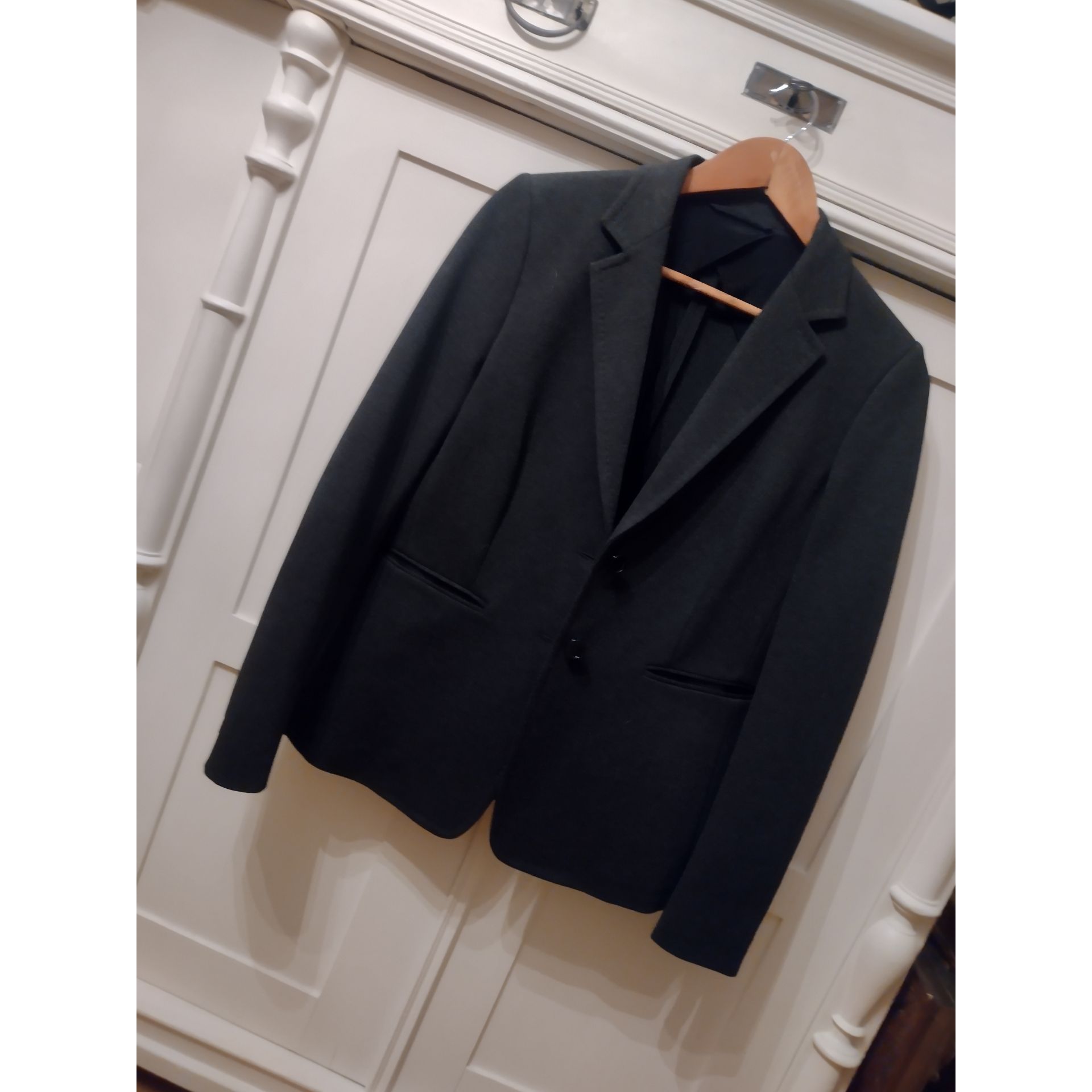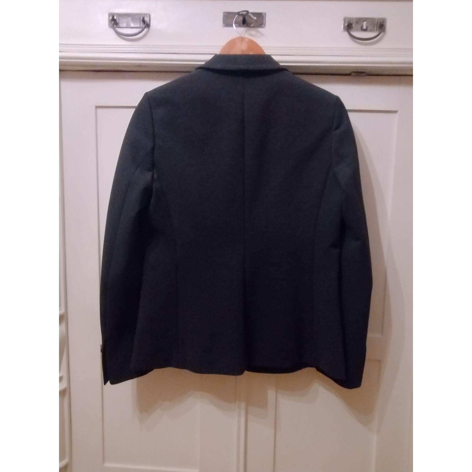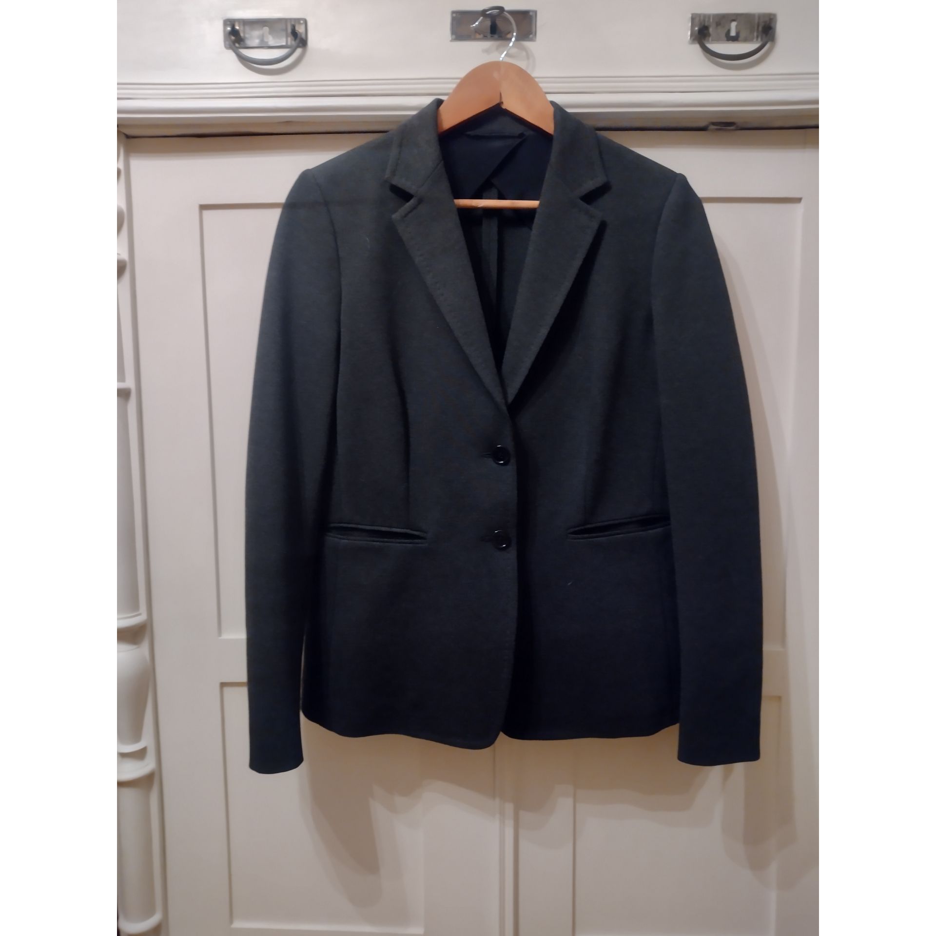 Marynarka luksusowej marki Max Mara kolor stalowy nowa nigdy nie noszona ale już bez papierowych metek rozmiar M długość 67 cm szerokość 47 cm ramiona 39 cm rękaw 64 cm. Proszę o przemyślane zakupy, ponieważ nie przyjmuję zwrotów.