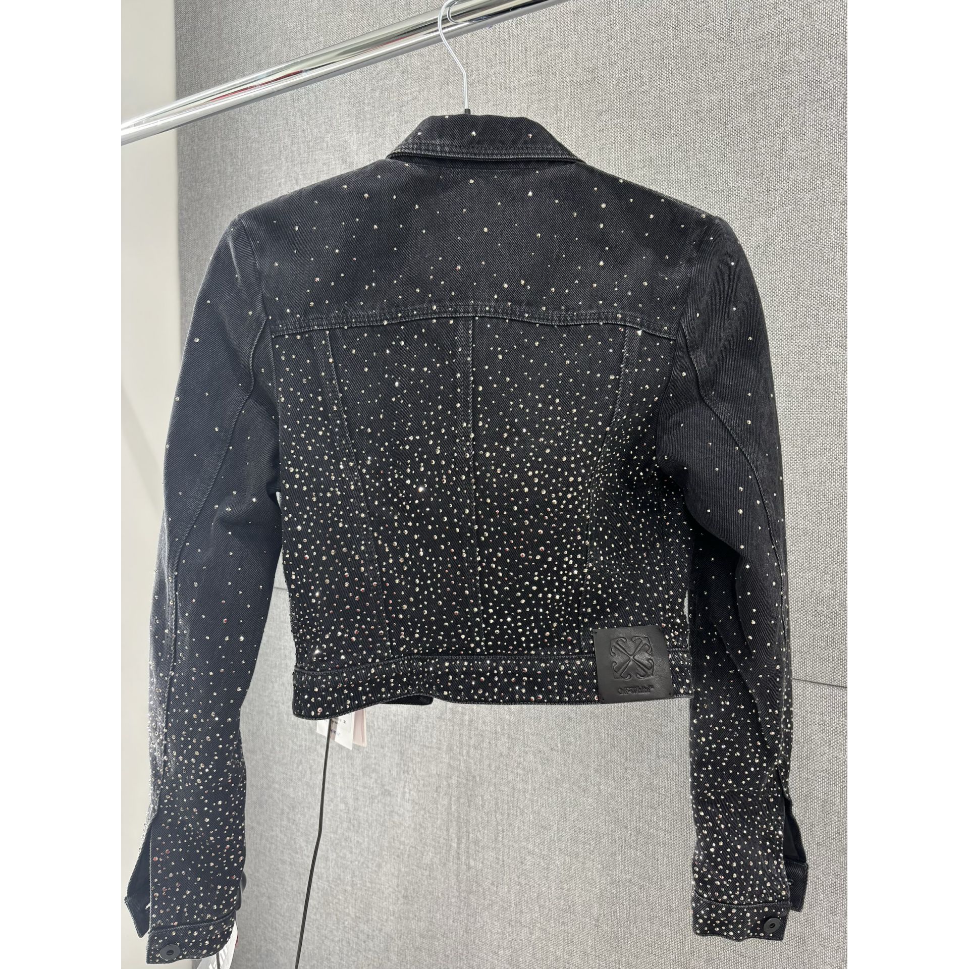 Nowa jeansowa kurtka w rozmiarze XS (włoskie 38), z miękką podszewką, cienkie poduszki wszyte w ramionach, absolutny unikat, wszędzie wyprzedana i niedostępna, obsypana kryształkami, które na żywo pięknie się mienią.