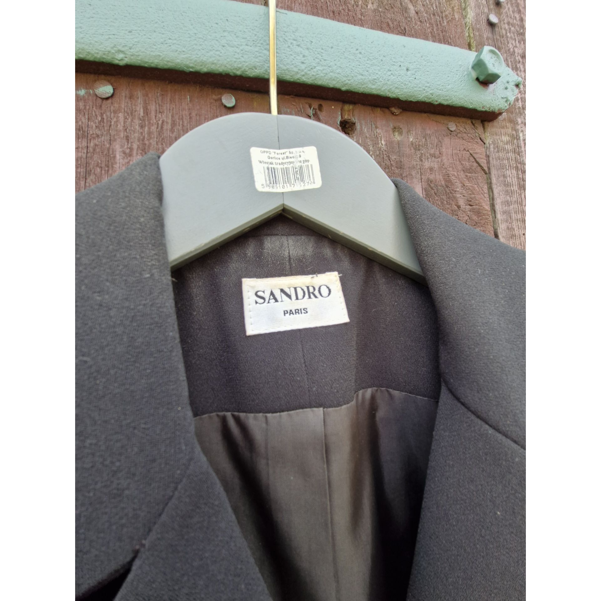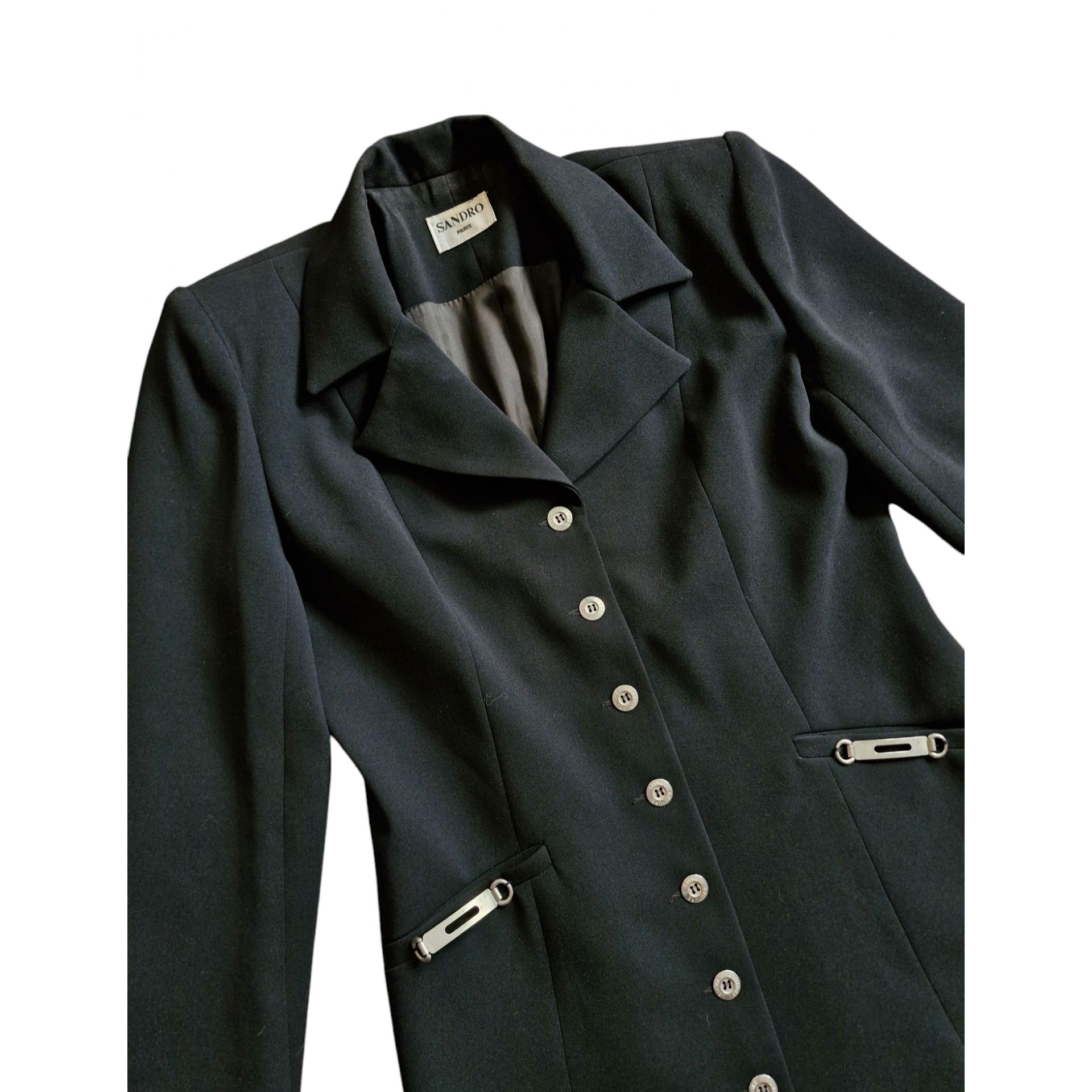 Sandro Paris przepiękna marynarka/frak vintage z lat 80/90. Bardzo ładny krój z tamtych lat. Poduszki w ramionach. Metalowe klamry przy kieszeniach. Bardzo ładny pas z guzikami z logowaniem. Poliester.