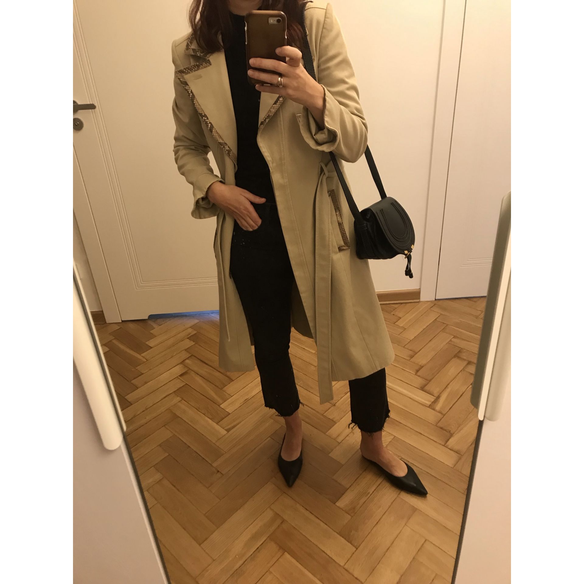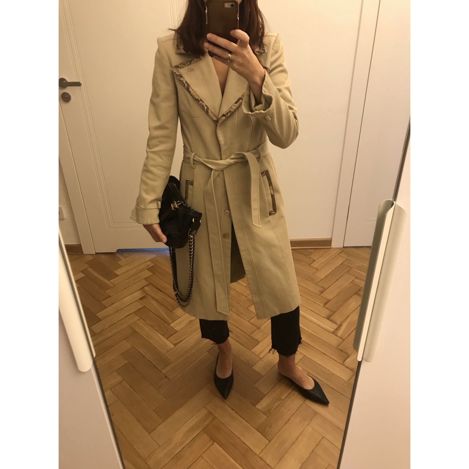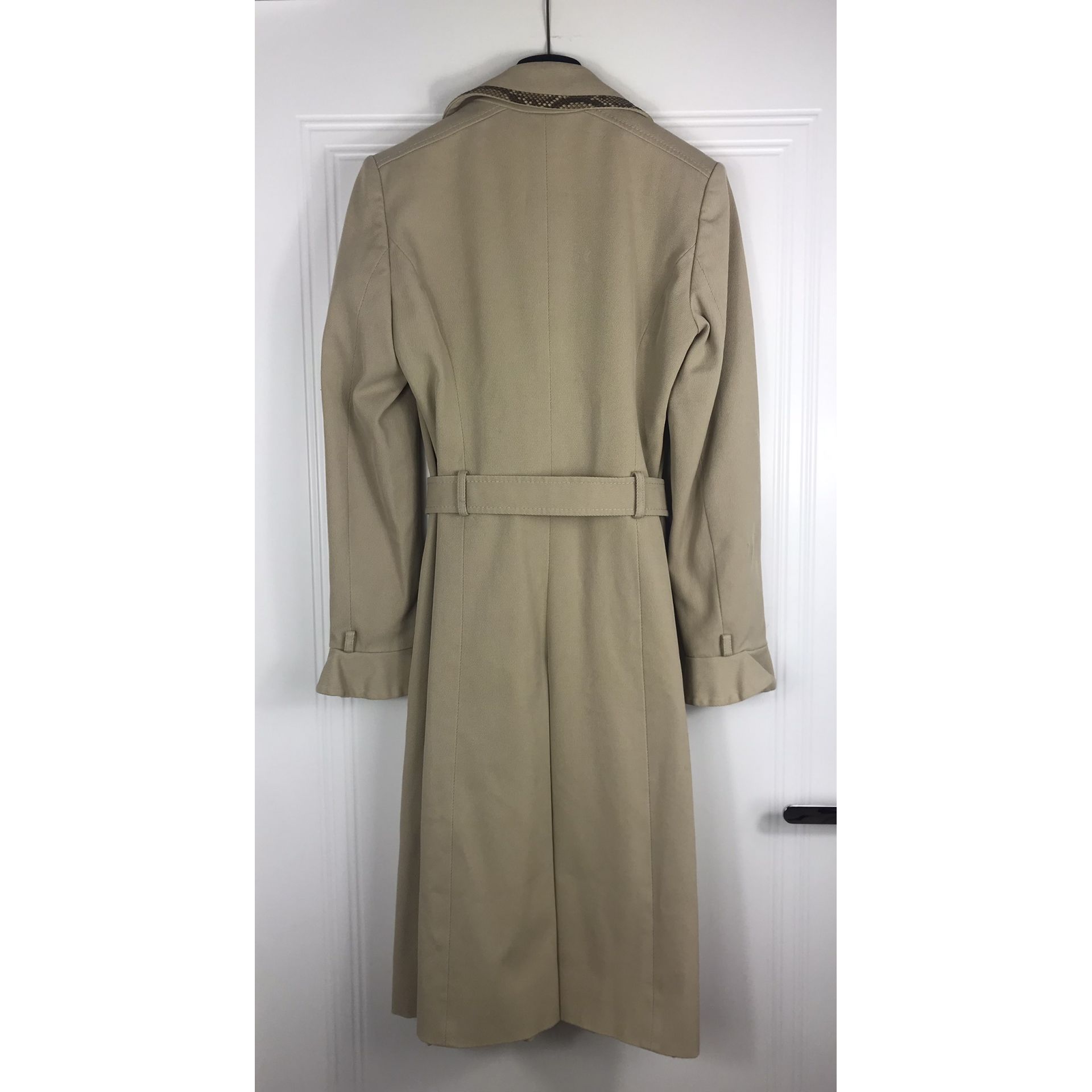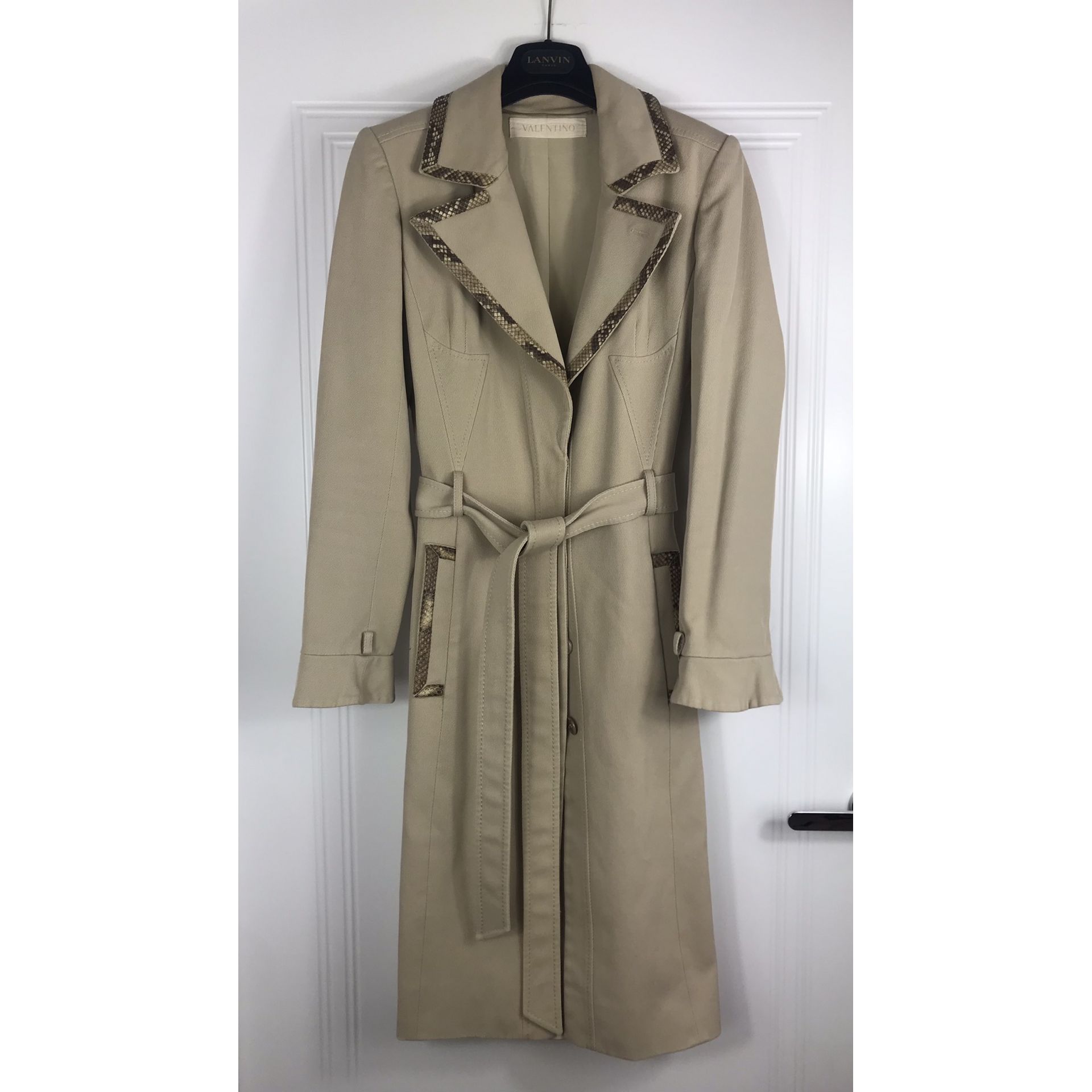 Valentino Garavani trencz. Kolor beżowy z lamówką ze sztucznej skóry węża. Uszyty we Włoszech