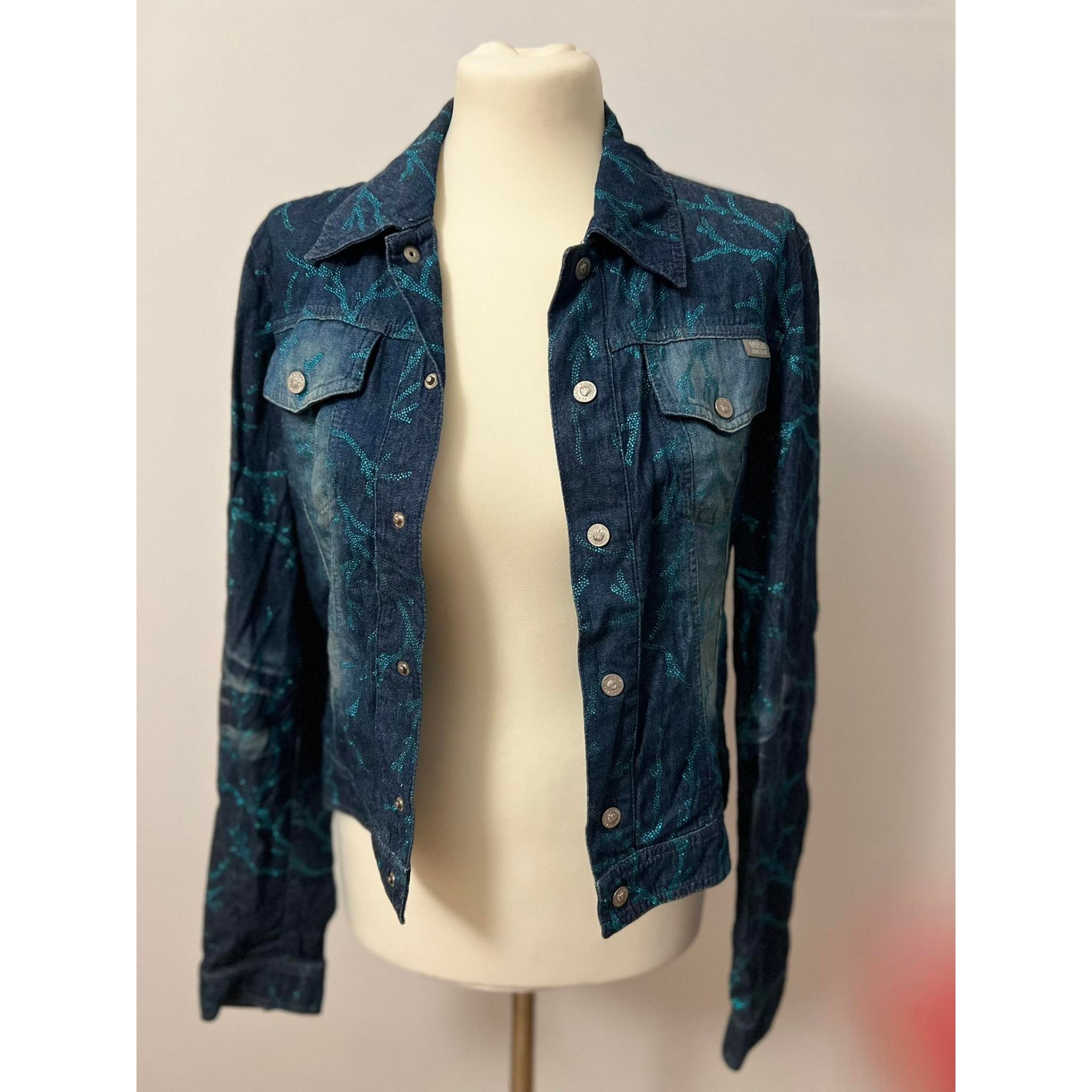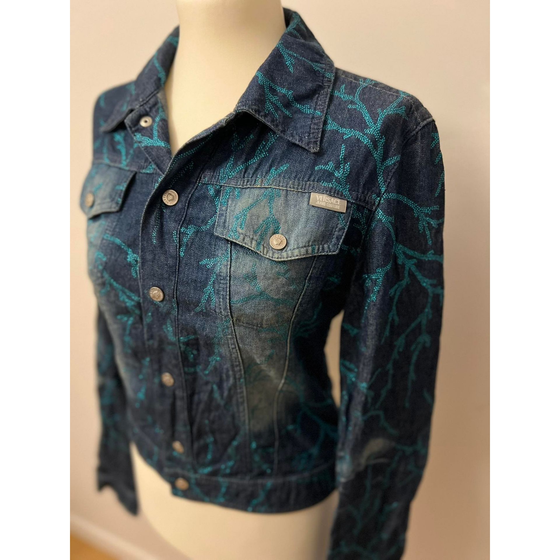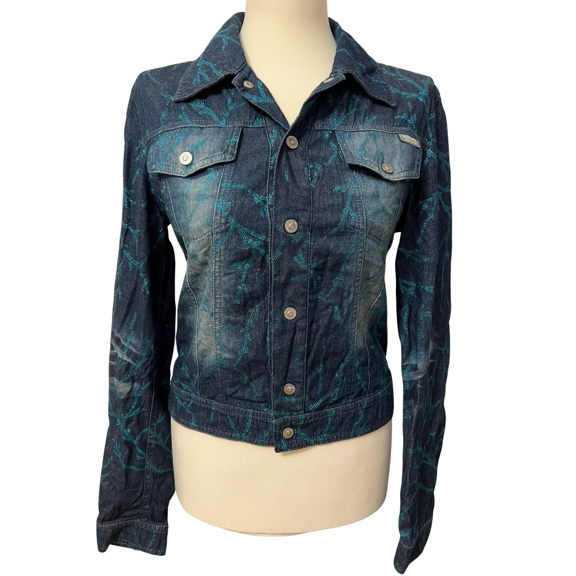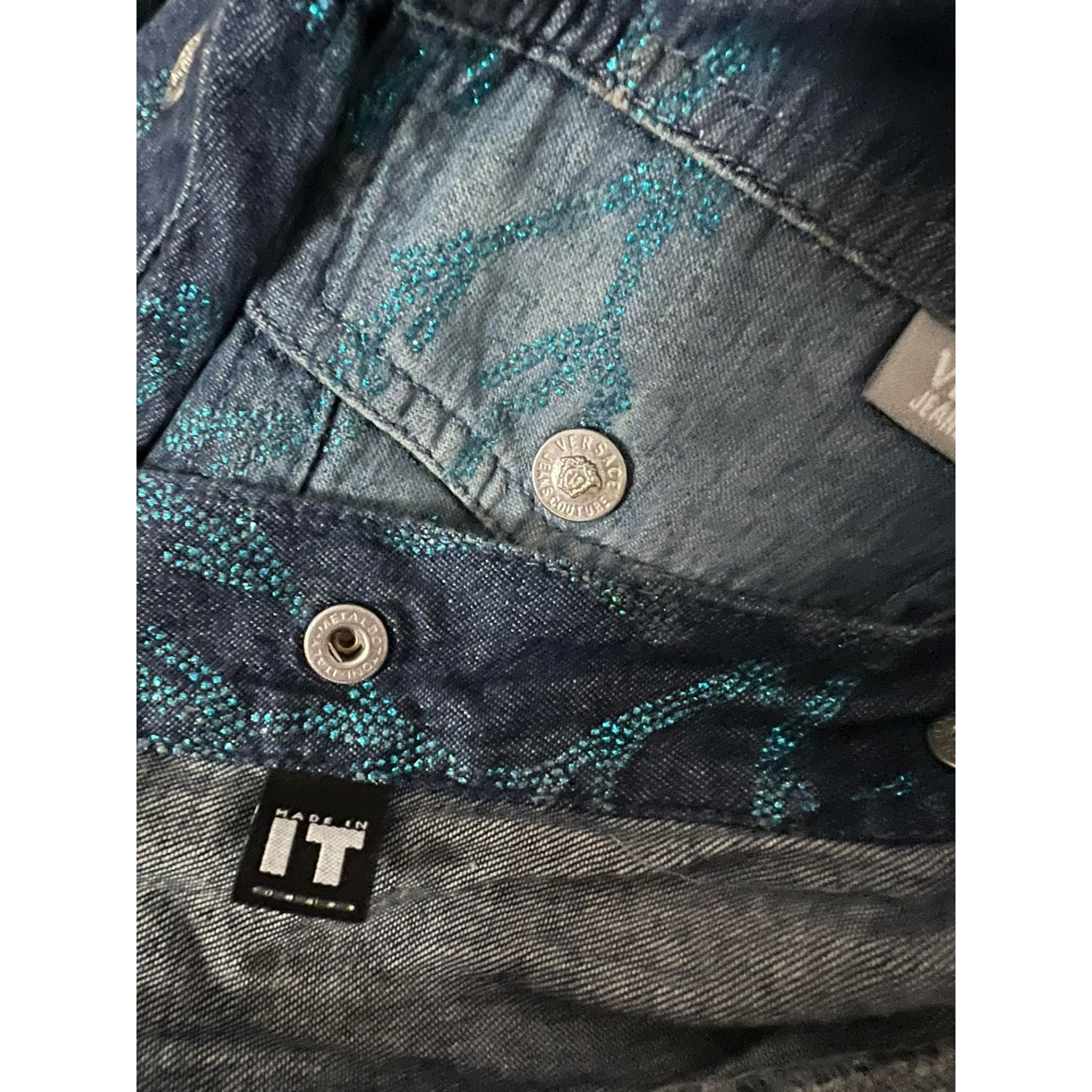 Jeansowa kurtka z brokatową aplikacją firmy Versace