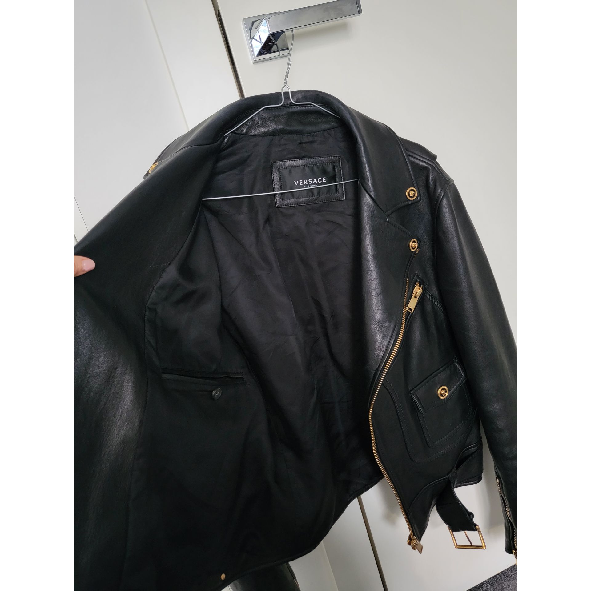 Versace Pre-owned leather jacket in black