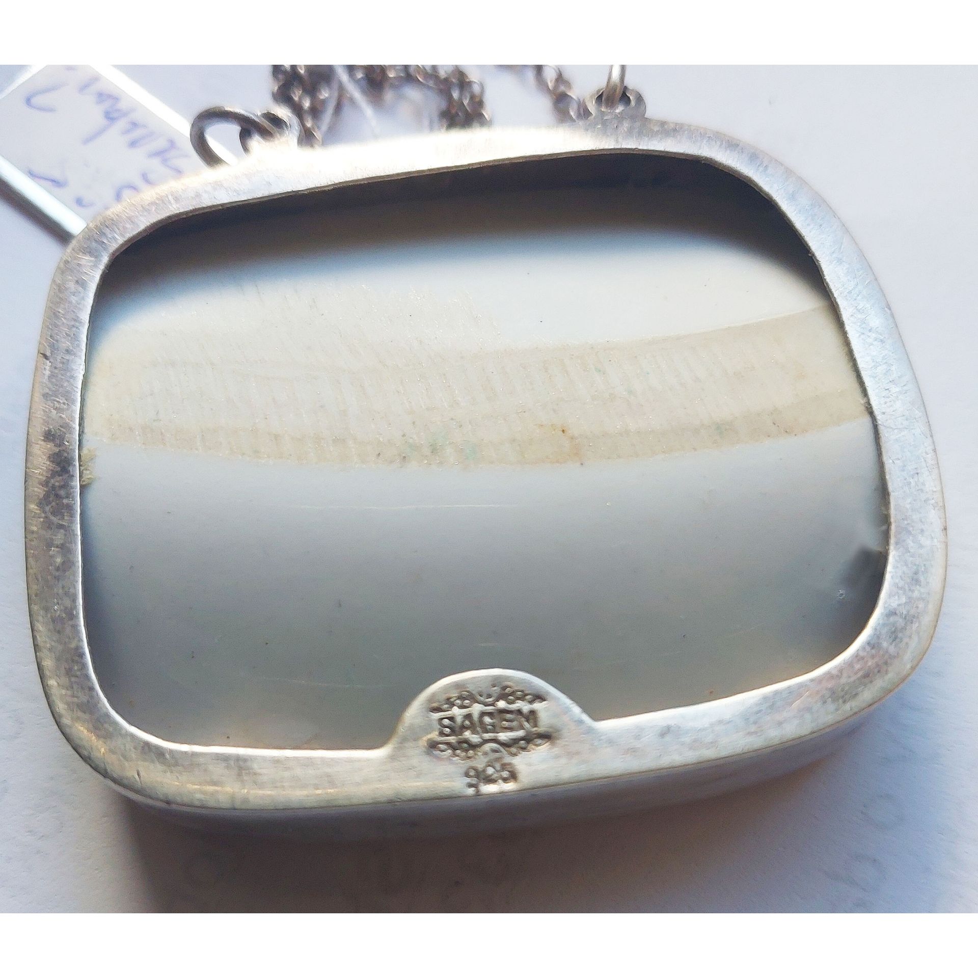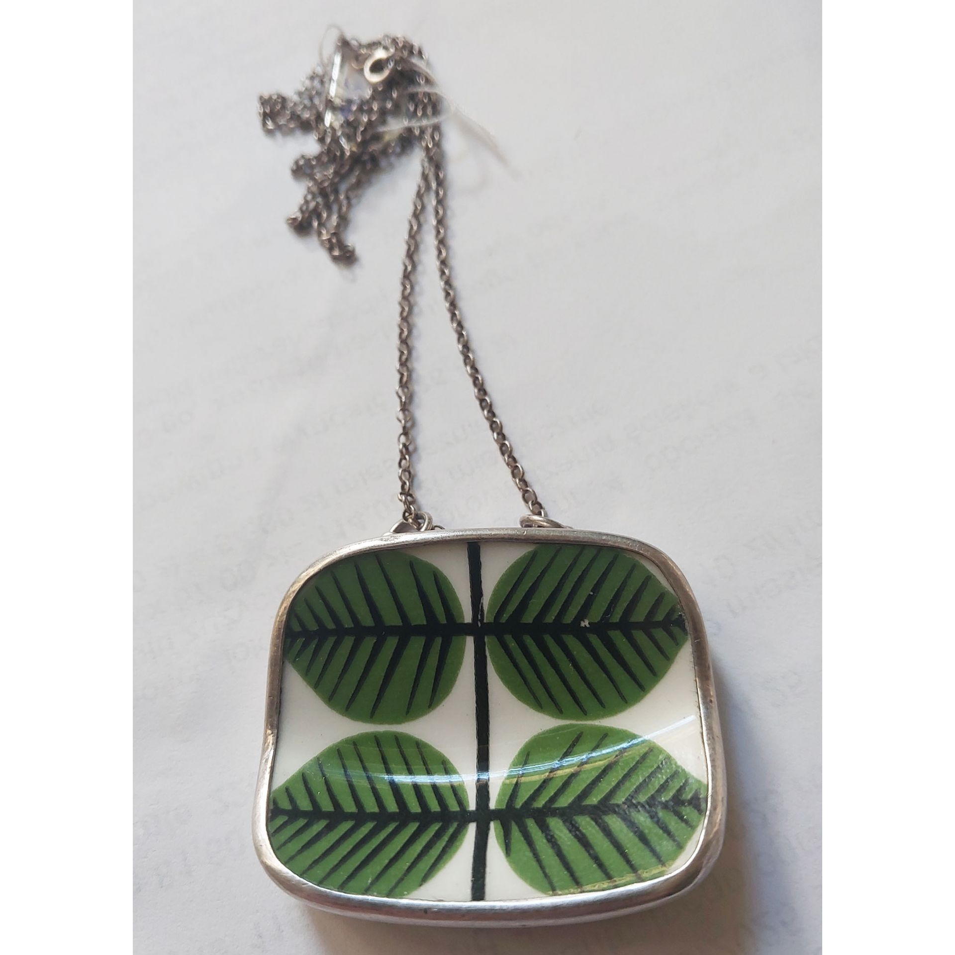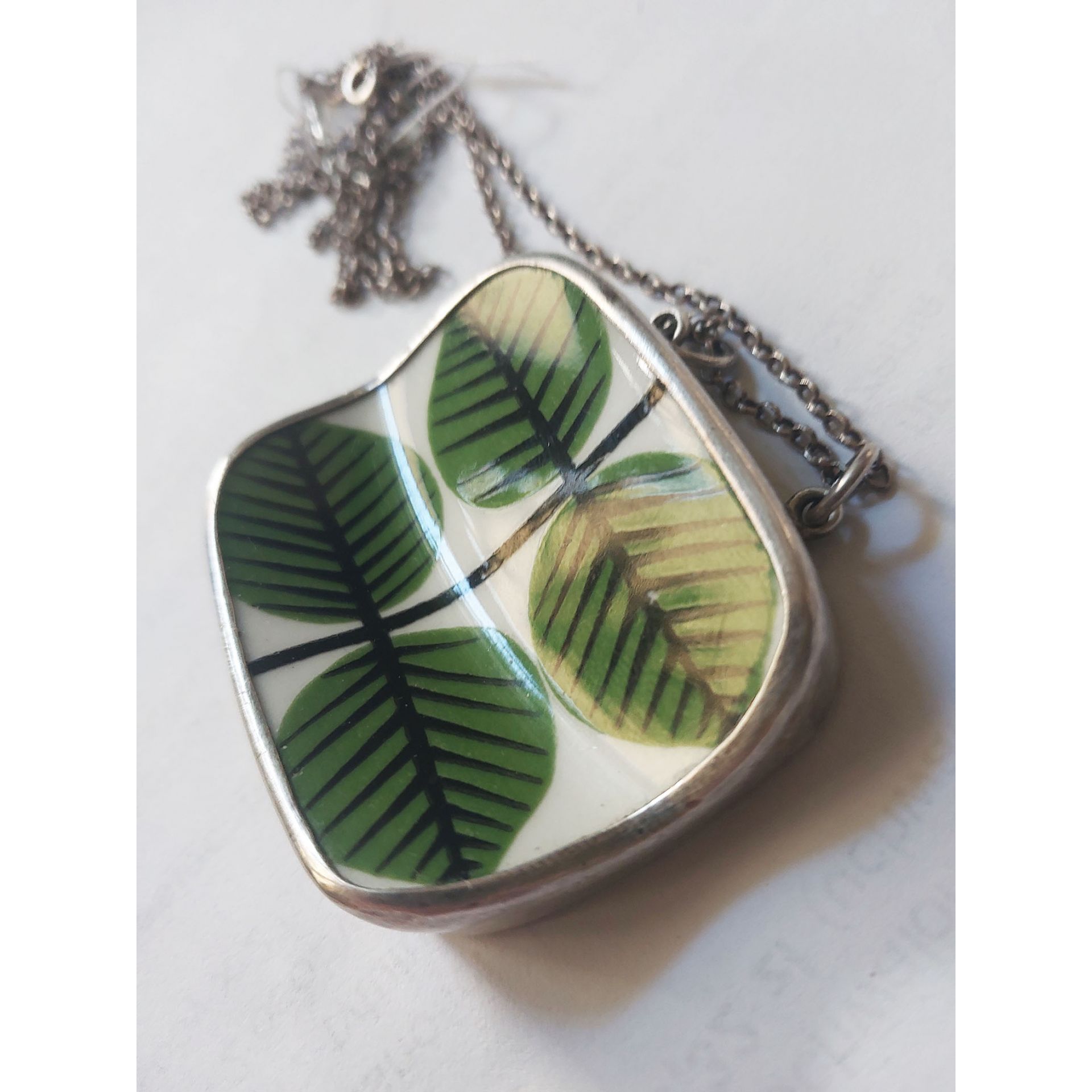 Naszyjnik wykonany ze srebra i przetworzonej porcelany.