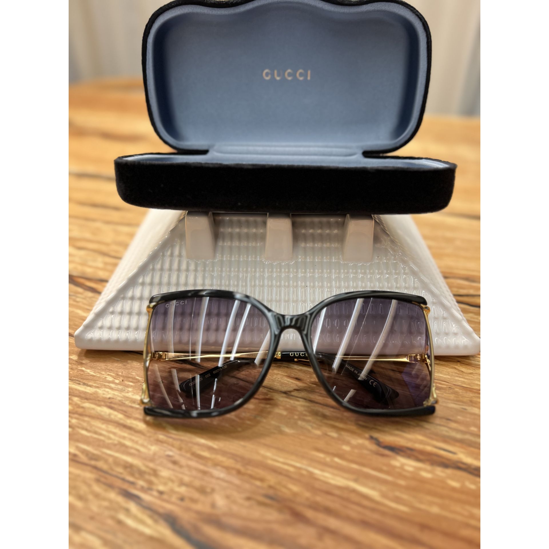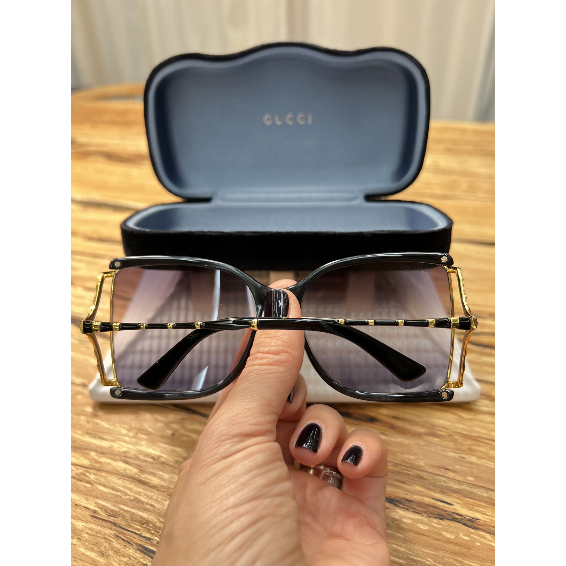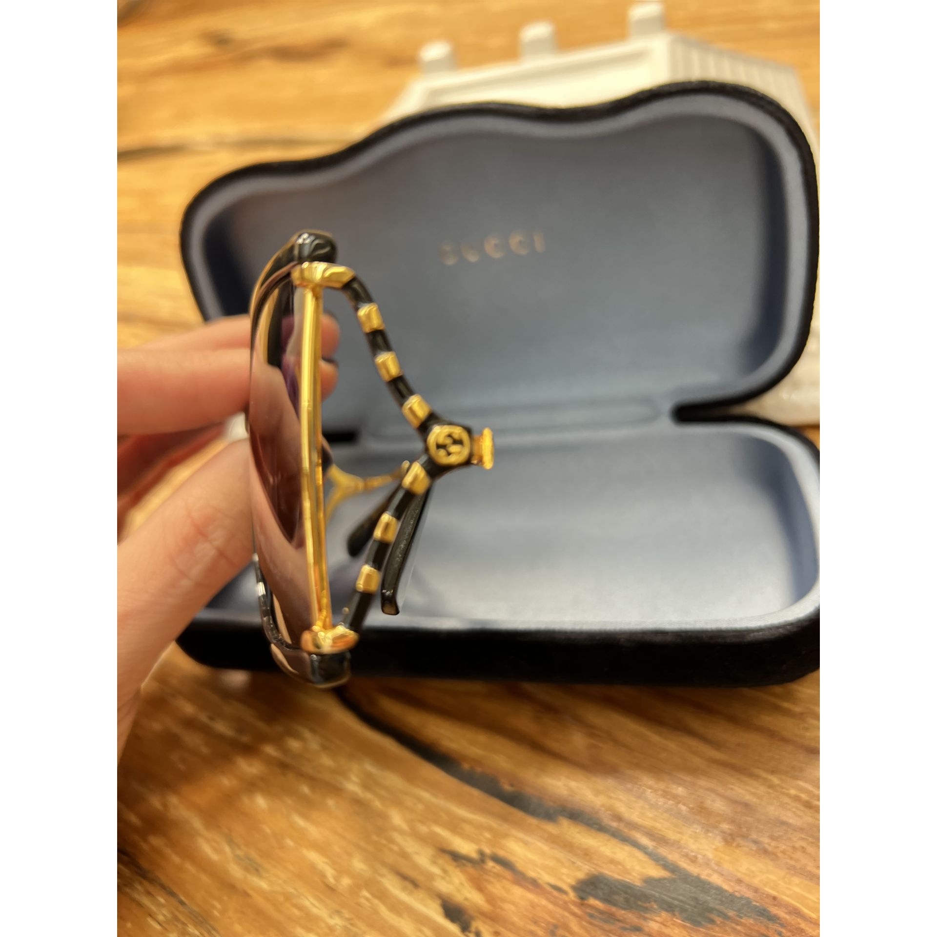 Wyjatkowe czarno-zlote okulary Gucci z niestandardowym wybarwieniem soczewki. Po bokach oraz na zausznikach piekny czarno-zloty wzor. Bardzo impaktowe!