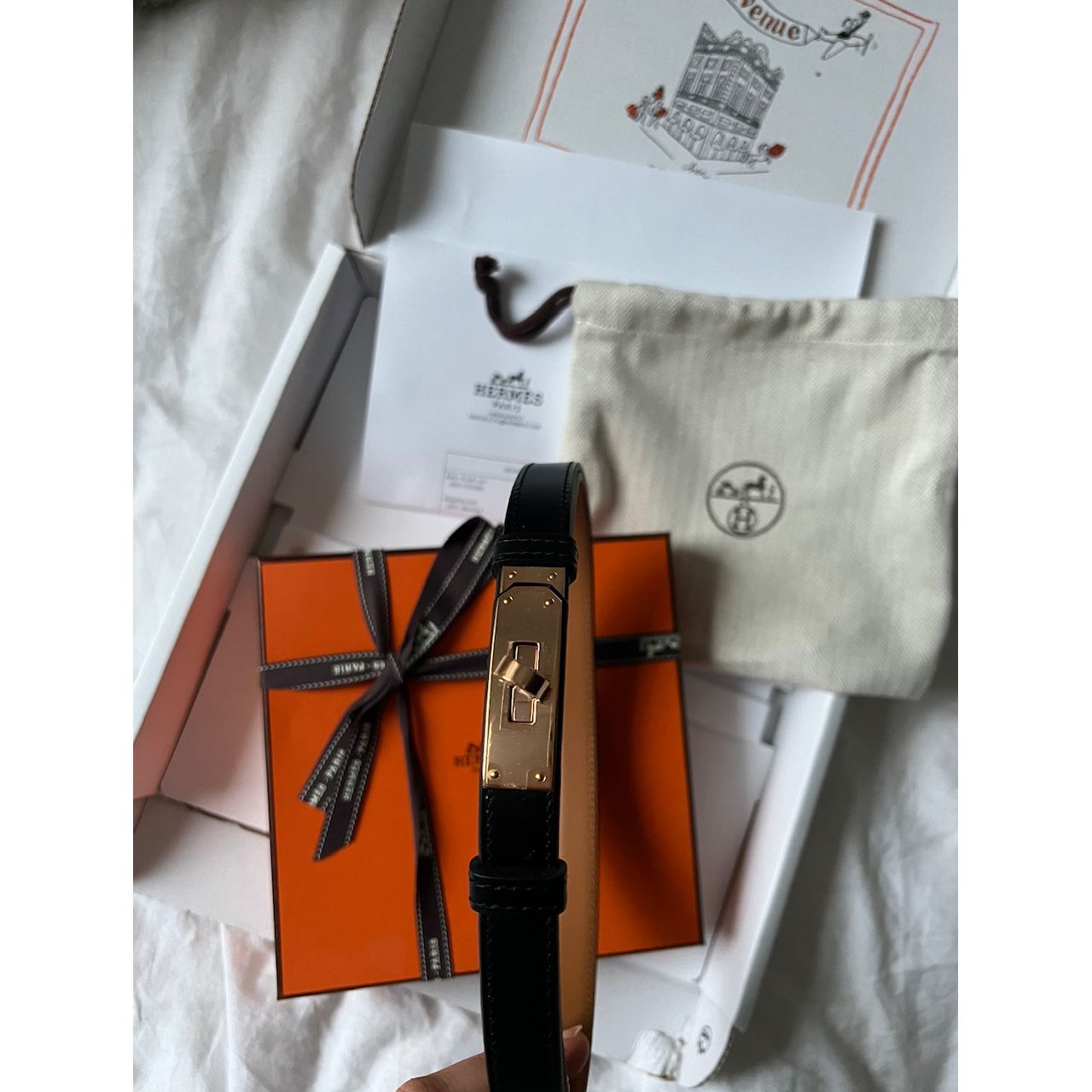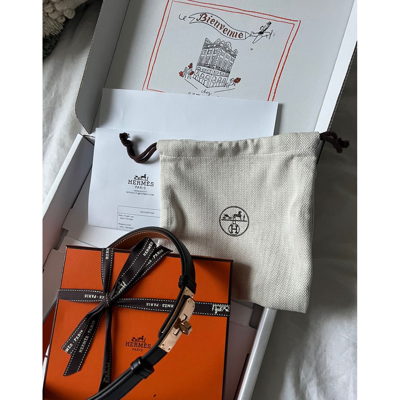 NOWY - Z PUDEŁKIEM, KARTONEM Z HERMES, WORKAMI DO PRZECHOWYWANIA ORAZ RACHUNKIEM POTWIERDZAJĄCYM ORYGINALNOŚĆ.