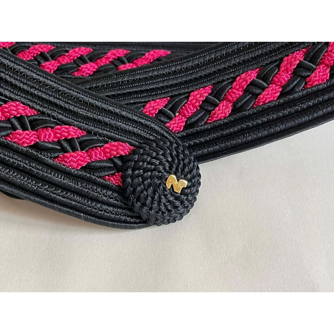 Piękny bardzo efektowny pasek Nina Ricci Paris couture, pleciony czarny kolor i amarant , idealnie pasuje na marynarkę , jak biżuteria .