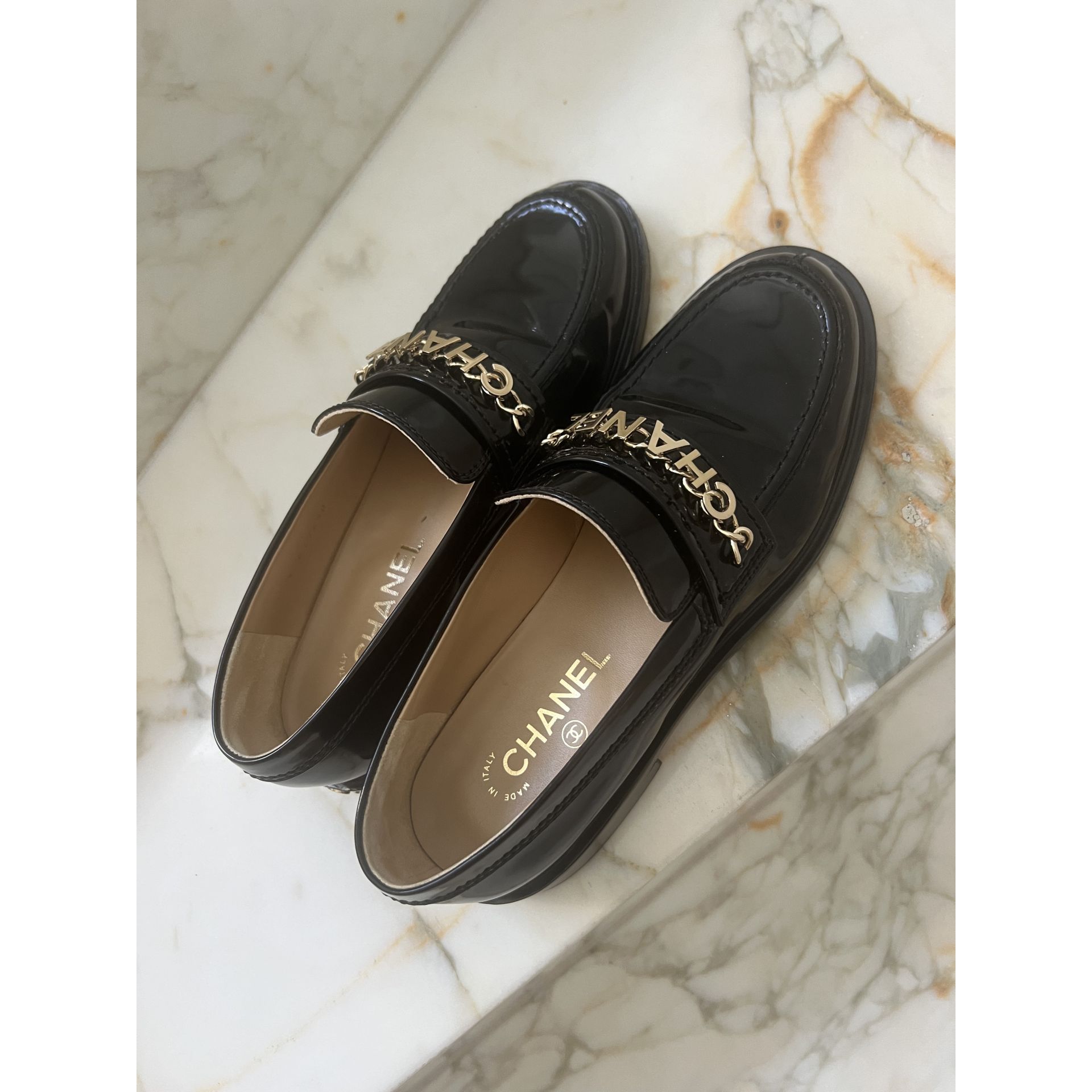 Klasyczne mokasyny od Chanel to uniwersalny model na lata. Idealny w stylizacjach sportowych, casual oraz tych formalnych. Buty ubrane 5x, stan idealny. Wkładki wewnątrz o zapachu nowej skóry. Worek przeciwkurzowy oraz pudełko. Proszę o przemyślane zakupy, ponieważ nie przyjmuję zwrotów