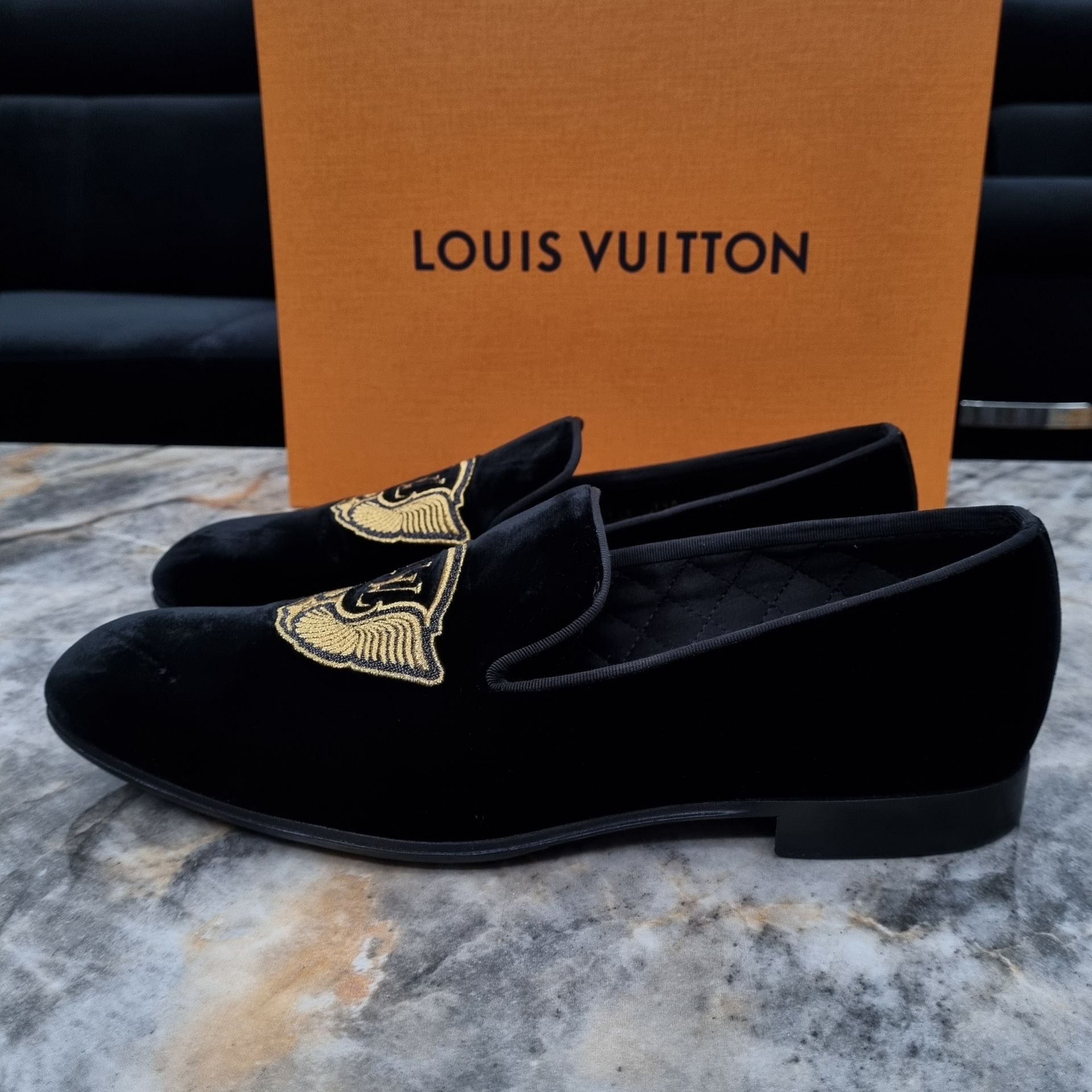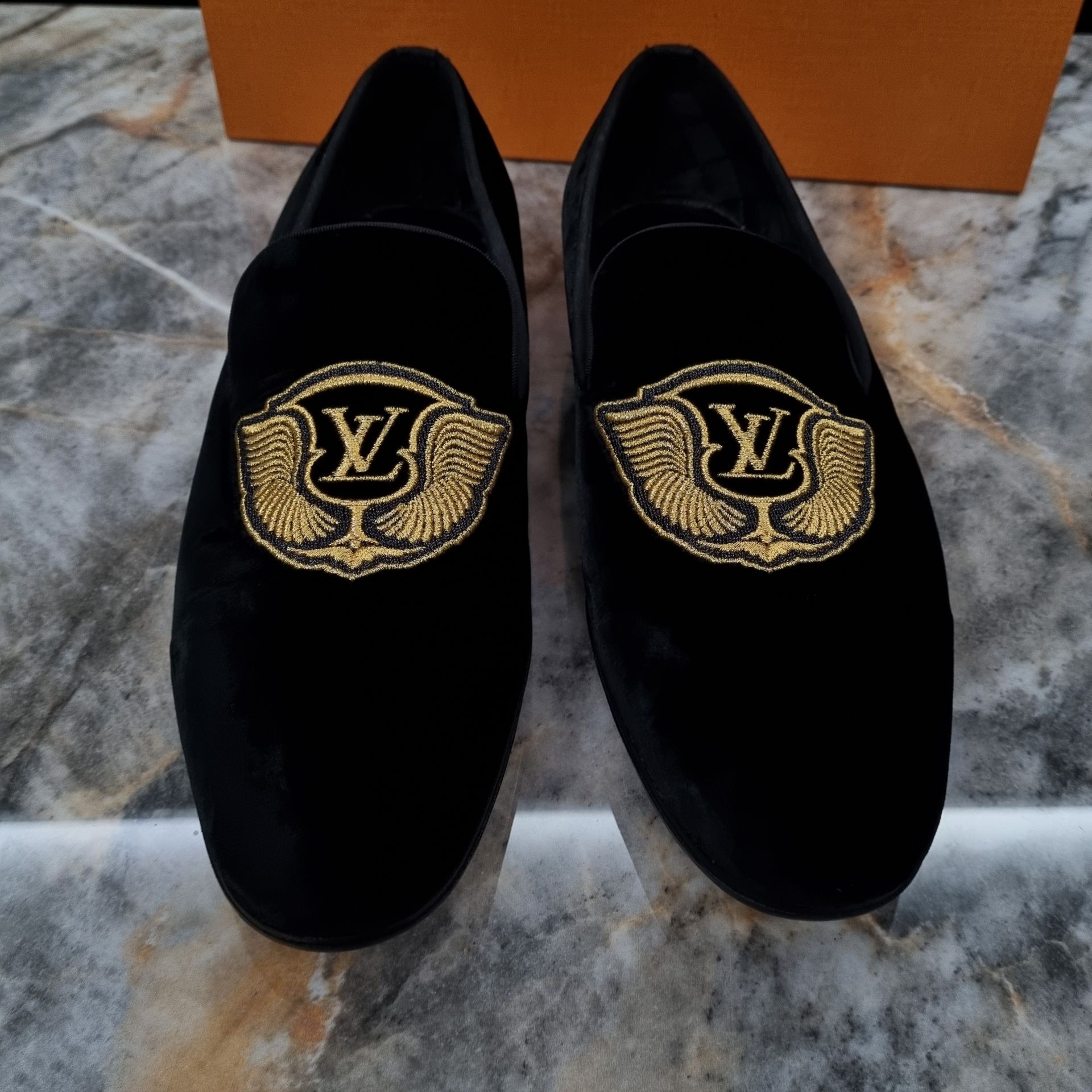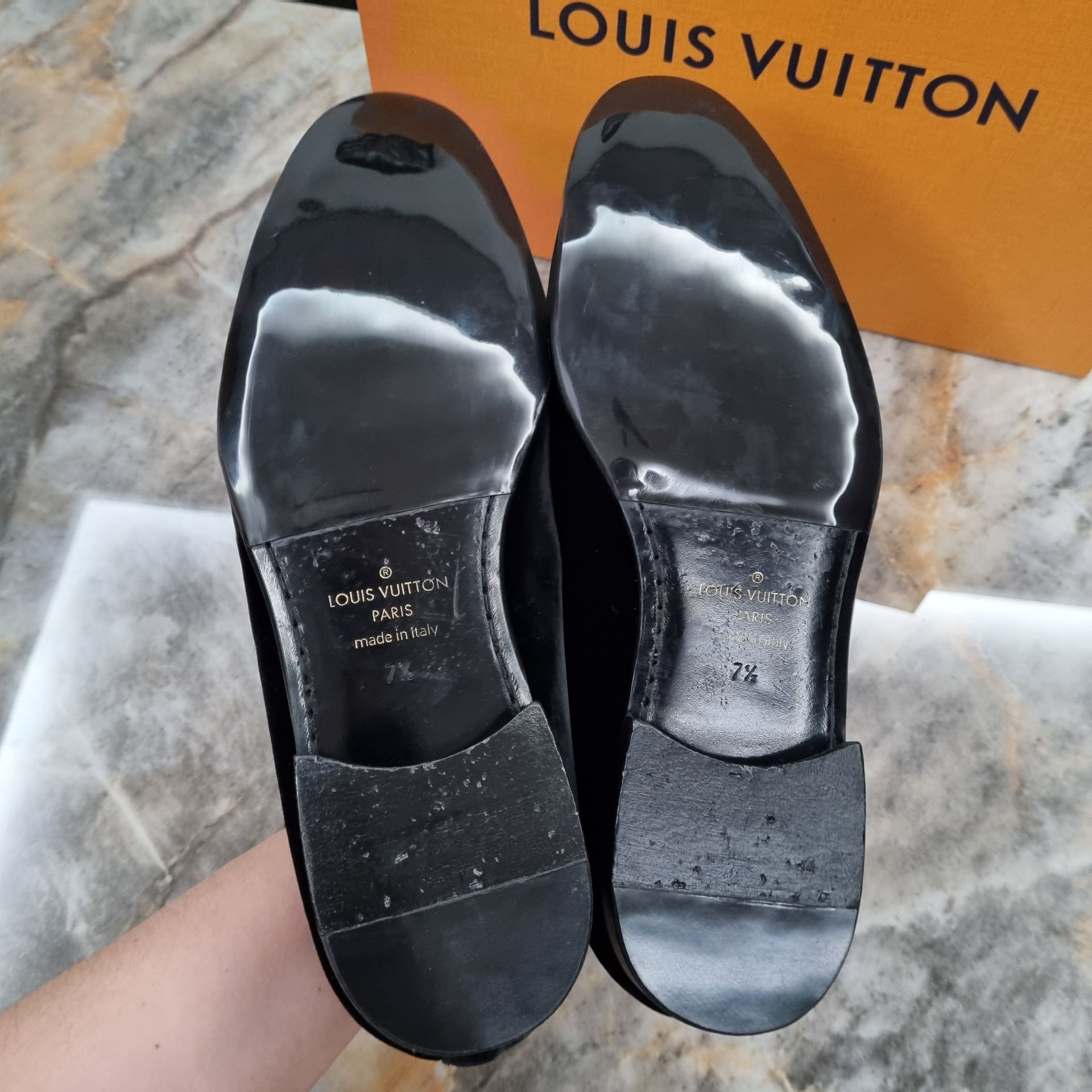 Piękne buty loafersy Louis Vuitton welurowe. Stan bardzo dobry. Rozmiar 7,5G czyli 41,5. Proszę o przemyślane zakupy, ponieważ nie przyjmuje zwrotów.