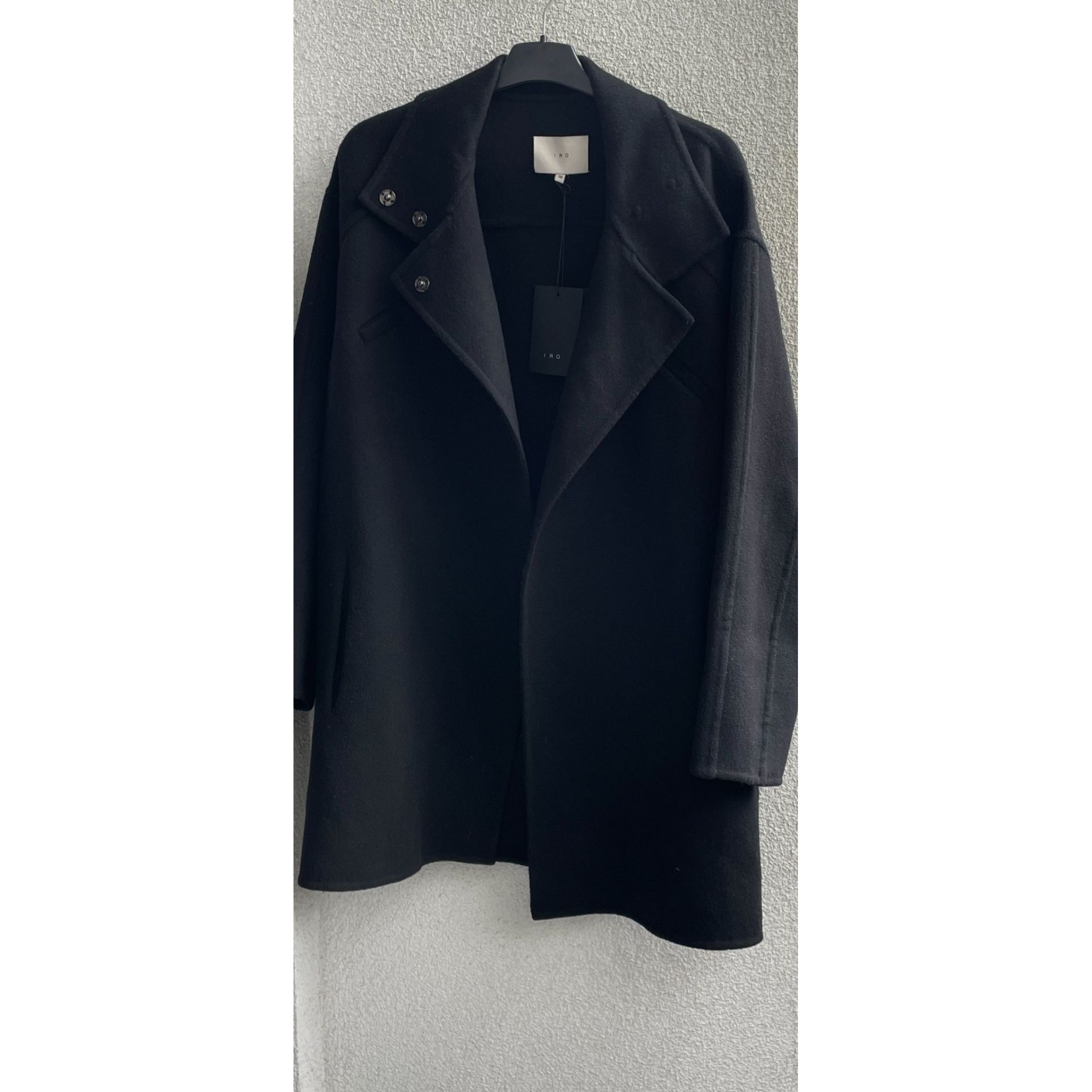Nowy Płaszcz IRO ,czarny, 100% wełna , bez podszewki , rozmiar 36 ale fason oversize.