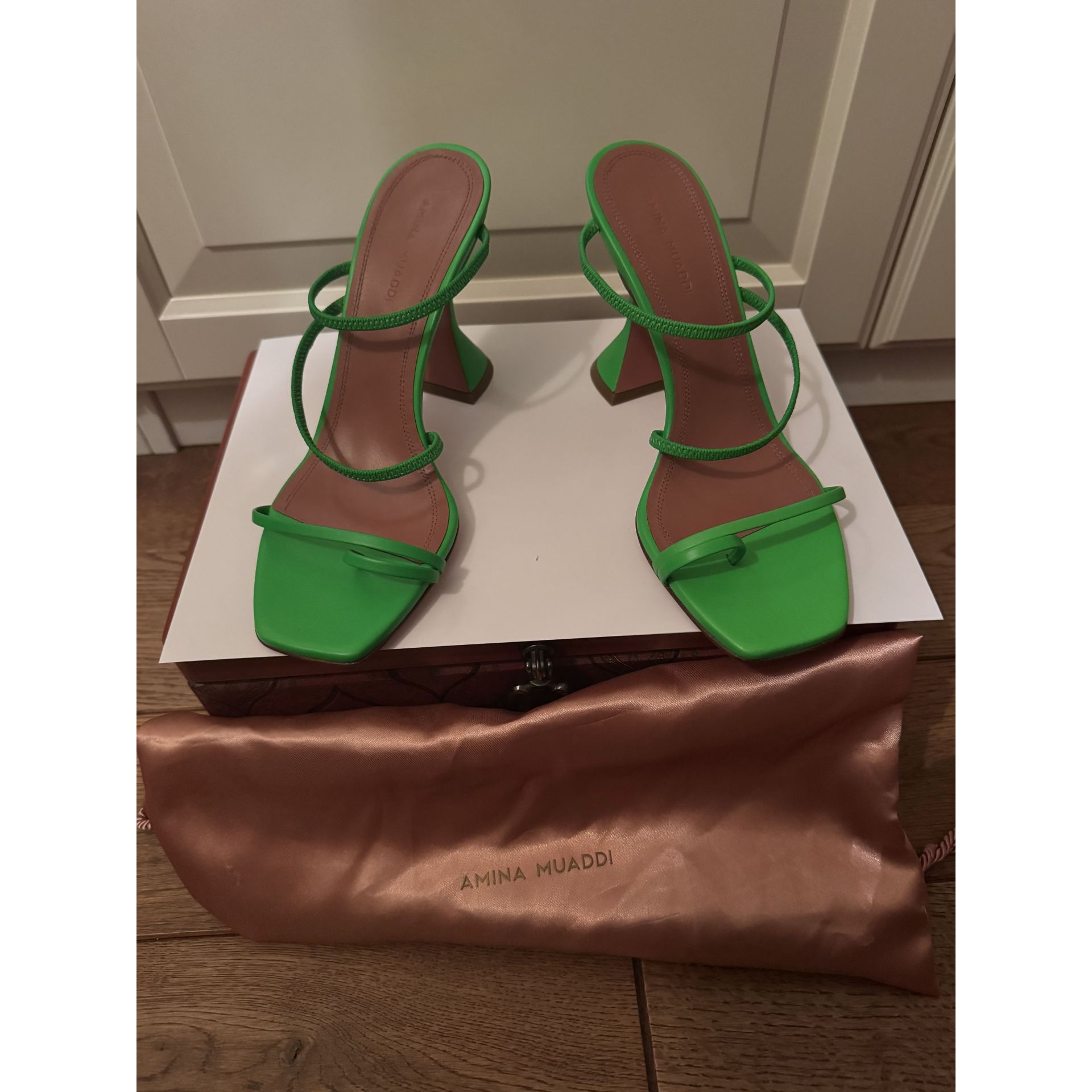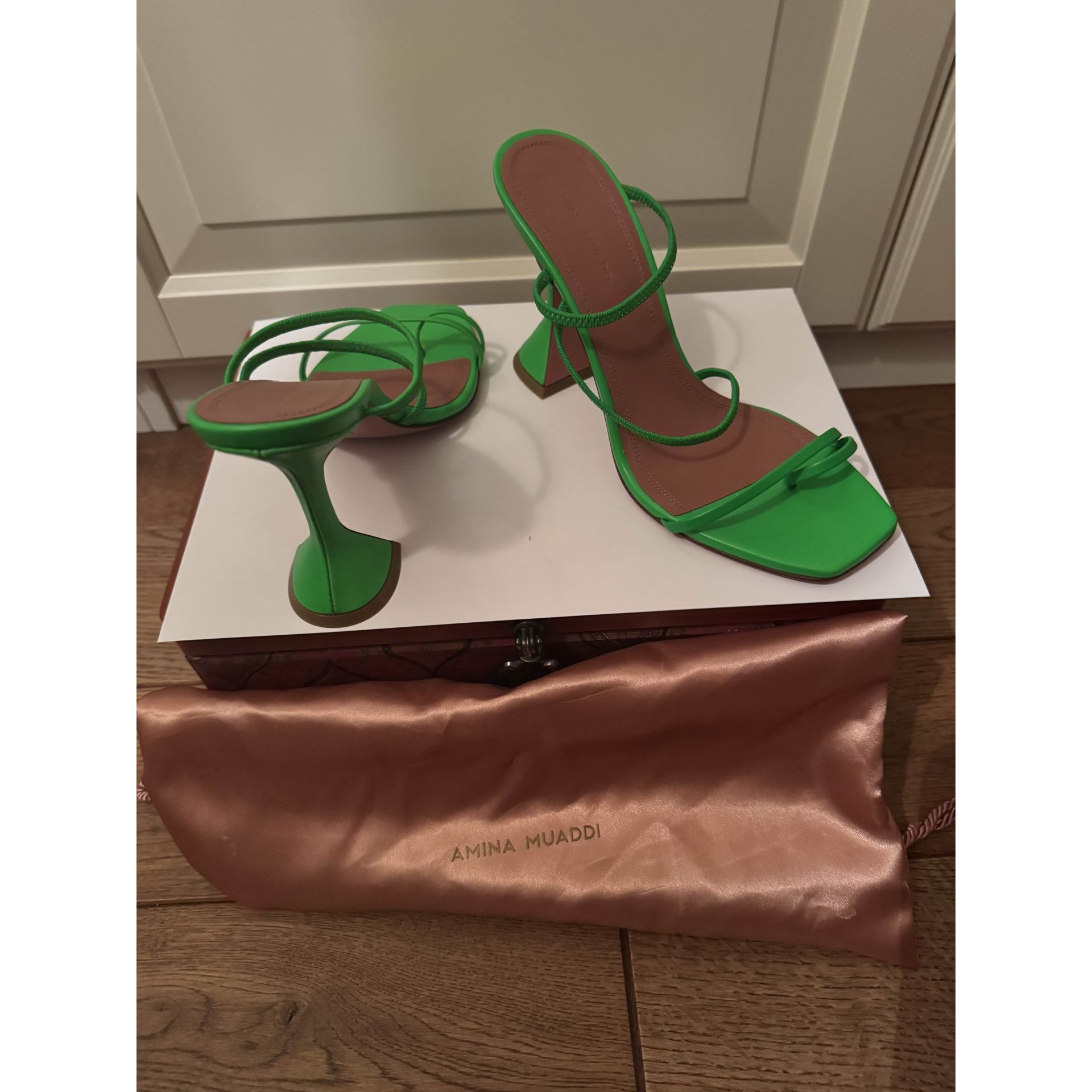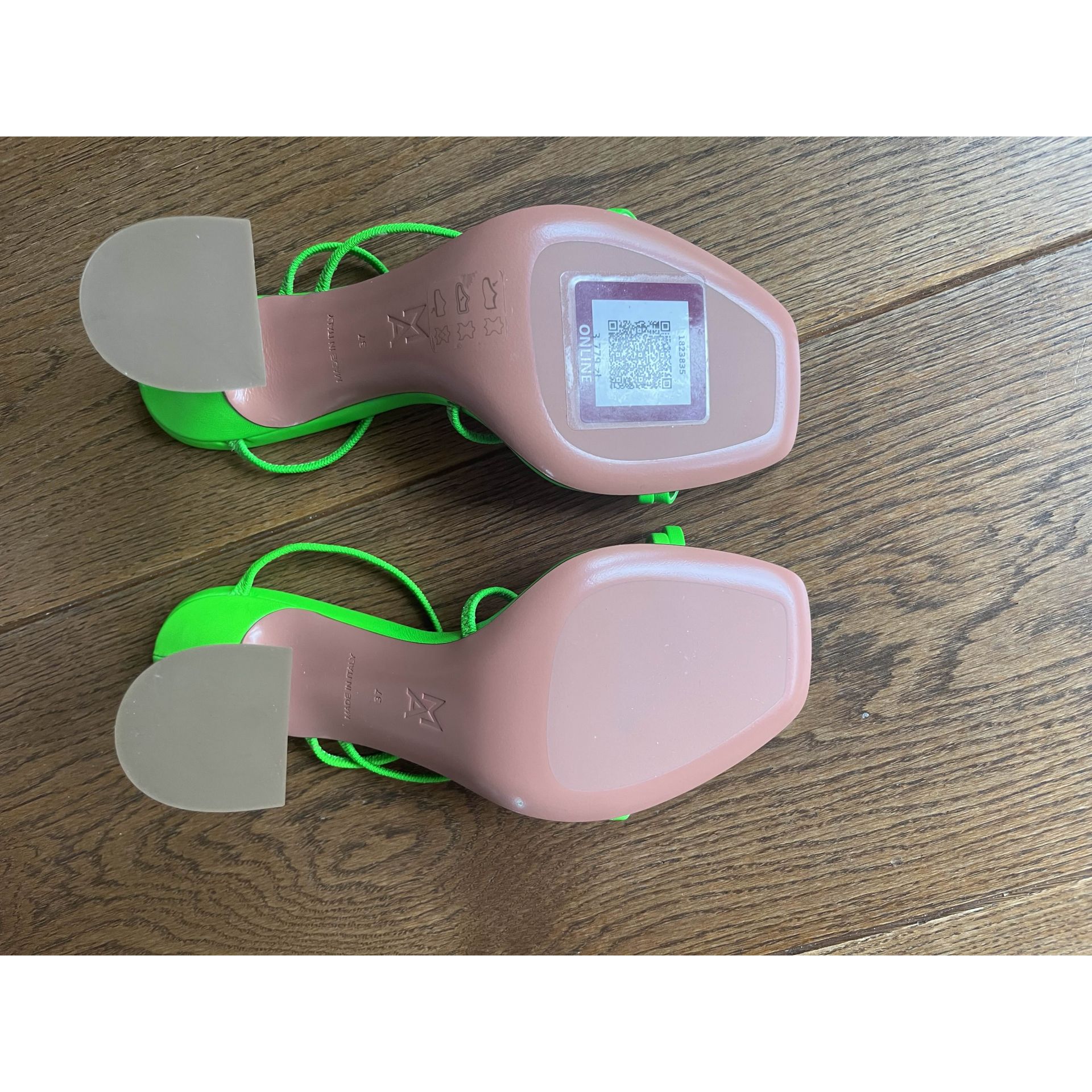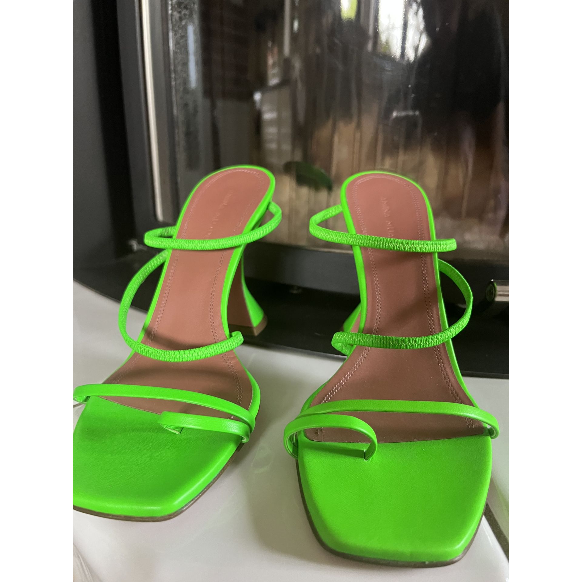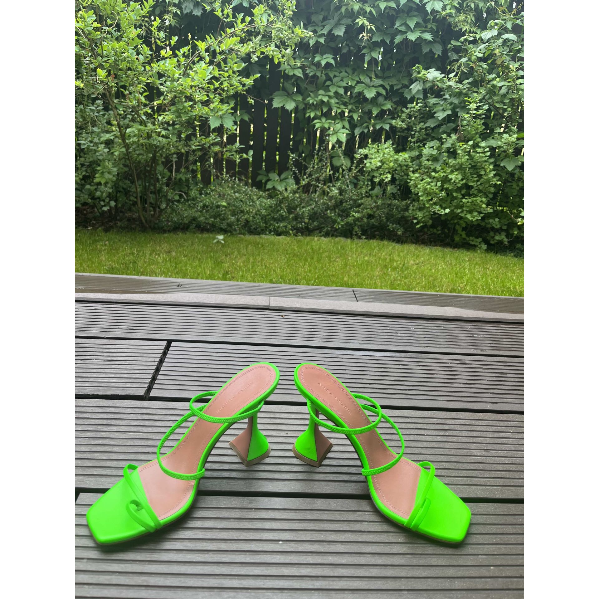 Sandały martini (martini heel) w jaskrawym zielonym kolorze, NOWE, kolekcja limitowana, kupione na Moliera 2 w Warszawie, cena i kod na podeszwie. Produkt niszowy. Proszę o przemyślane zakupy ponieważ nie przyjmuję zwrotów.