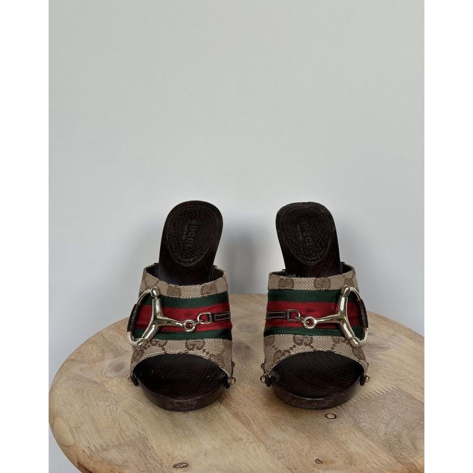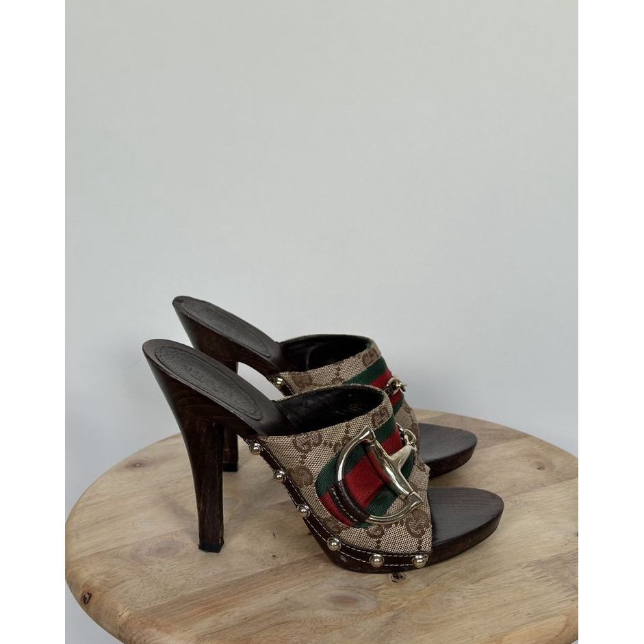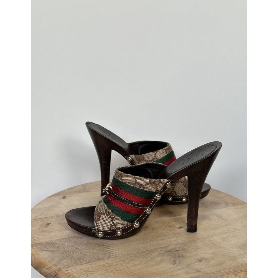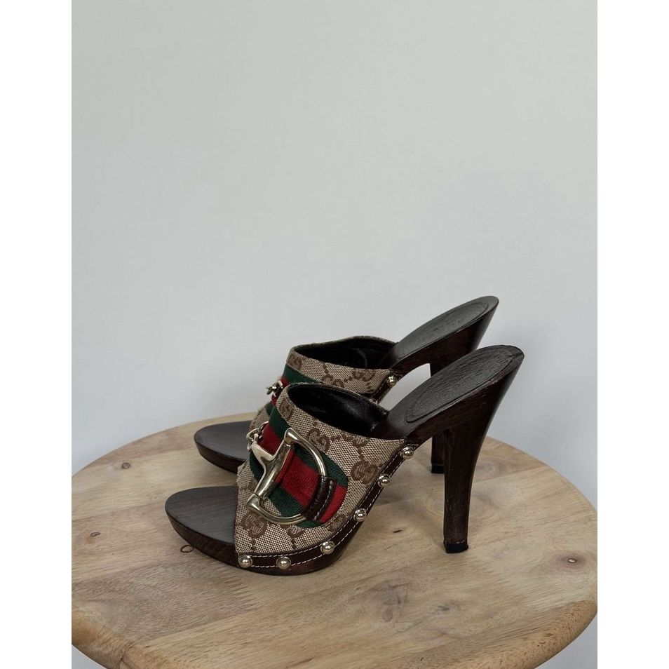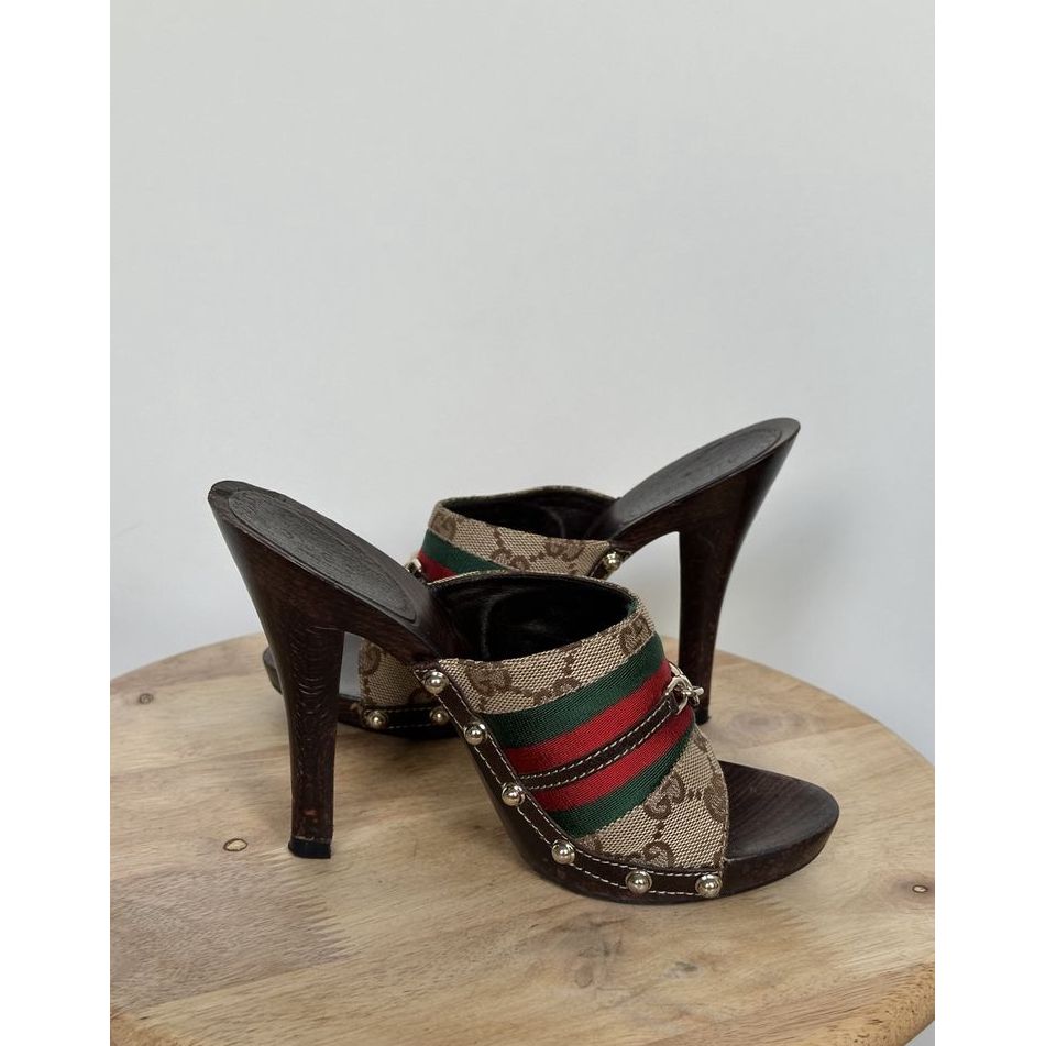 Gucci monogram GG chodaki / sandały na obcasie z woreczkiem ochronnym