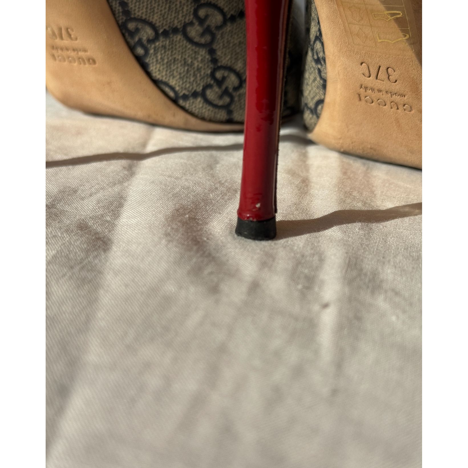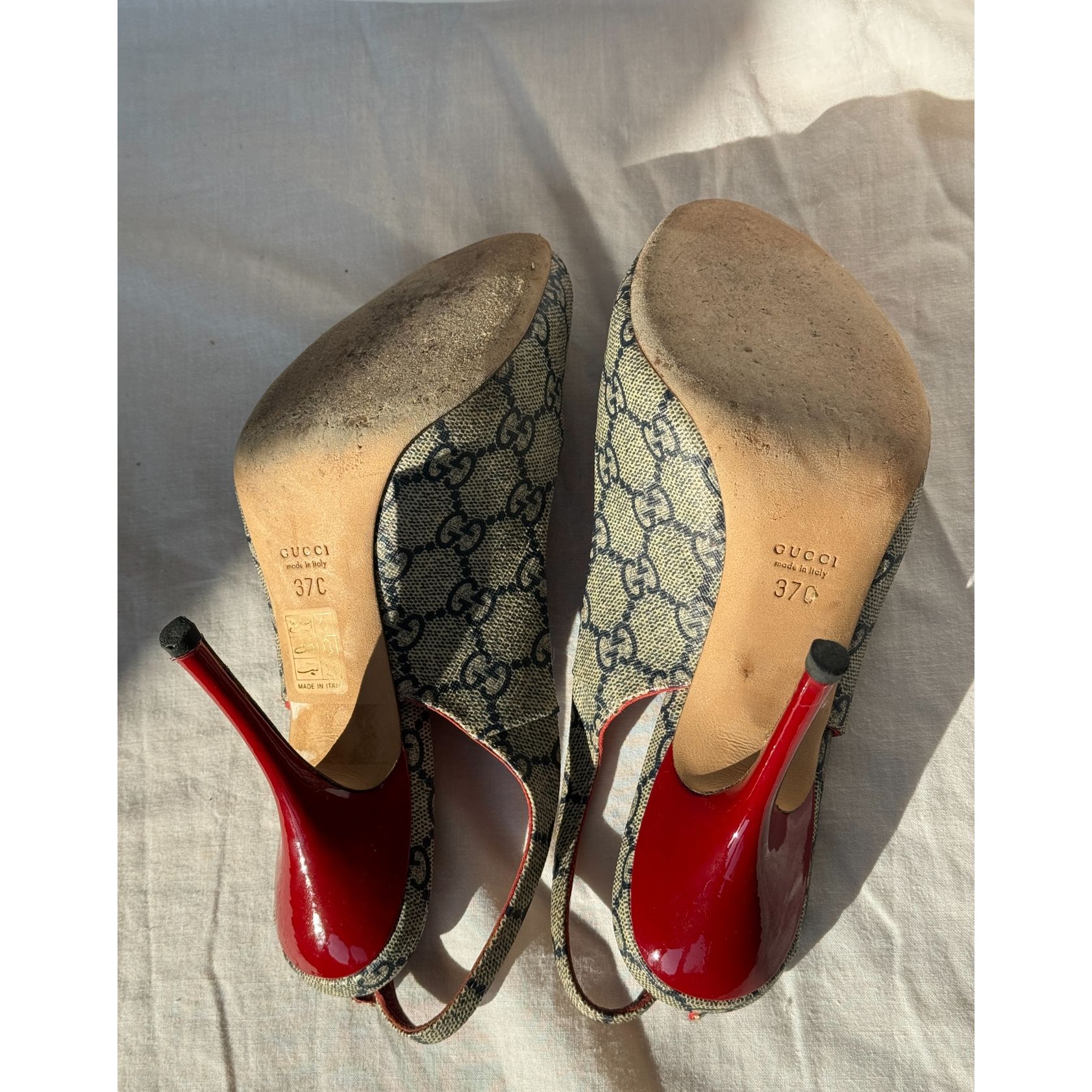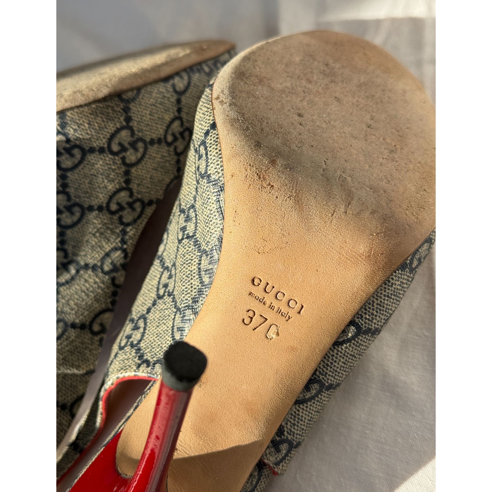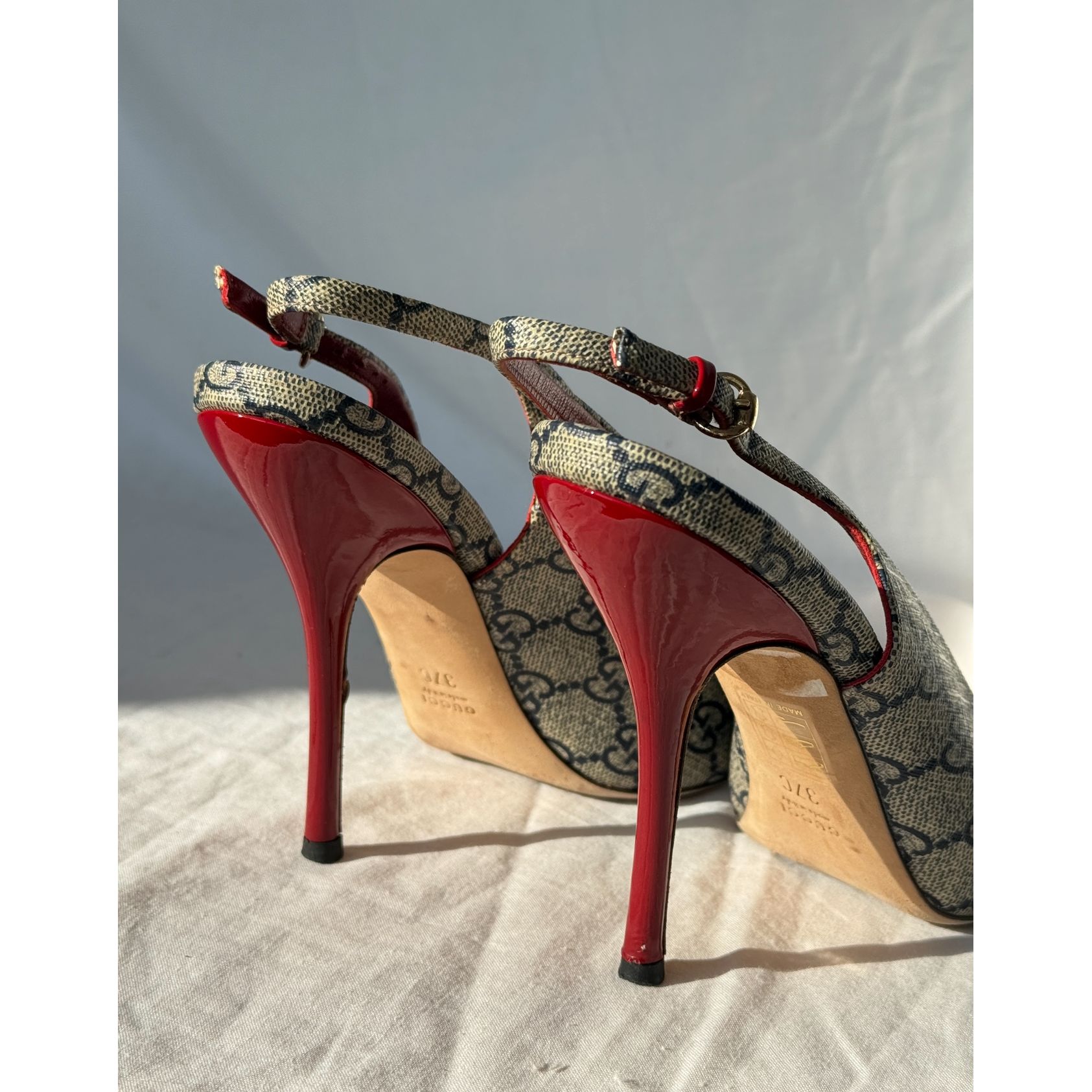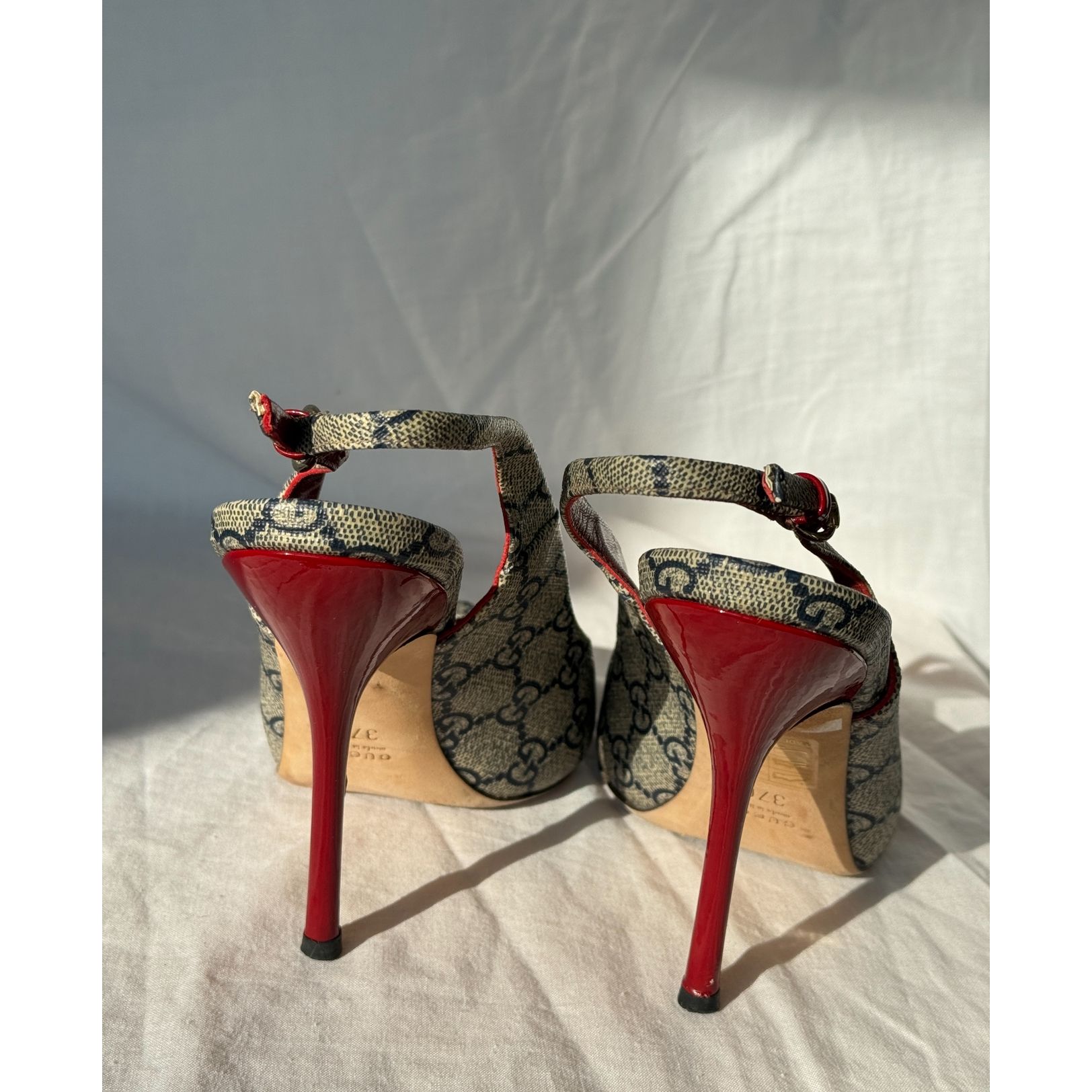 Sandałki Gucci w monogram z motywem róży, odkryte palce i pięty. Przepięknie wyglądają na nodze, bardzo kobiece.