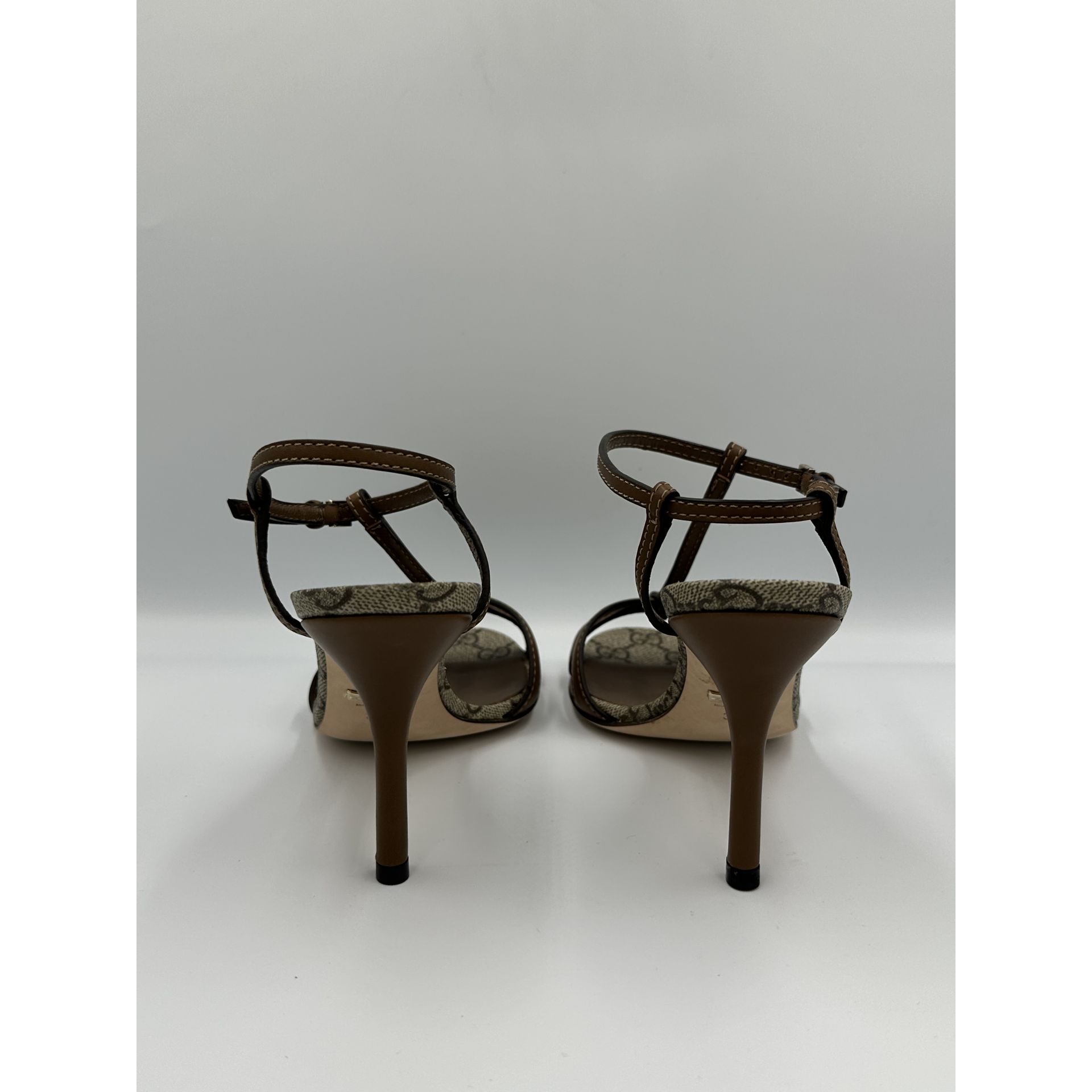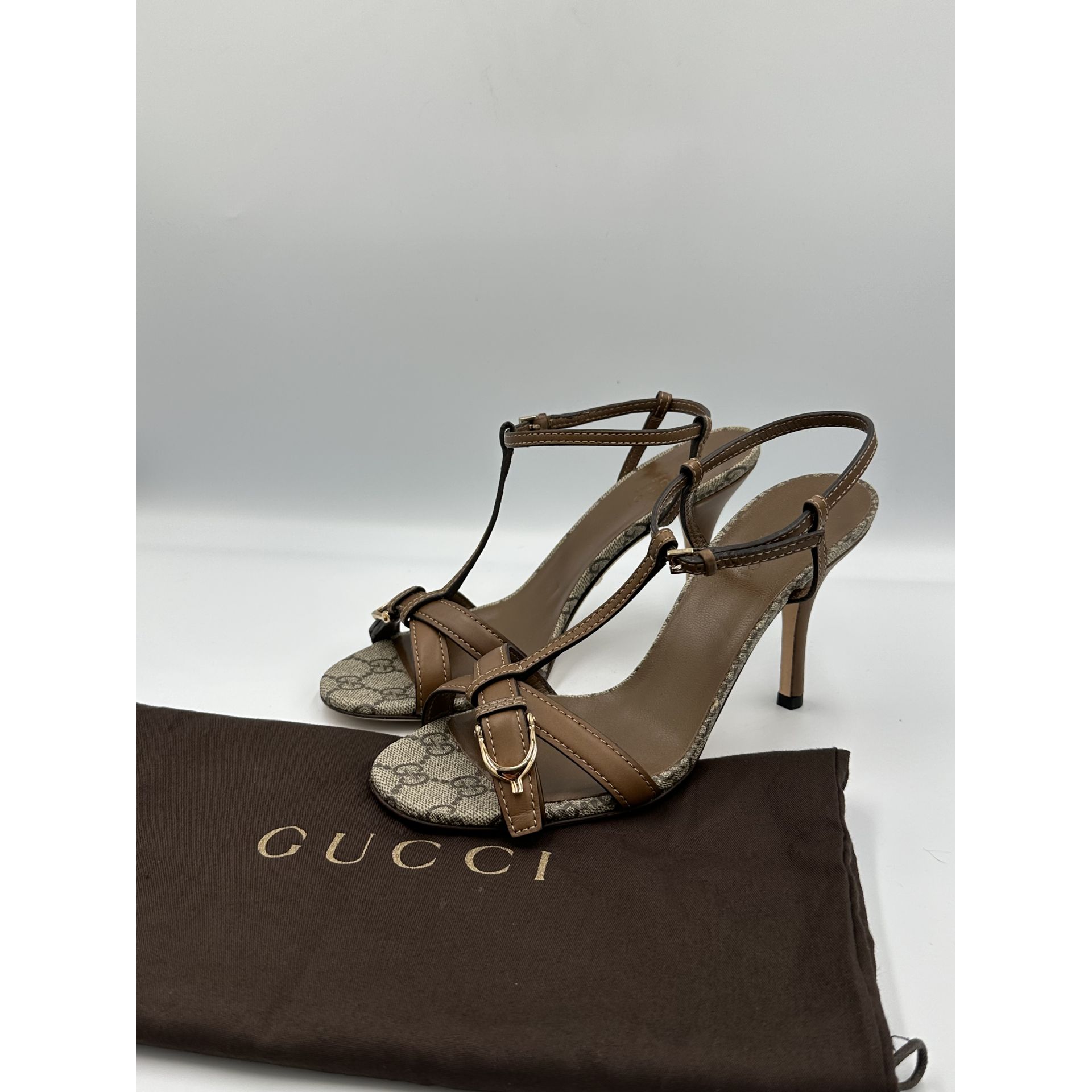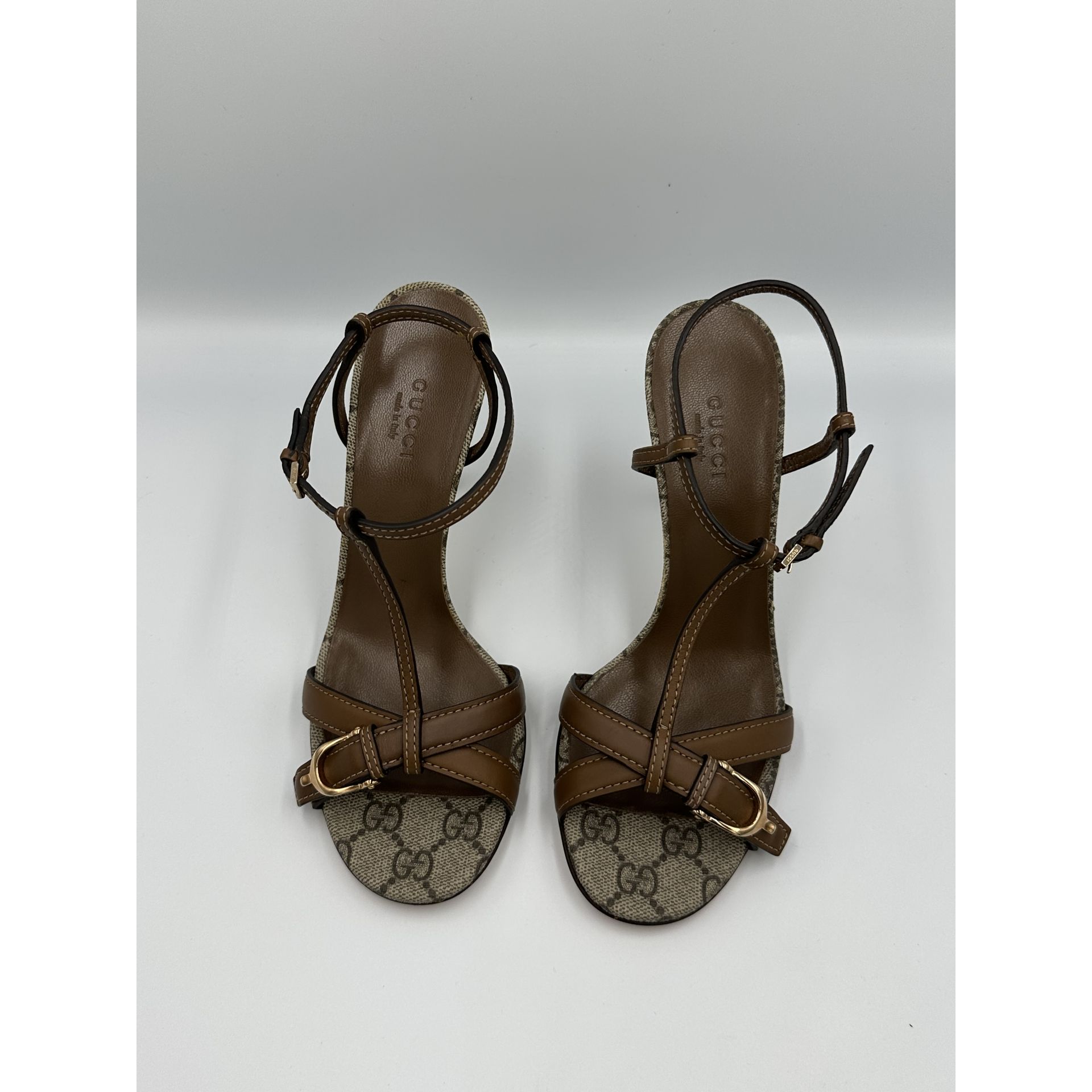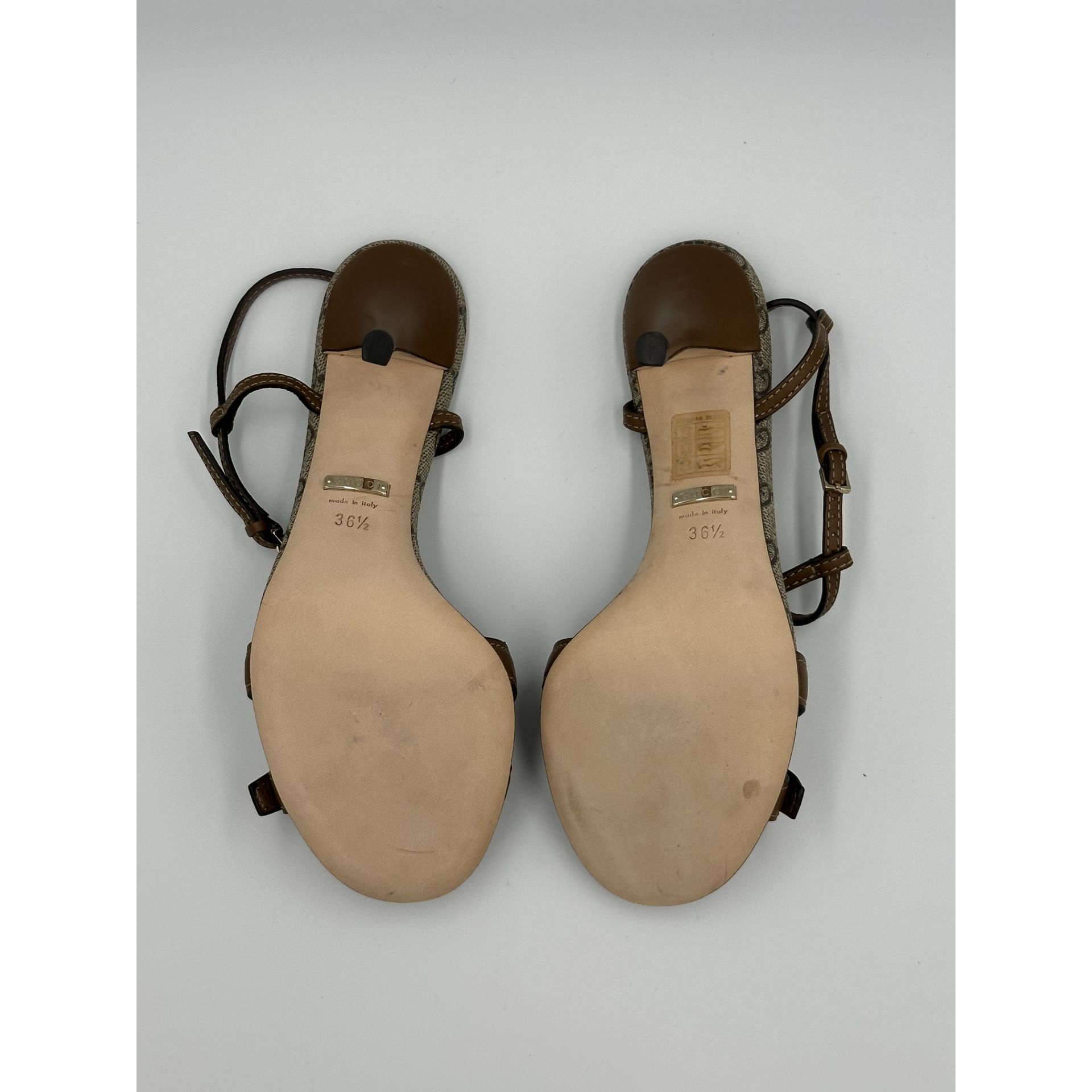 Sandały na obcasie Gucci skórzane, w klasyczny monogram GG, w zestawie z woreczkiem przeciwkurzowym.