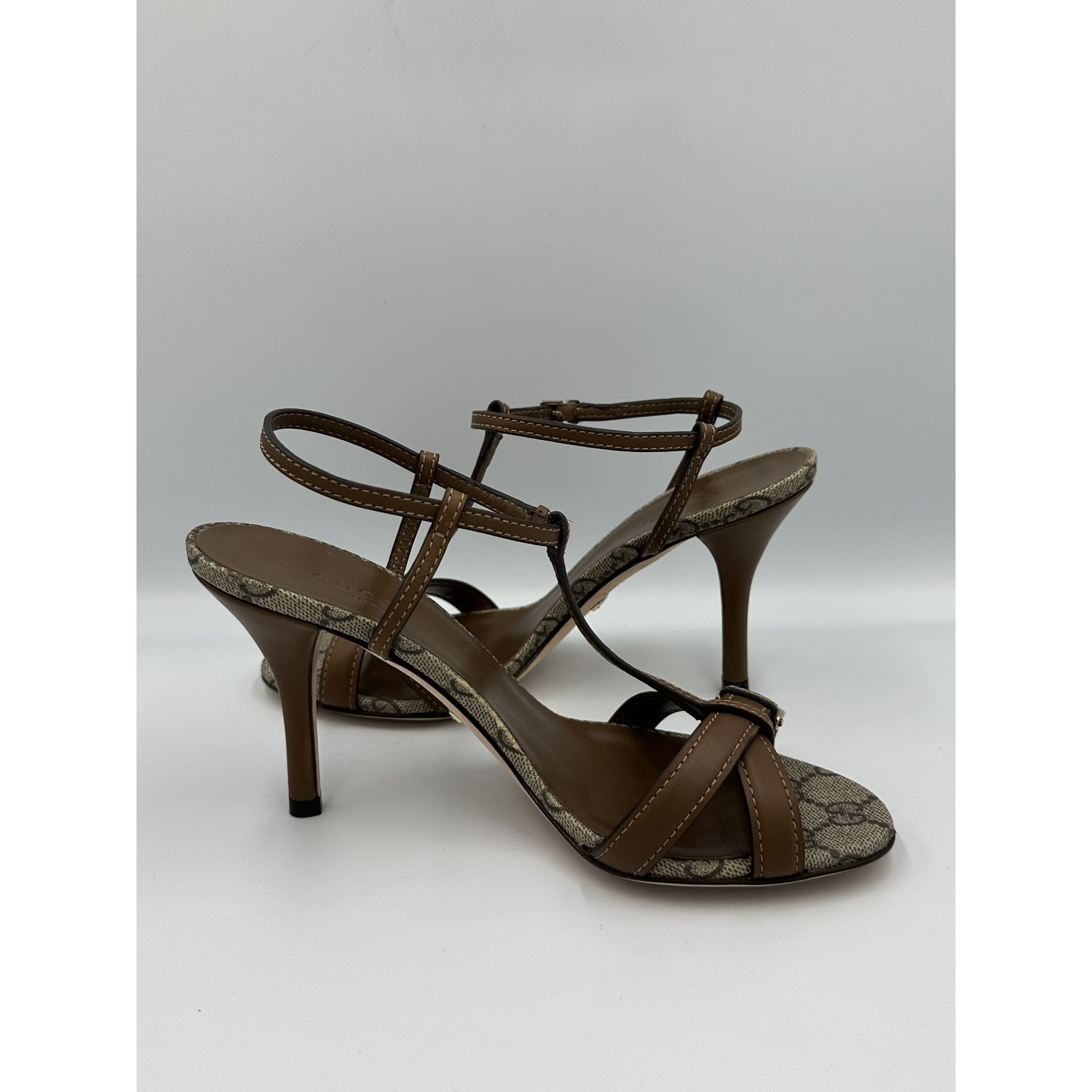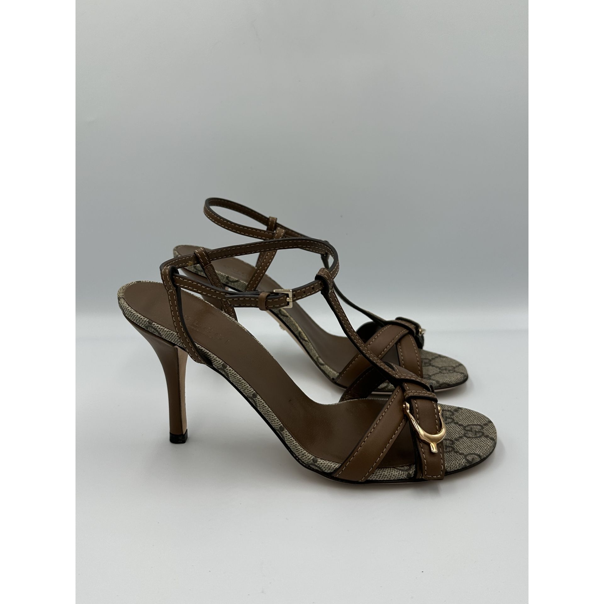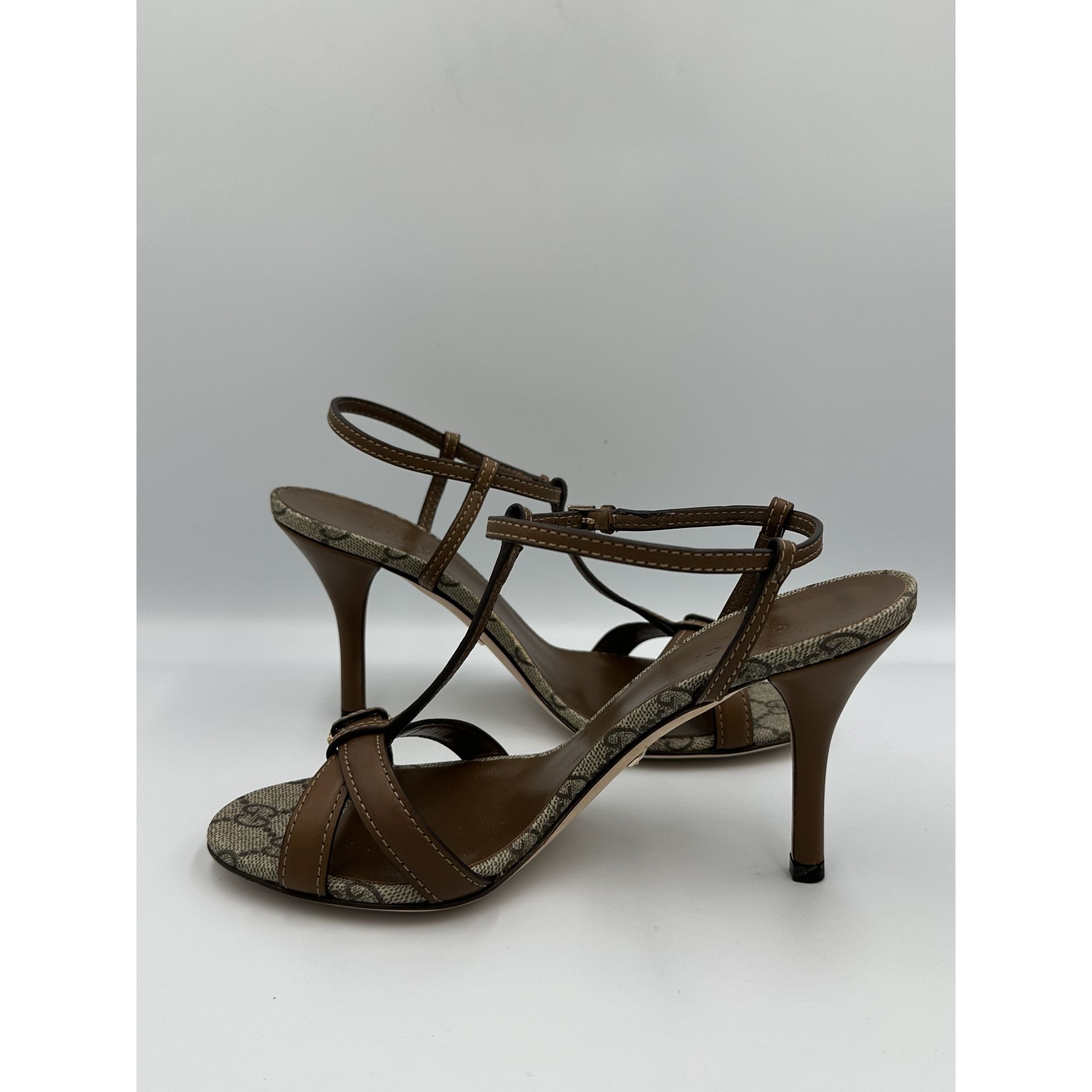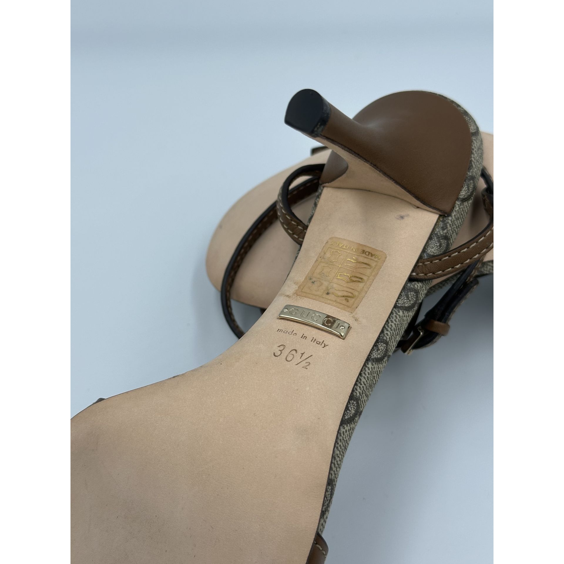 Sandały na obcasie Gucci skórzane, w klasyczny monogram GG, w zestawie z woreczkiem przeciwkurzowym.