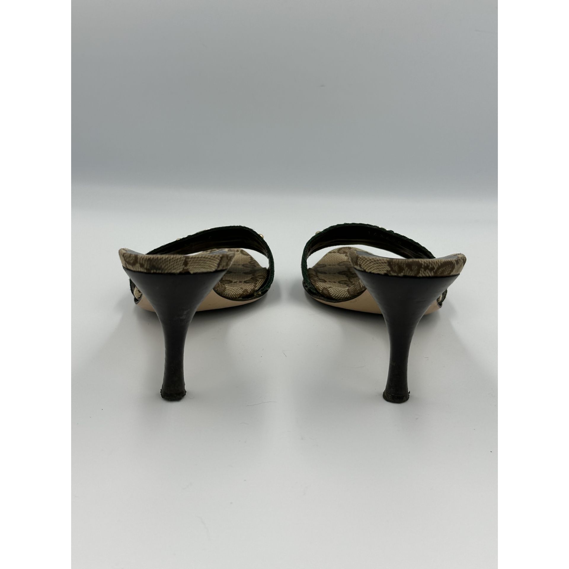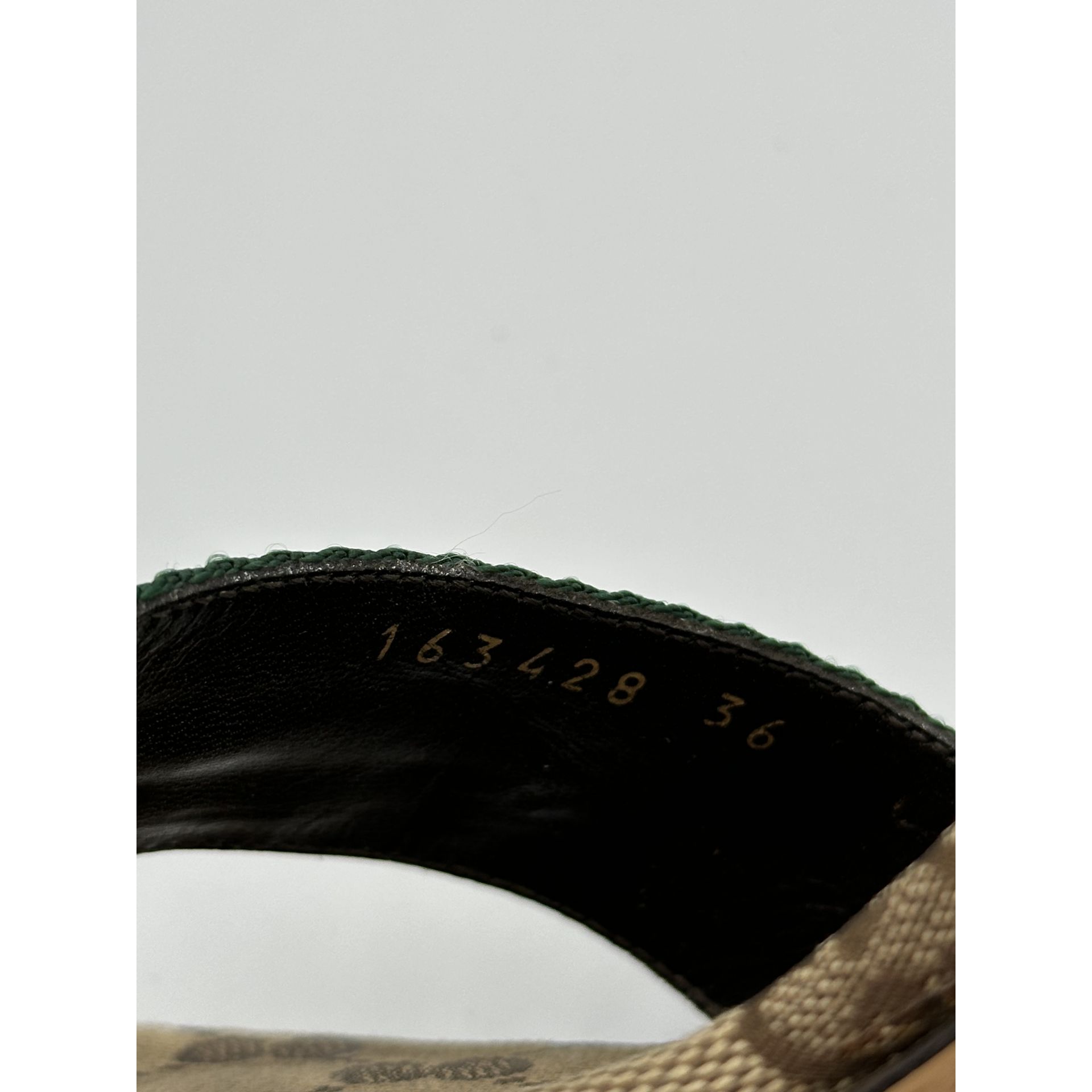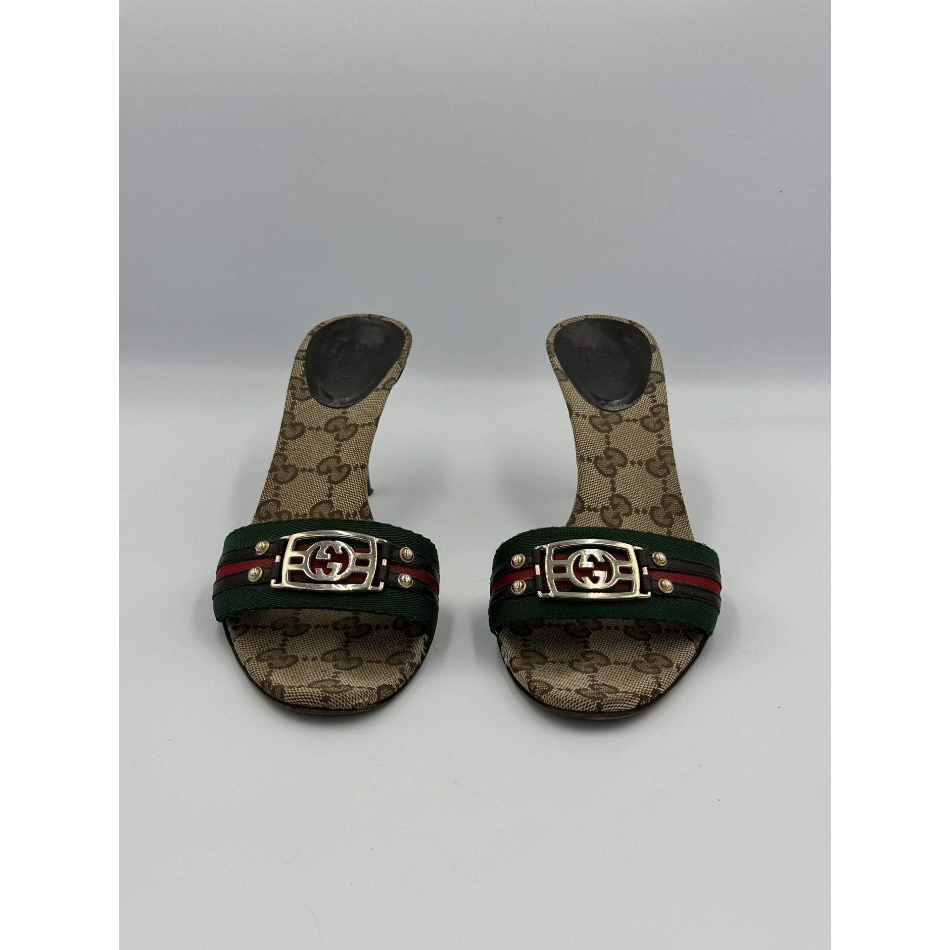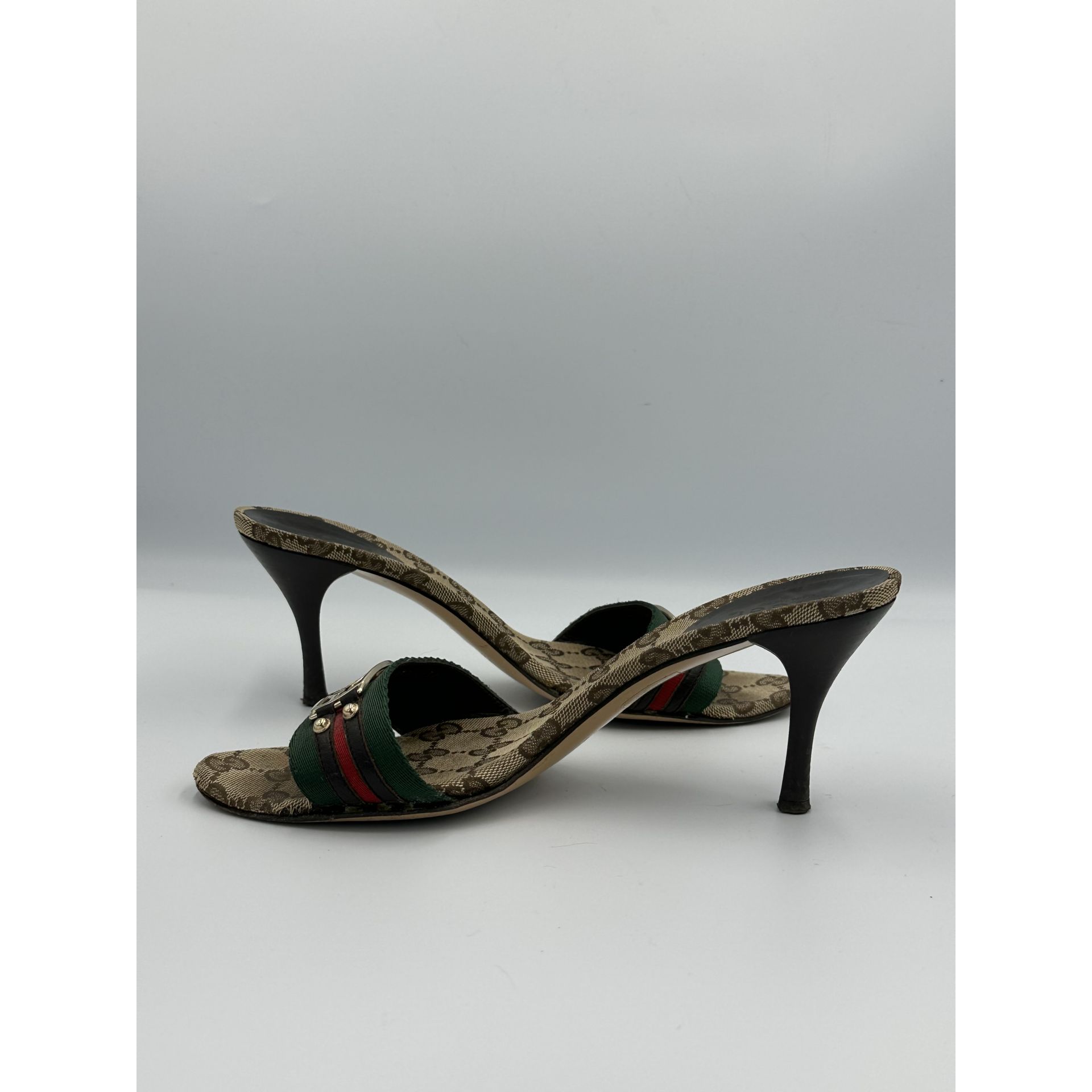 Sandały na obcasie Gucci z tkaniny, ozdobione monogramem i logo GG, w zestawie z oryginalnym pudełkiem