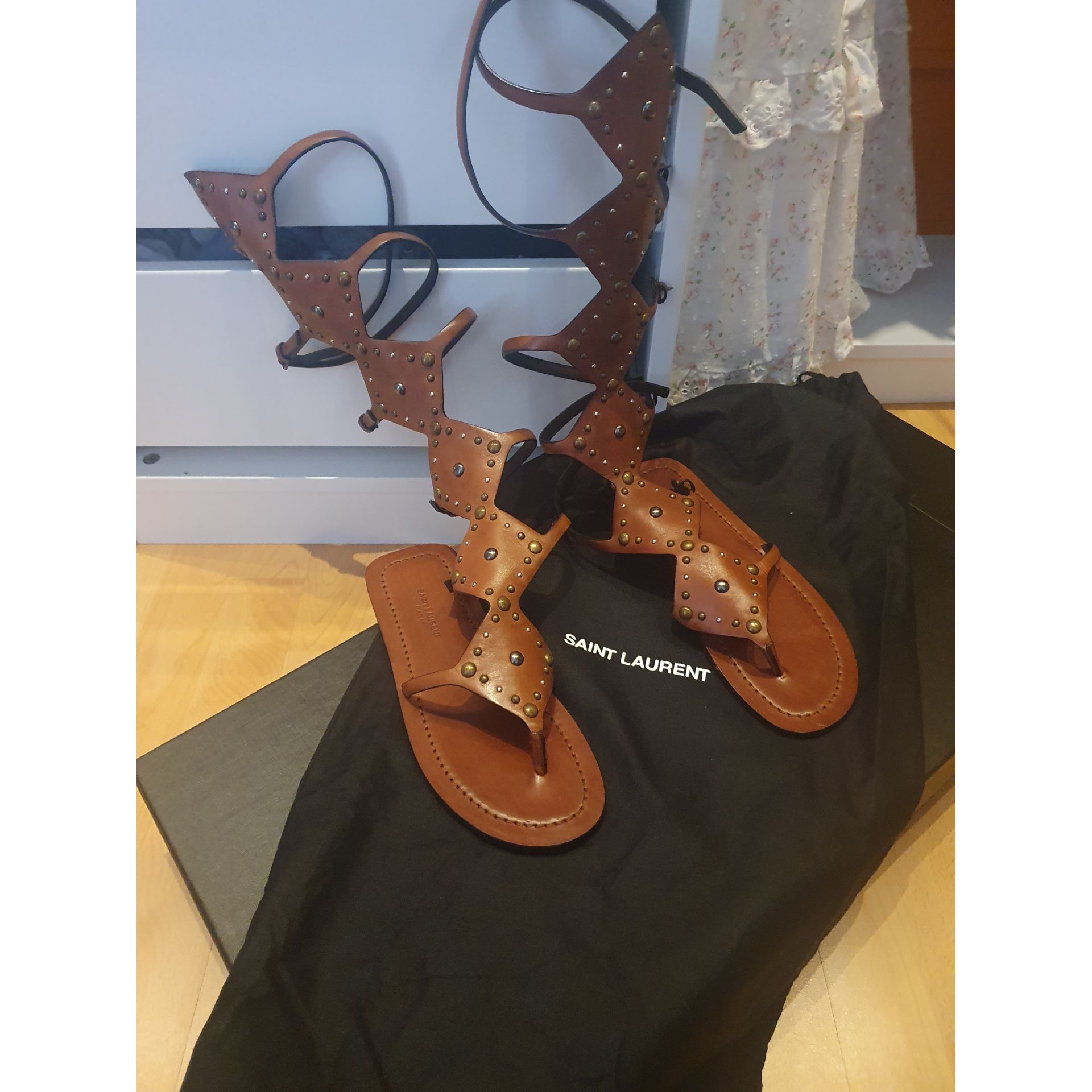 Mam do sprzedania przepiękne sandały rzymskie wysokie w rozmiarze 38.Sandałki są z domu Mody Saint Laurent , są nowe i naprawde przyciągające wzrok w lecie.Pasują świetnie do sukienek jak i do krótkich spodenek.