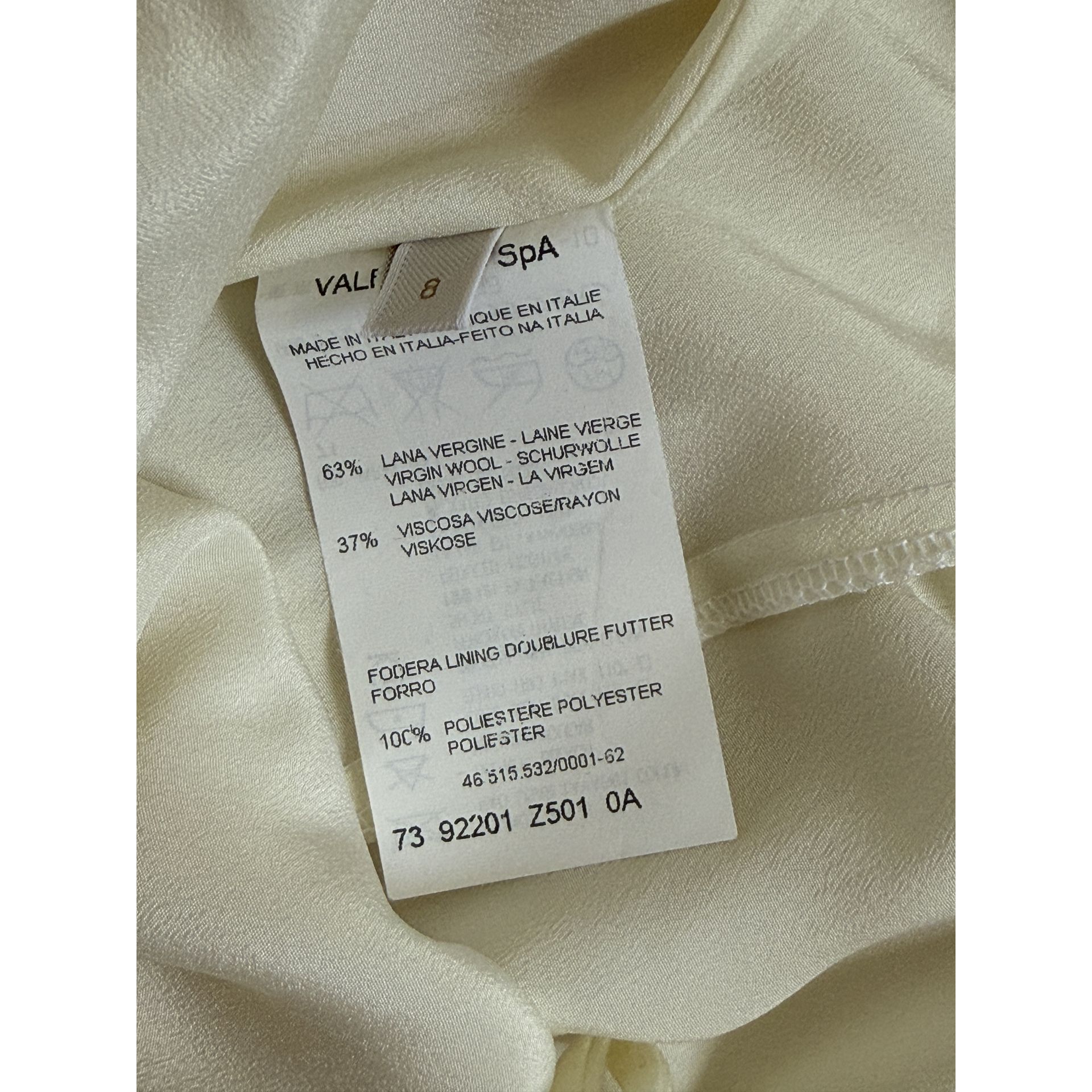 Elegancka kremowa spódniczka Valentino wykonana z wysokiej jakości materiałów (63% wełna dziewicza, 37% wiskoza). Minimalistyczny krój podkreśla sylwetkę i sprawia, że spódnica idealnie sprawdzi się zarówno w eleganckich, jak i bardziej codziennych stylizacjach. Stan bardzo dobry. Zapinana na kryty zamek z boku.