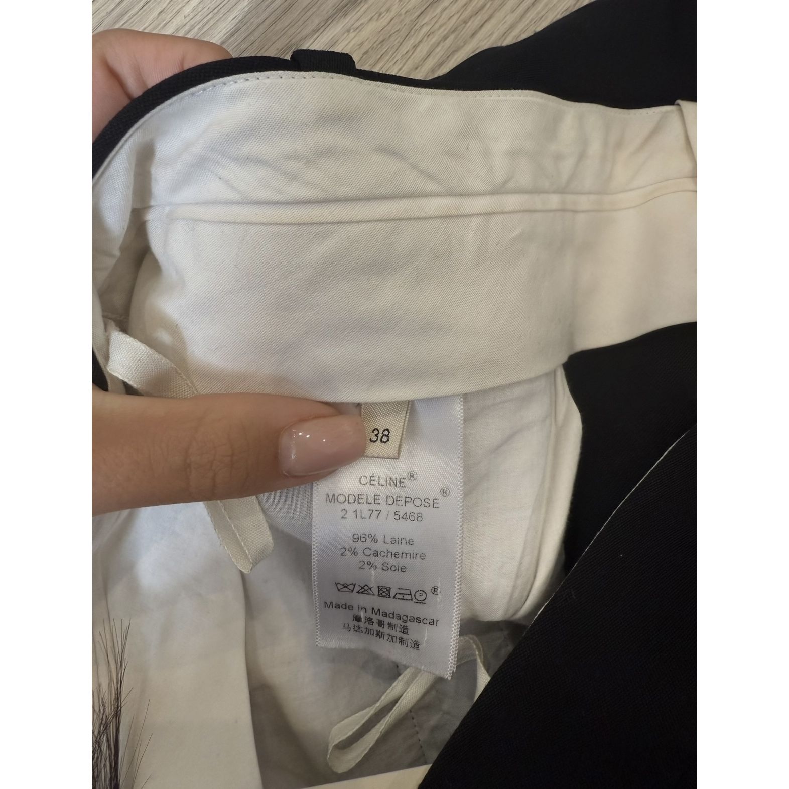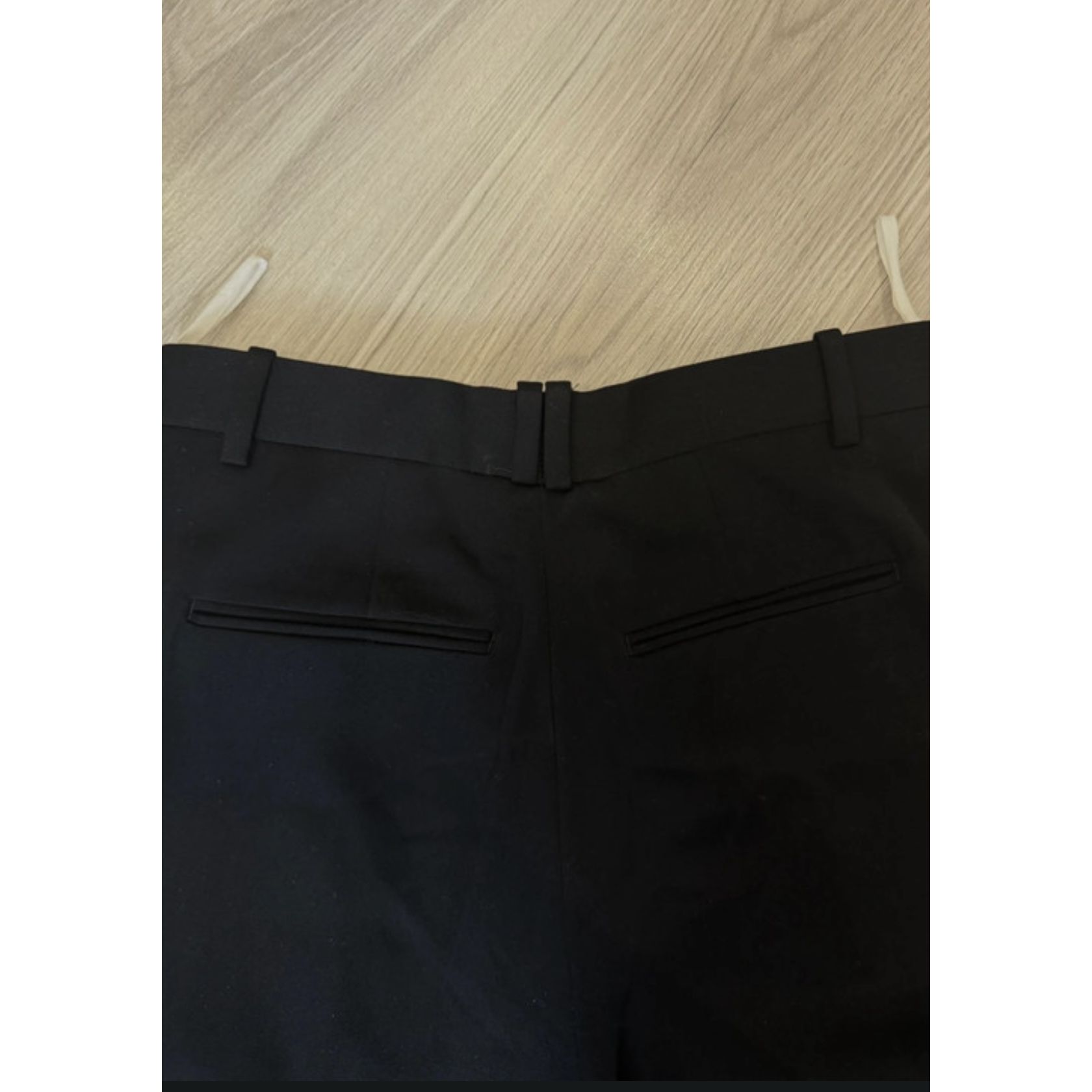 Czarne garniturowe spodnie, zapinane na kryty suwak, dwie haftki oraz guzik, szlufki na pasek, w kant, dwie kryte kieszenie po bokach. Rozmiar z metki 34. Skład: 96% wełna, 2% jedwab, 2% kaszmir. Wymiary: szerokość w pasie 36cm, długość całkowita mierzona od zewnętrznej strony nogawki 100cm Kupione w paryskim butiku second-hand „Personal Seller Paris”. Proszę o przemyślane zakupy, ponieważ nie przyjmuję zwrotów.