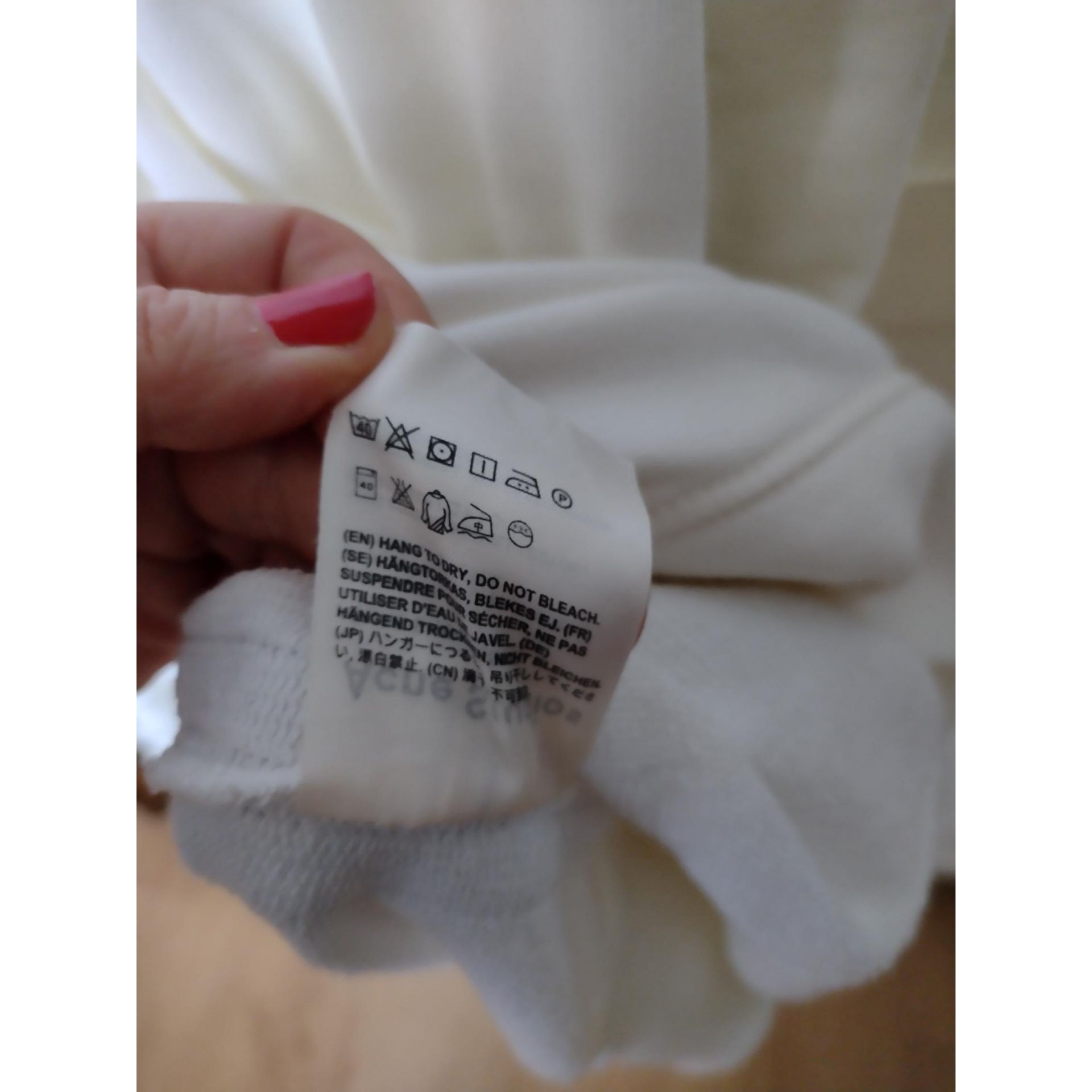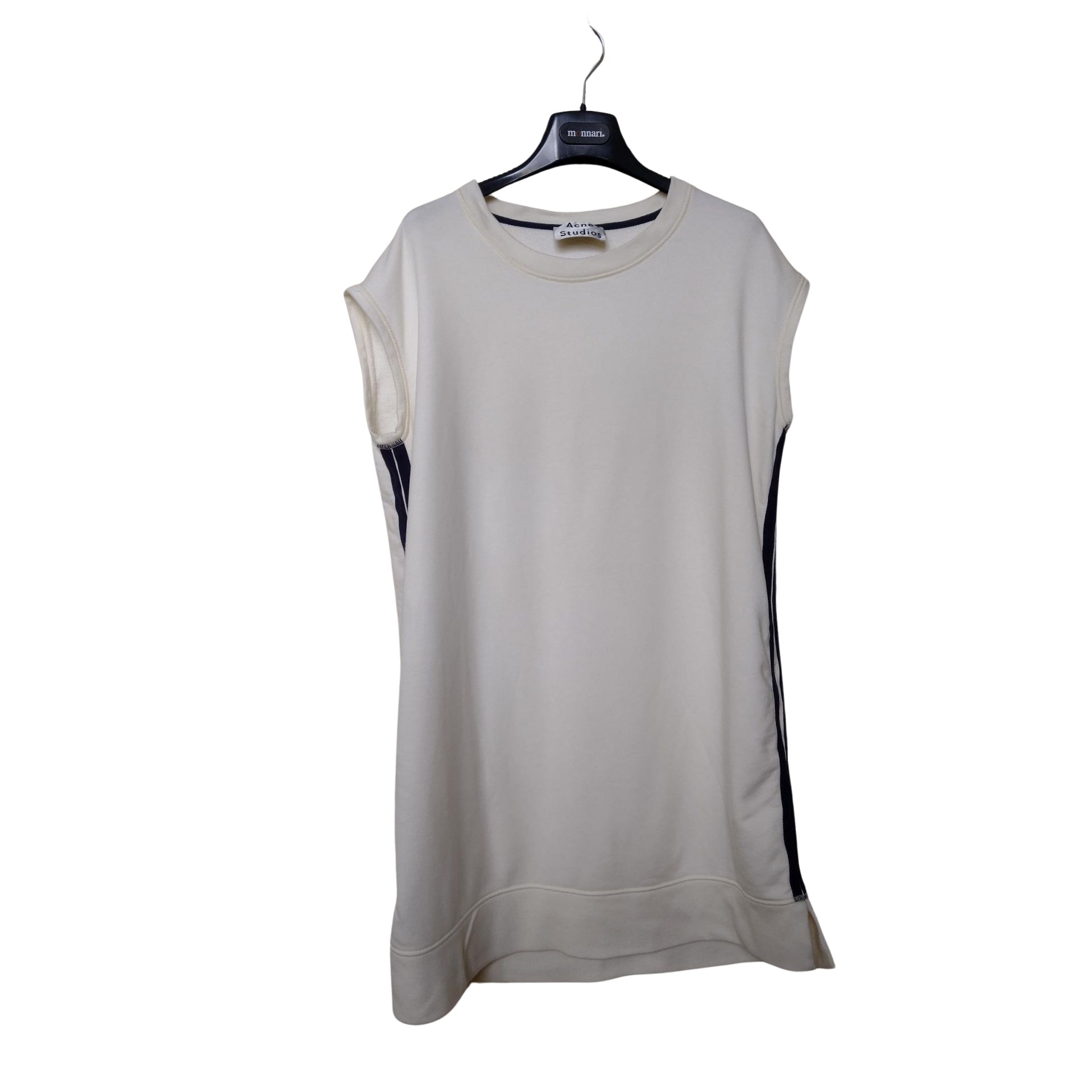 Sukienka bawełna luksusowej marki Acne Studios kolor kremowy z boku granatowe paski, posiada kieszenie, stan bardzo dobry rozmiar S dobra jako lekko oversize. Proszę o przemyślane zakupy, ponieważ nie przyjmuje zwrotów.