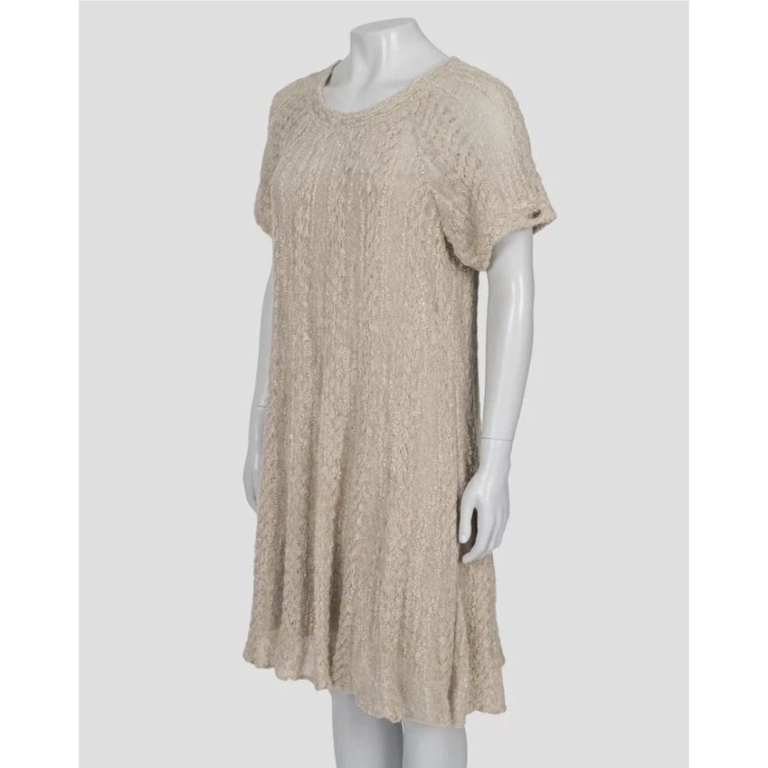 Sukienka Chanel. Rozmiar 42. W bardzo dobrym stanie. Posiada niewielkie zaciągnięcia, nie zbyt widoczne. Materiał: alpaka, nylon, len. Proszę o przemyślane zakupy, ponieważ nie przyjmuję zwrotów.