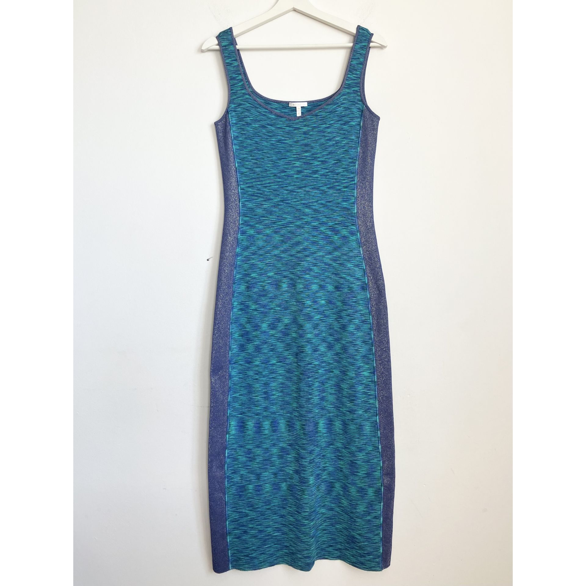 Piękna sukienka o długości midi. Wykonana z elastycznej wiskozy. Obszycie oraz boczne lampasy z błyszczącej dzianiny. Idealnie podkreśla figurę. Materiał bardzo dobrze się rozciąga, pasuje zarówno na S jak i na L