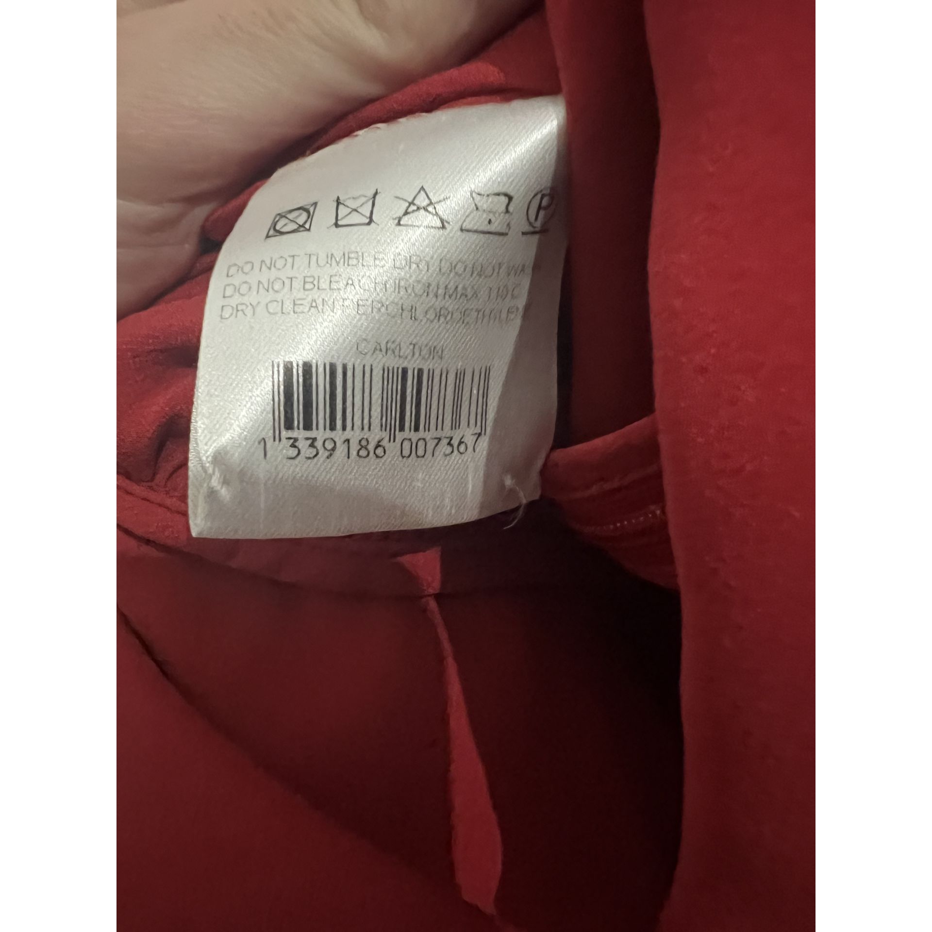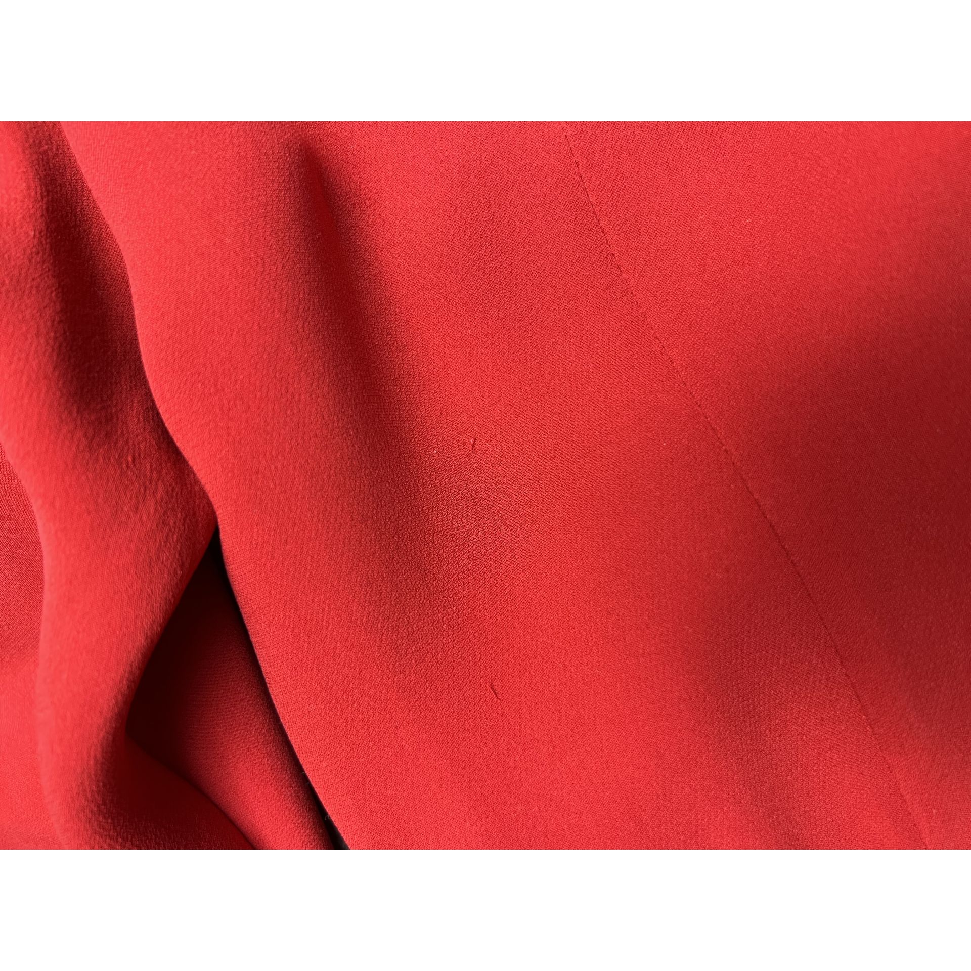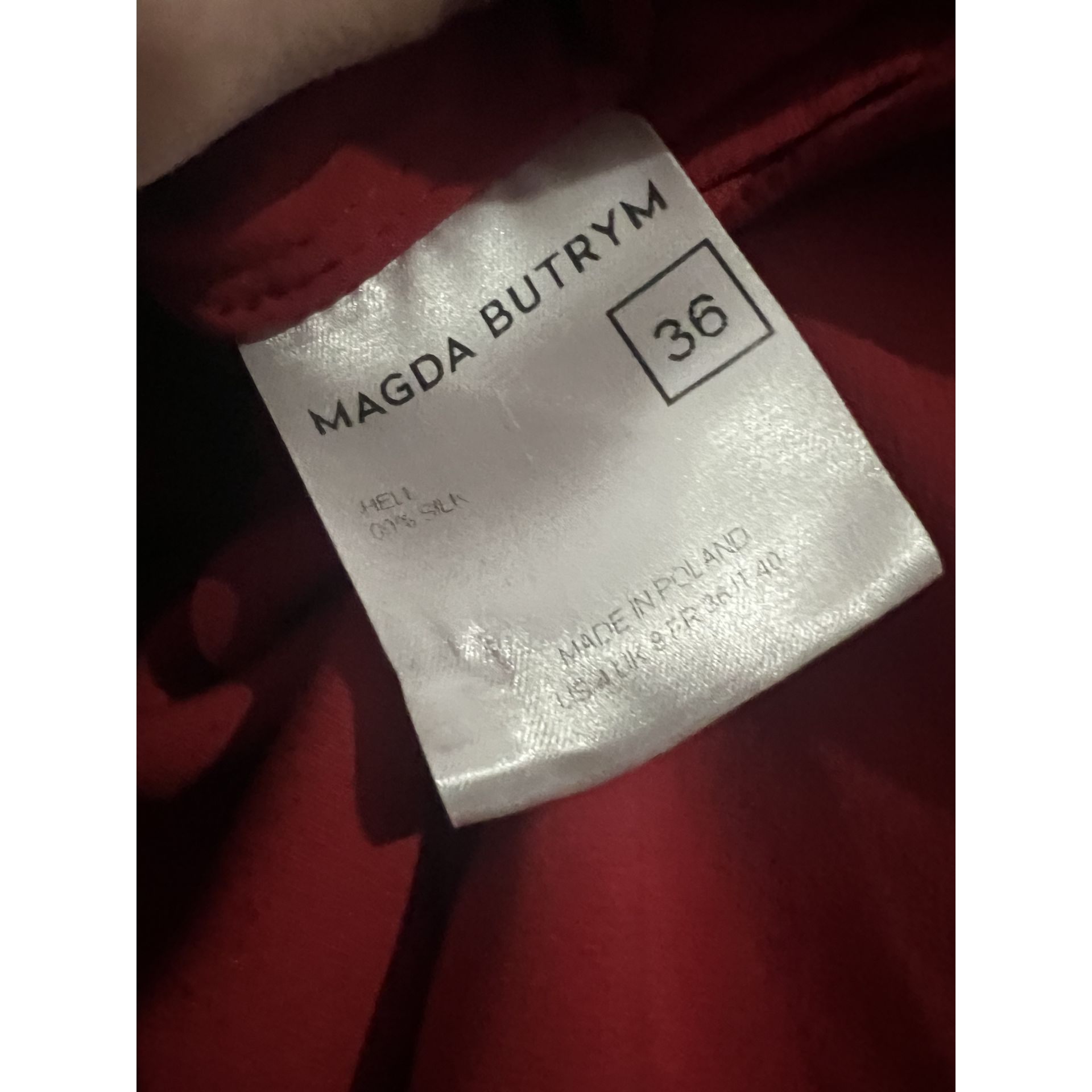 Jedwabna sukienka projektu Magdy Butrym. Rozmiar 36. Model carlton z poduszkami naramiennymi (odpinane). Stan dobry: dyskretna plama na froncie, kolor jedwabiu mniej intensywny, pojedyncze zaciągnięcia. Wymiary mierzone na płasko: szerokość w talii Ok 31,5 cm, między pachami 43 cm, długość 82 cm.