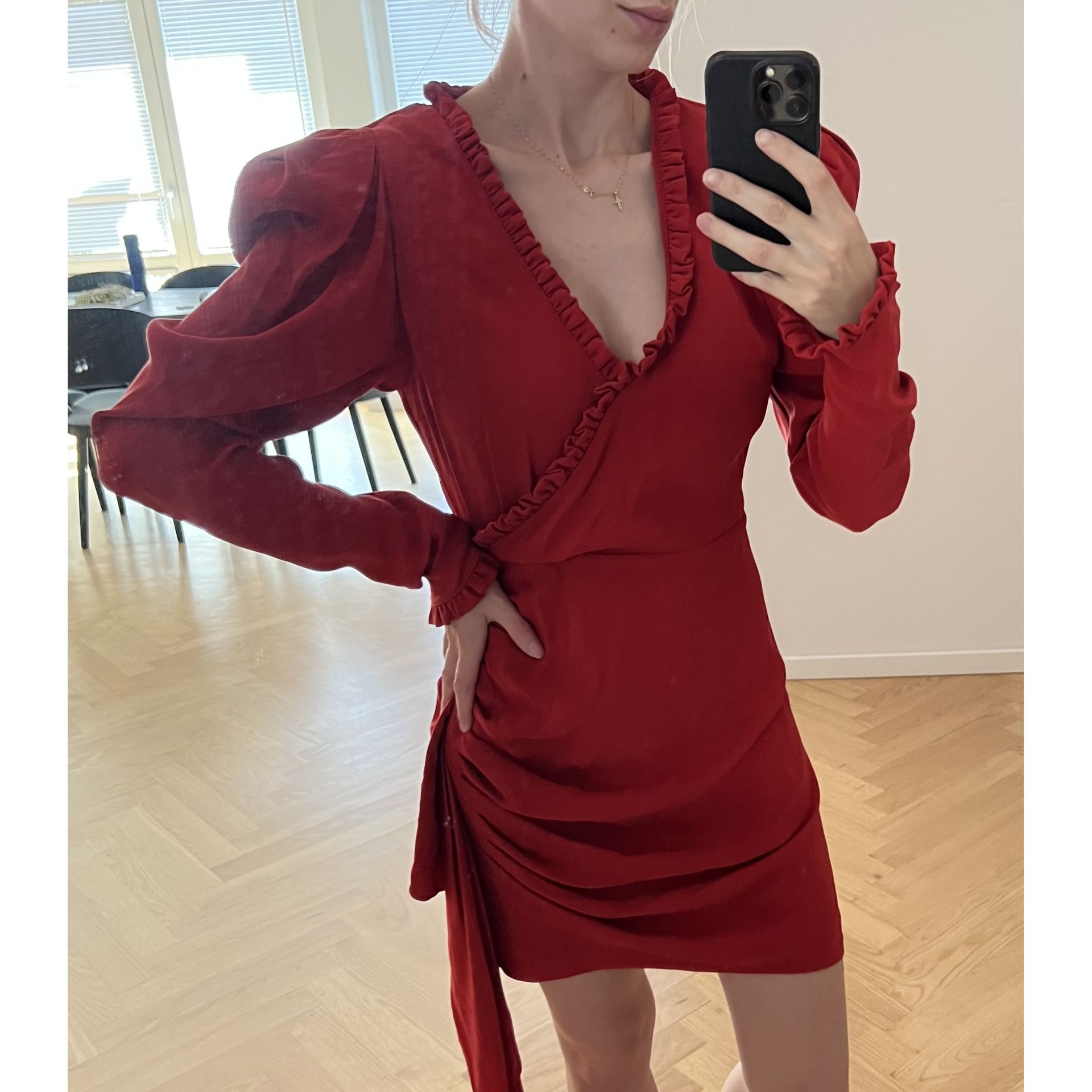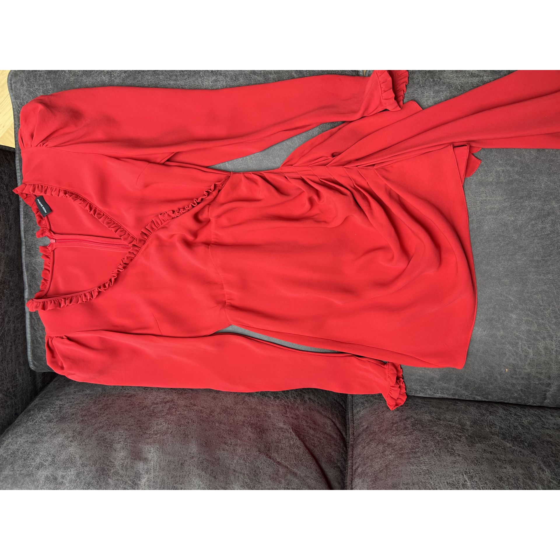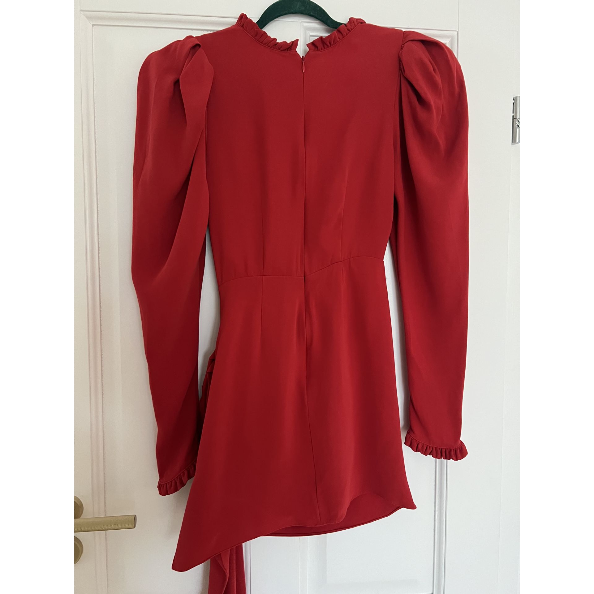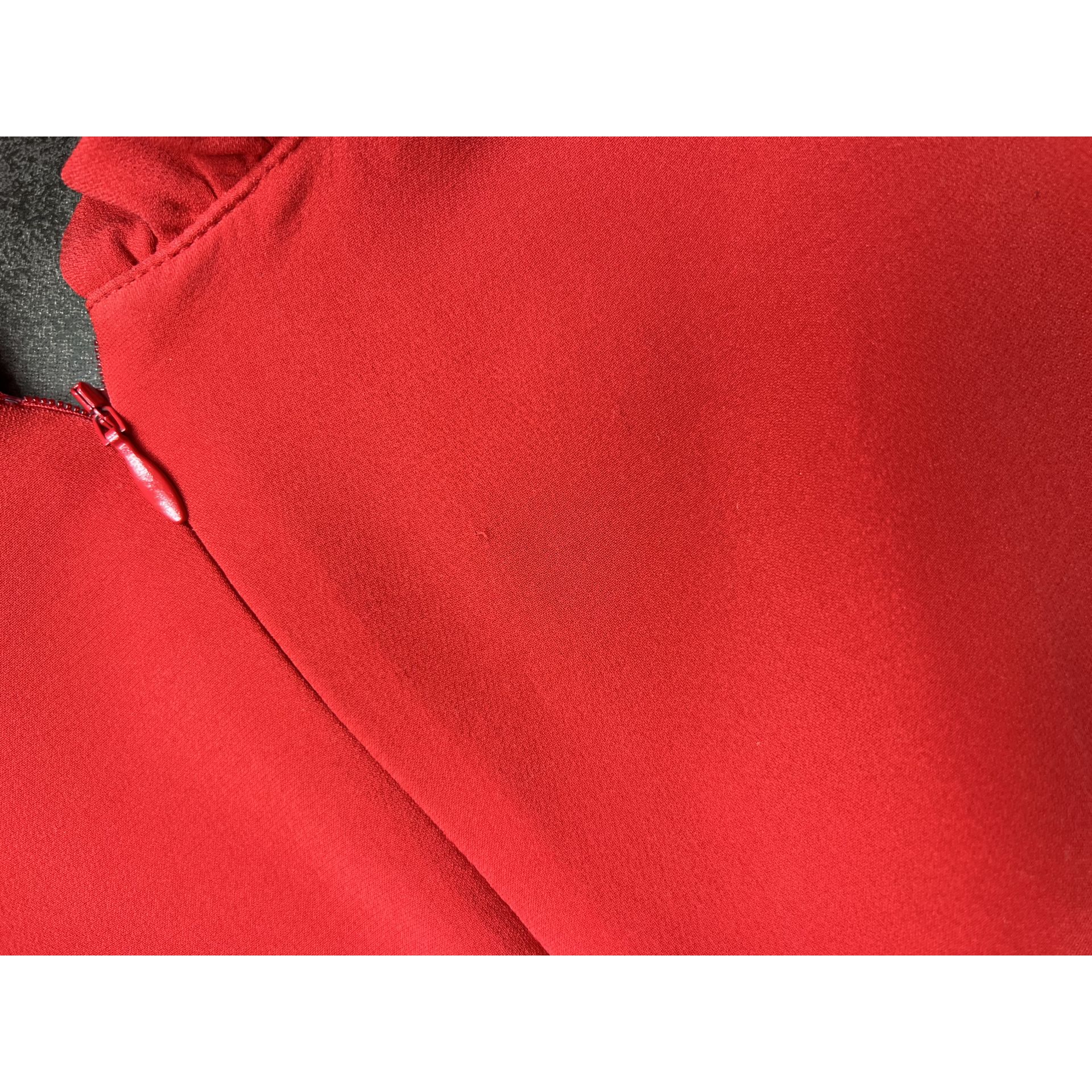 Jedwabna sukienka projektu Magdy Butrym. Rozmiar 36. Model carlton z poduszkami naramiennymi (odpinane). Stan dobry: dyskretna plama na froncie, kolor jedwabiu mniej intensywny, pojedyncze zaciągnięcia. Wymiary mierzone na płasko: szerokość w talii Ok 31,5 cm, między pachami 43 cm, długość 82 cm.