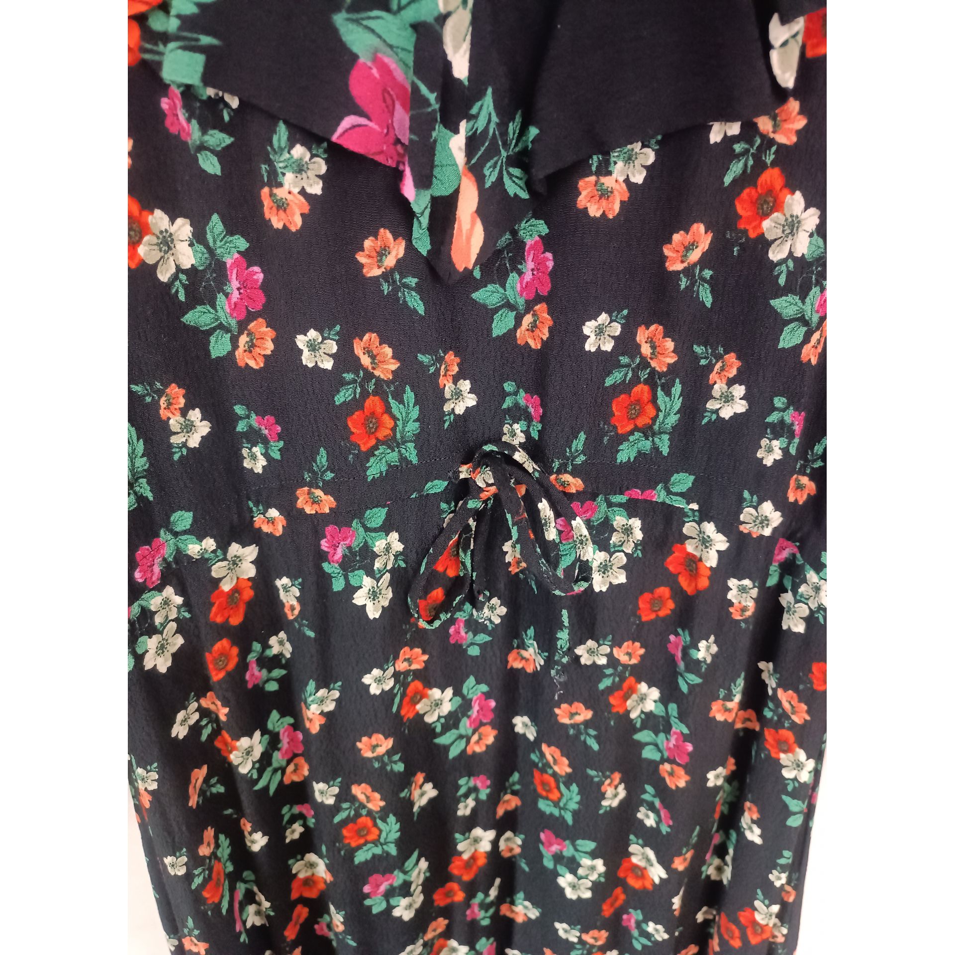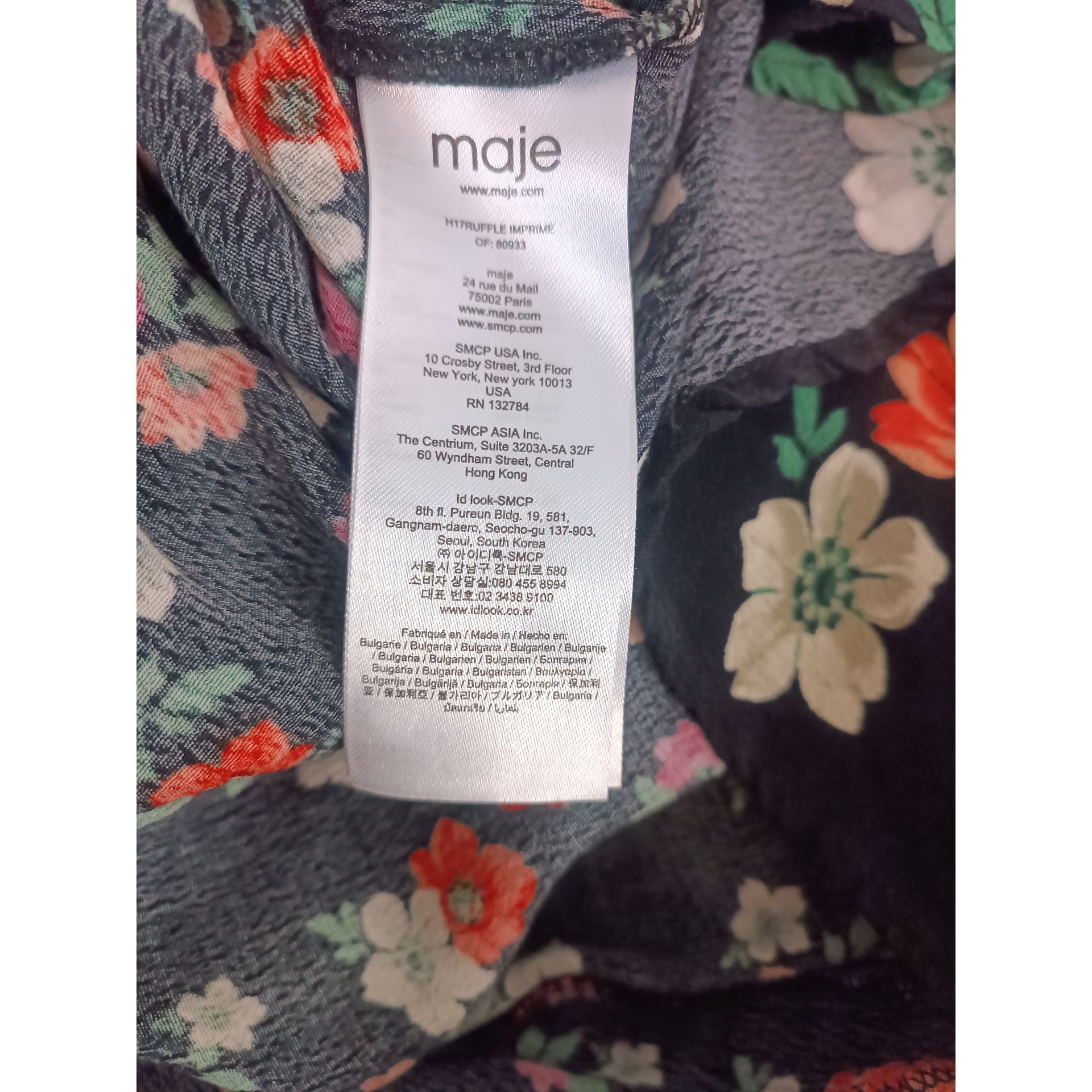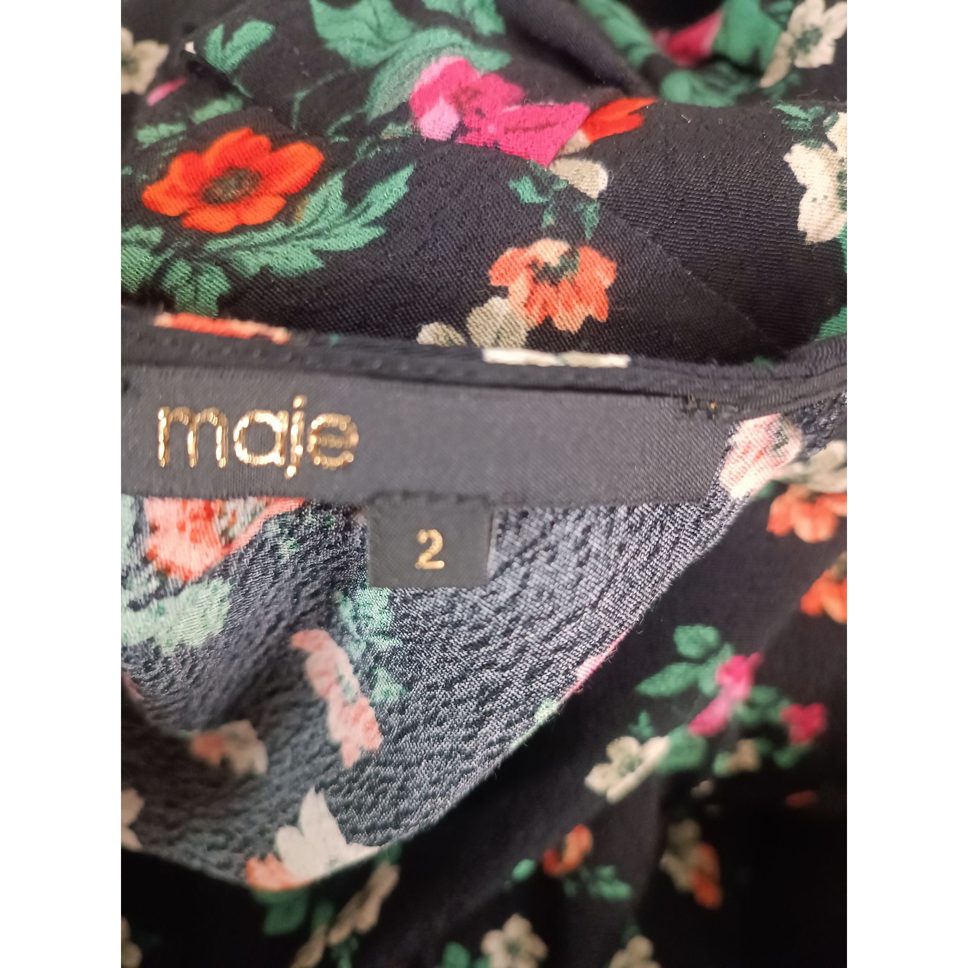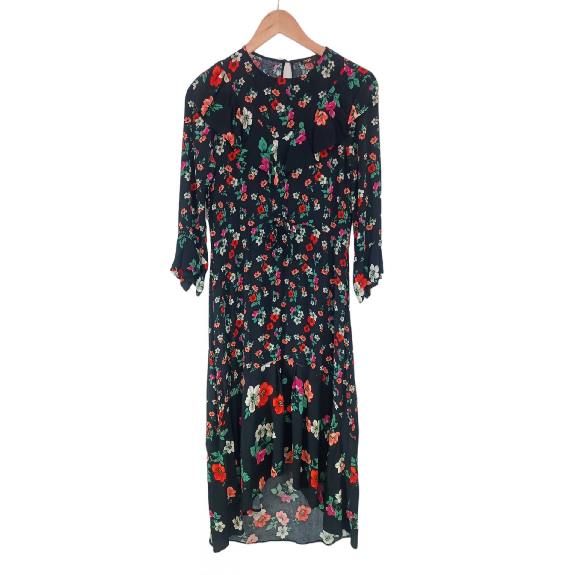 Sukienka francuskiej marki premium MAJE, model Ruffle Imprime. W całości stworzona z wiskozy, kolor czarny z kwiatowym motywem.